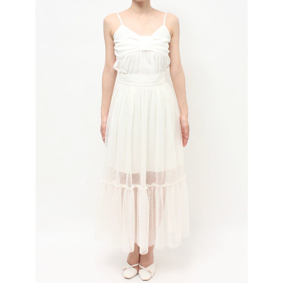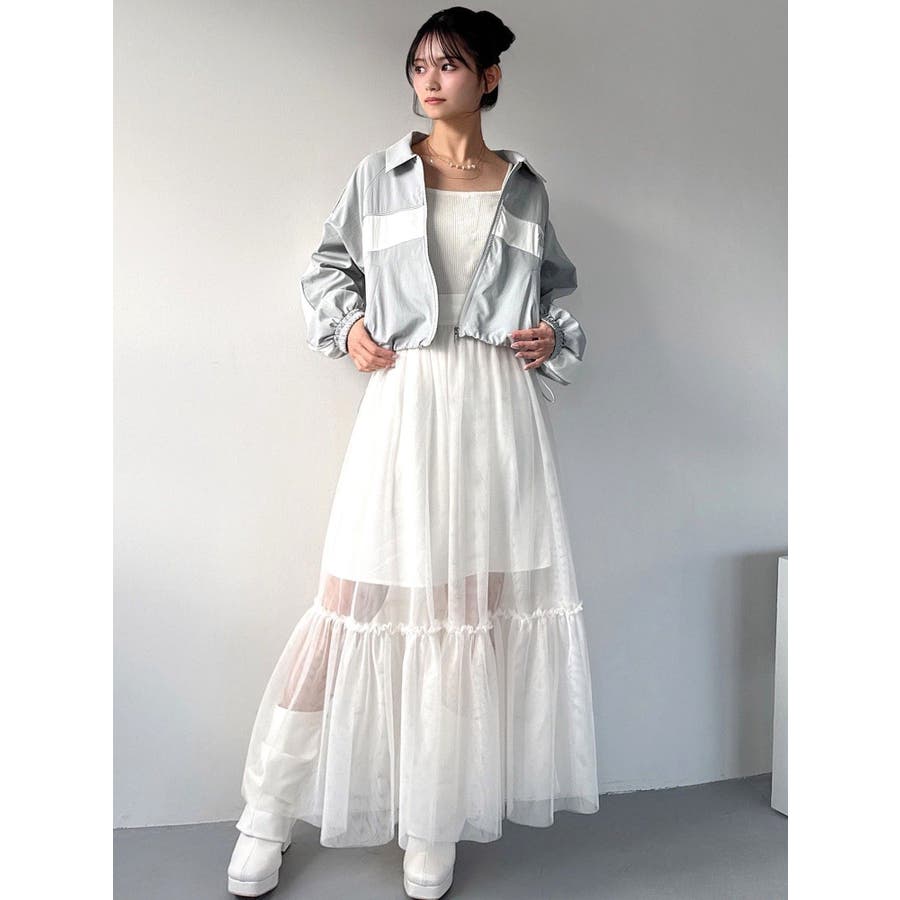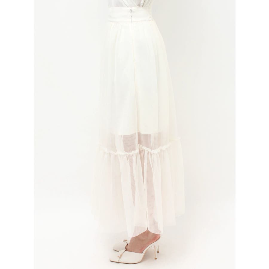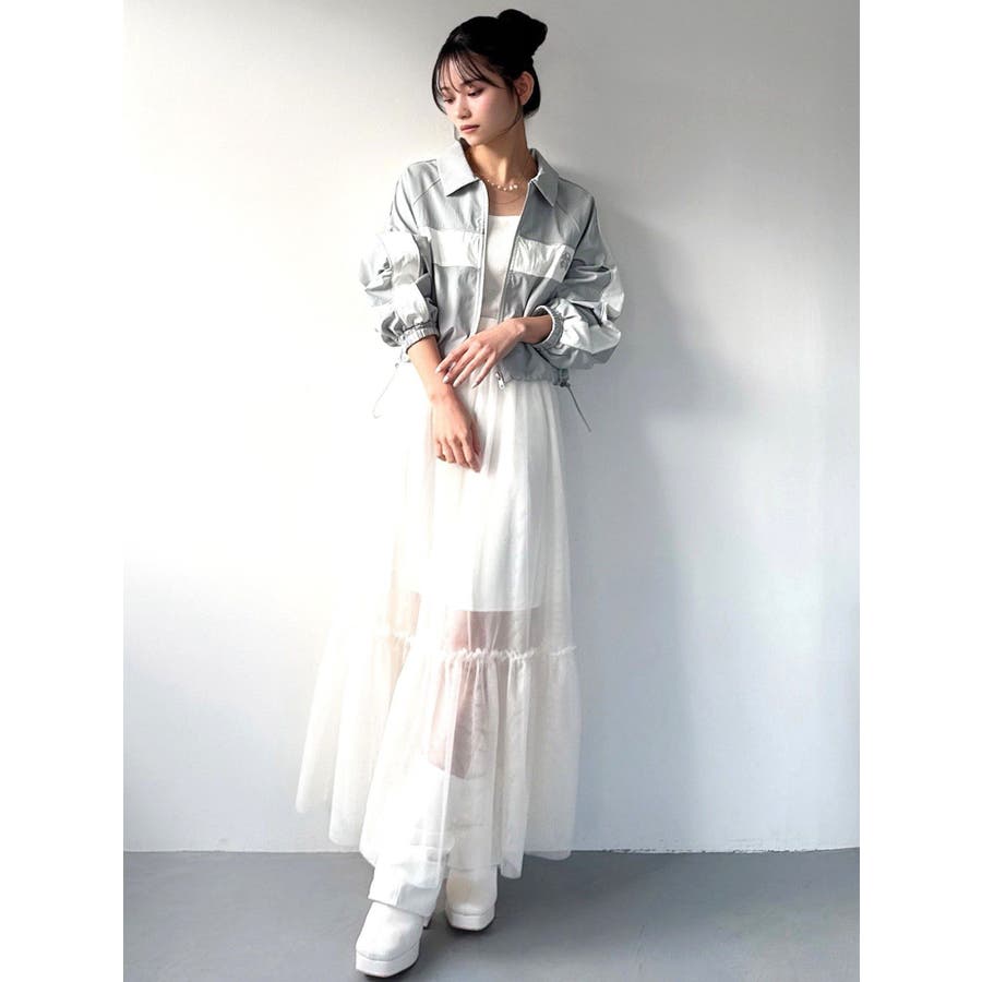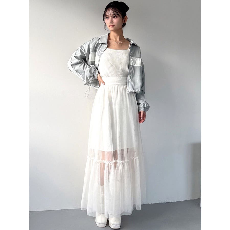 トレンドのチュール素材をふんだんに使用したスカート▽デザイン▽トレンドのチュールを全体に使用したチュールスカート。ニュアンスのあるシースルーデザインにときめく1枚。ロング丈なので、大人レディに着こなせるアイテムです。ひざ下から足元が透けることで、抜け感を演出。ワンカラーで仕上げているので、どんなトップスとも相性抜群です◎▽カラー▽白、黒、ブラウンの3色展開。▽スタイリング▽どんなトップスとも合わせやすい万能アイテム◎ブラウスやニットを合わせたキレイ目コーデはもちろん、スウェットやオーバーニットを合わせたカジュアルダウンしたコーデもおすすめ◎