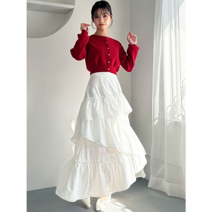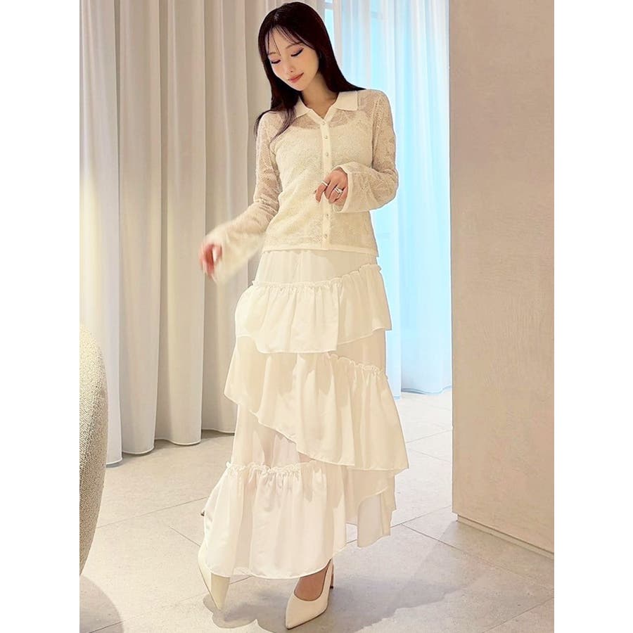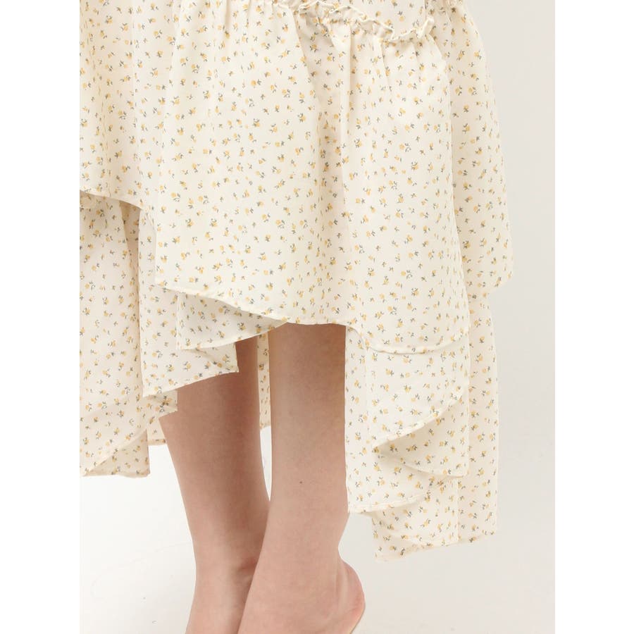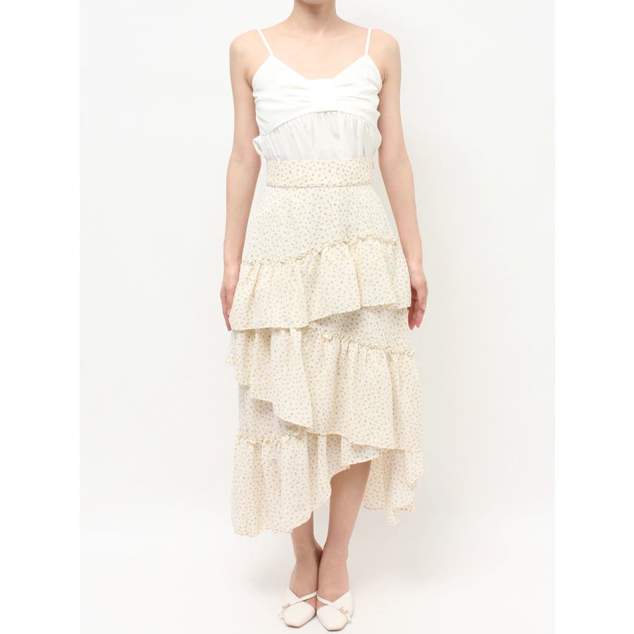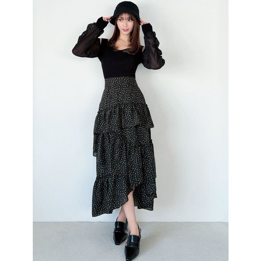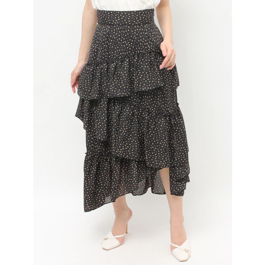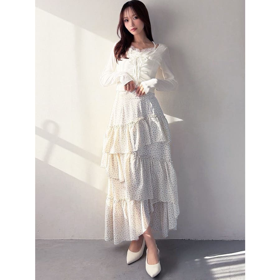 ボリューム感のあるフェミニンなフレアスカート▽デザイン▽ランダムなフリルデザインで動きのあるシルエットに仕上げました。薄手の生地を使用し、軽やかさと柔らかな女性らしさを演出。春にぴったりのさわやかな印象のスカートです。▽カラー▽白、アイボリー、黒の3色展開。白は無地、黒とアイボリーは小花柄です。▽スタイリング▽カーディガンやニットトップスを合わせたフェミニンなスタイリングはもちろん、Tシャツを合わせたカジュアルなスタイリングもおすすめ◎デイリー使いだけでなく、デートや女子会にもピッタリのアイテムです♪