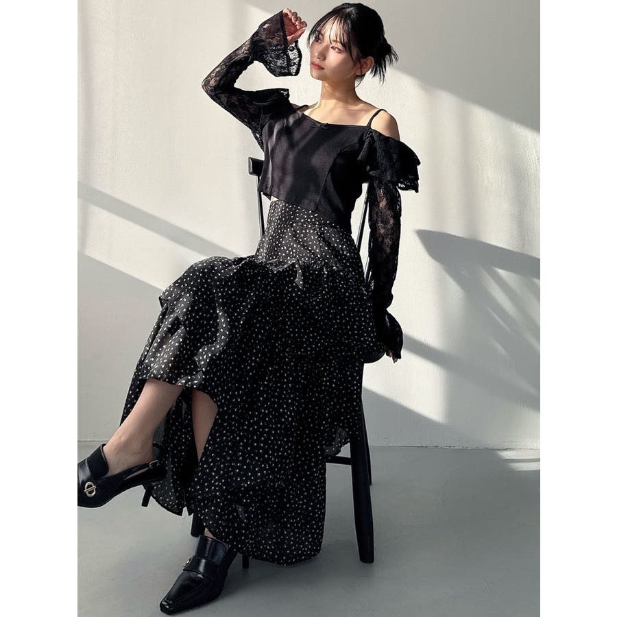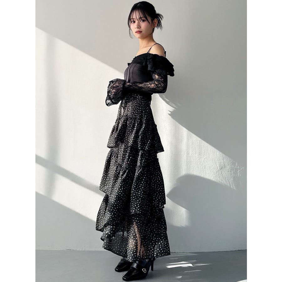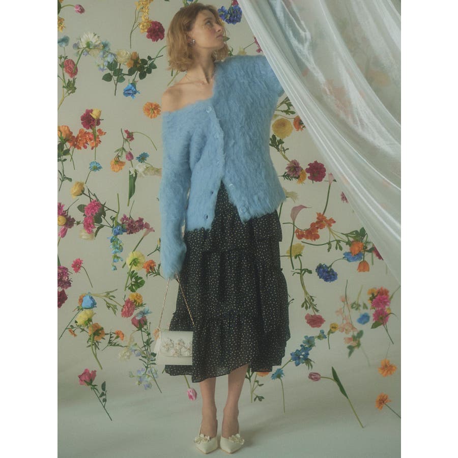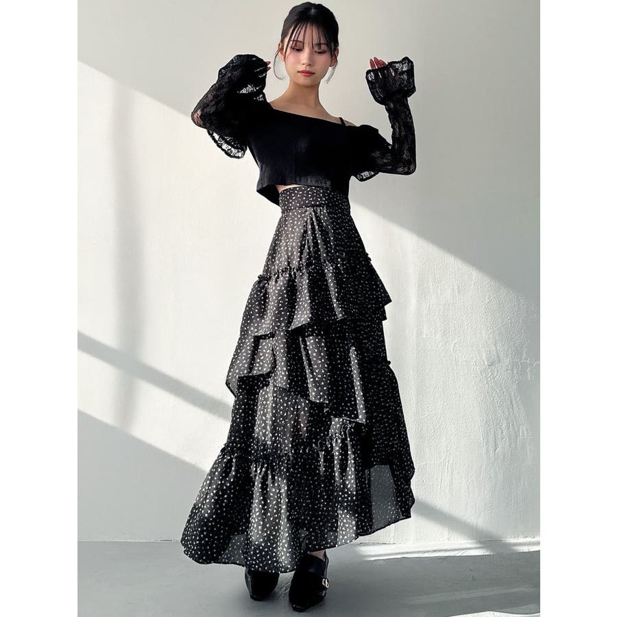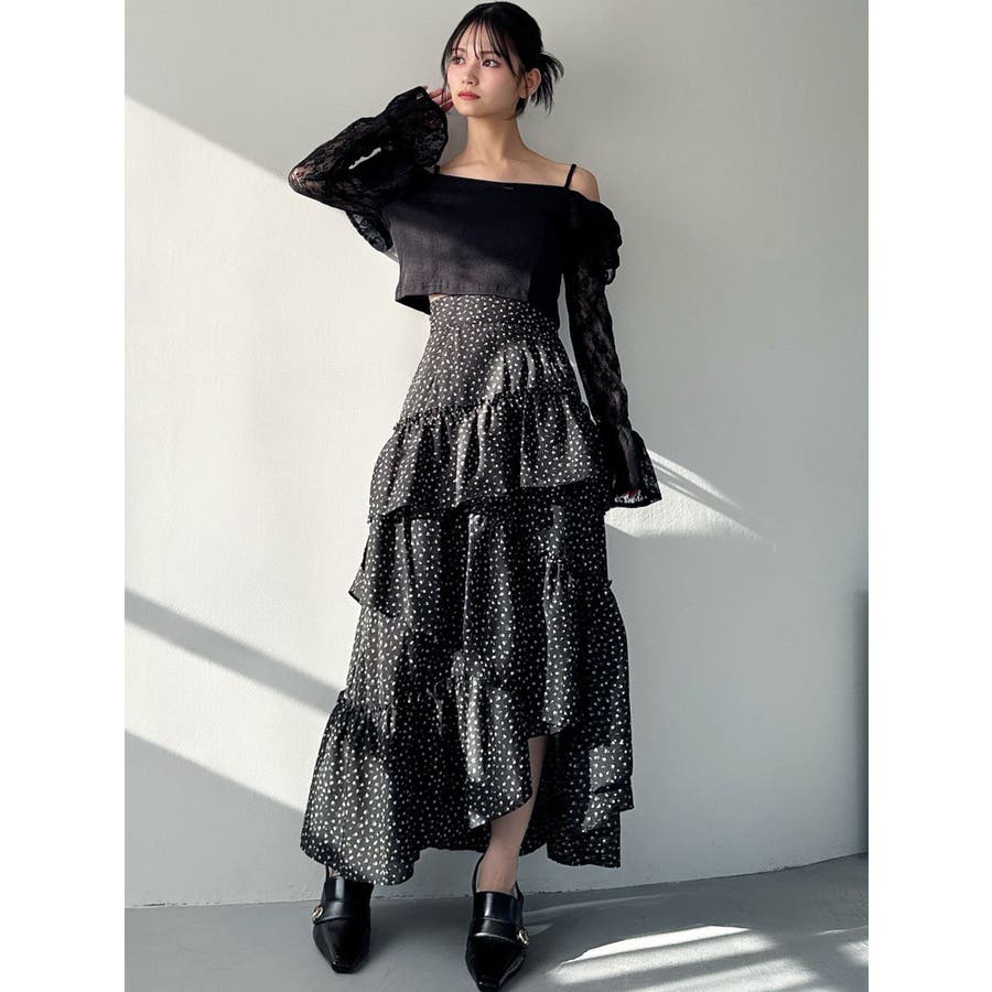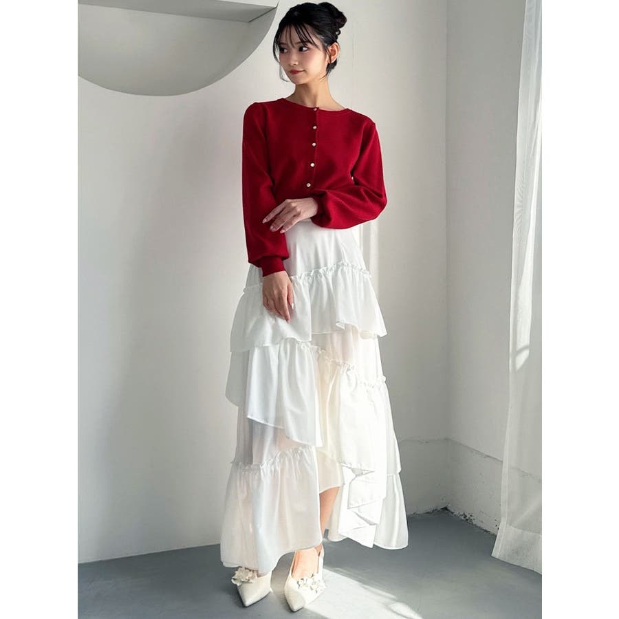 ボリューム感のあるフェミニンなフレアスカート▽デザイン▽ランダムなフリルデザインで動きのあるシルエットに仕上げました。薄手の生地を使用し、軽やかさと柔らかな女性らしさを演出。春にぴったりのさわやかな印象のスカートです。▽カラー▽白、アイボリー、黒の3色展開。白は無地、黒とアイボリーは小花柄です。▽スタイリング▽カーディガンやニットトップスを合わせたフェミニンなスタイリングはもちろん、Tシャツを合わせたカジュアルなスタイリングもおすすめ◎デイリー使いだけでなく、デートや女子会にもピッタリのアイテムです♪