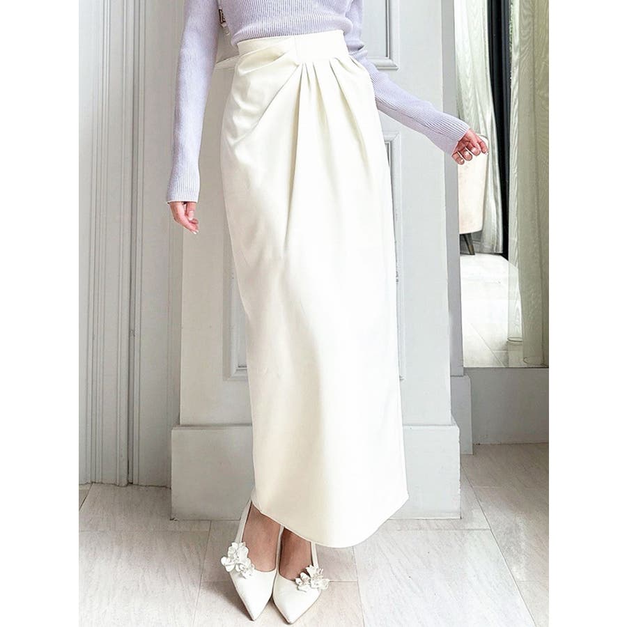 クシュっとしたドレープデザインがポイント▽デザイン▽ウエストのドレープデザインが目を惹くペンシルスカート。フロント部分のアシンメトリーなど他にはないメリハリのあるデザインでこなれ感を演出◎大人な雰囲気のある一枚です。流れるようなシルエットにこだわることで女性らしい抜け感をプラスしました。▽カラー▽白、黒、オレンジの3色展開。▽スタイリング▽オフショルデザインやタイトなシルエットのトップスを合わせた大人な着こなしがおすすめ◎デートや記念日など特別なシーンにもお使いいただけます。※着用画像はフラッシュの加減で実際の製品と色味等が異なる場合がございますので、生地のズームアップ画像をご確認ください。※ご利用の端末画面の設定により実際の商品と色味が異なる場合がございます。【商品特徴】透け感:なし伸縮性:なし生地の厚さ:薄手サイズ感:普通裏地:ありポケット:なし