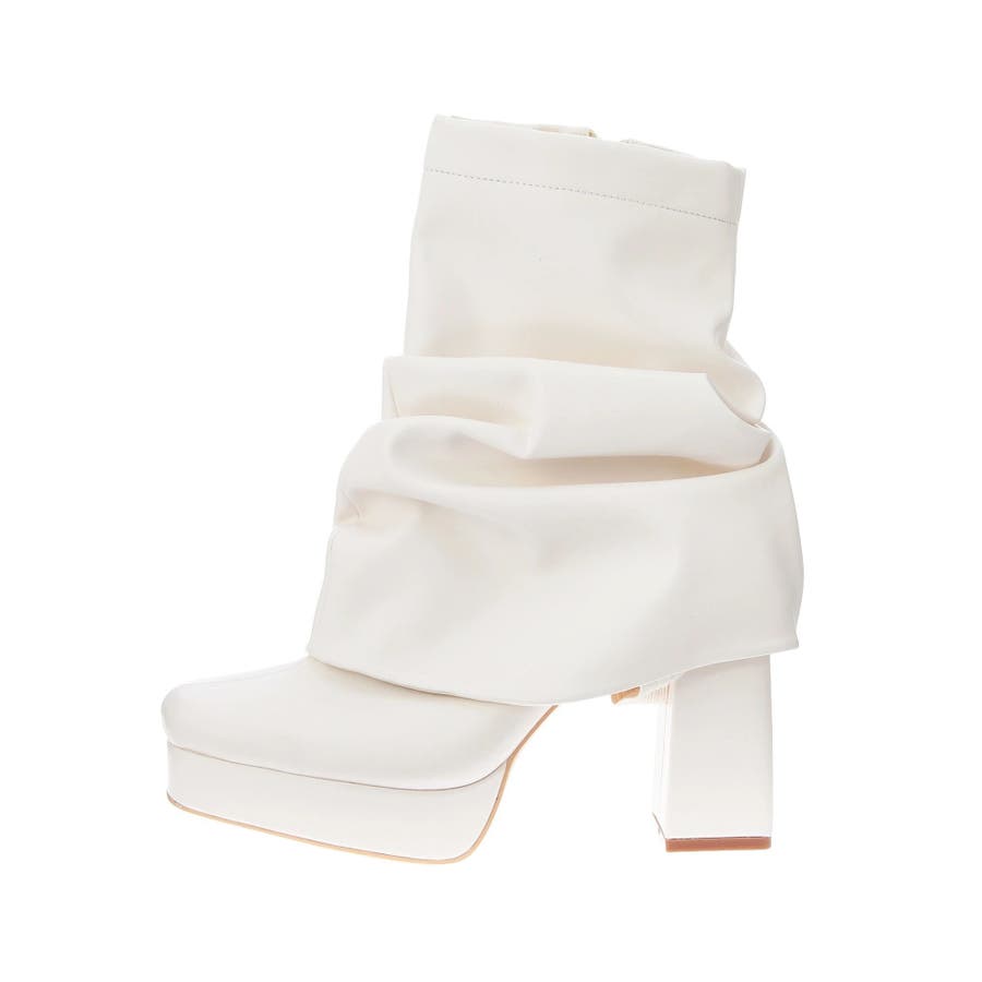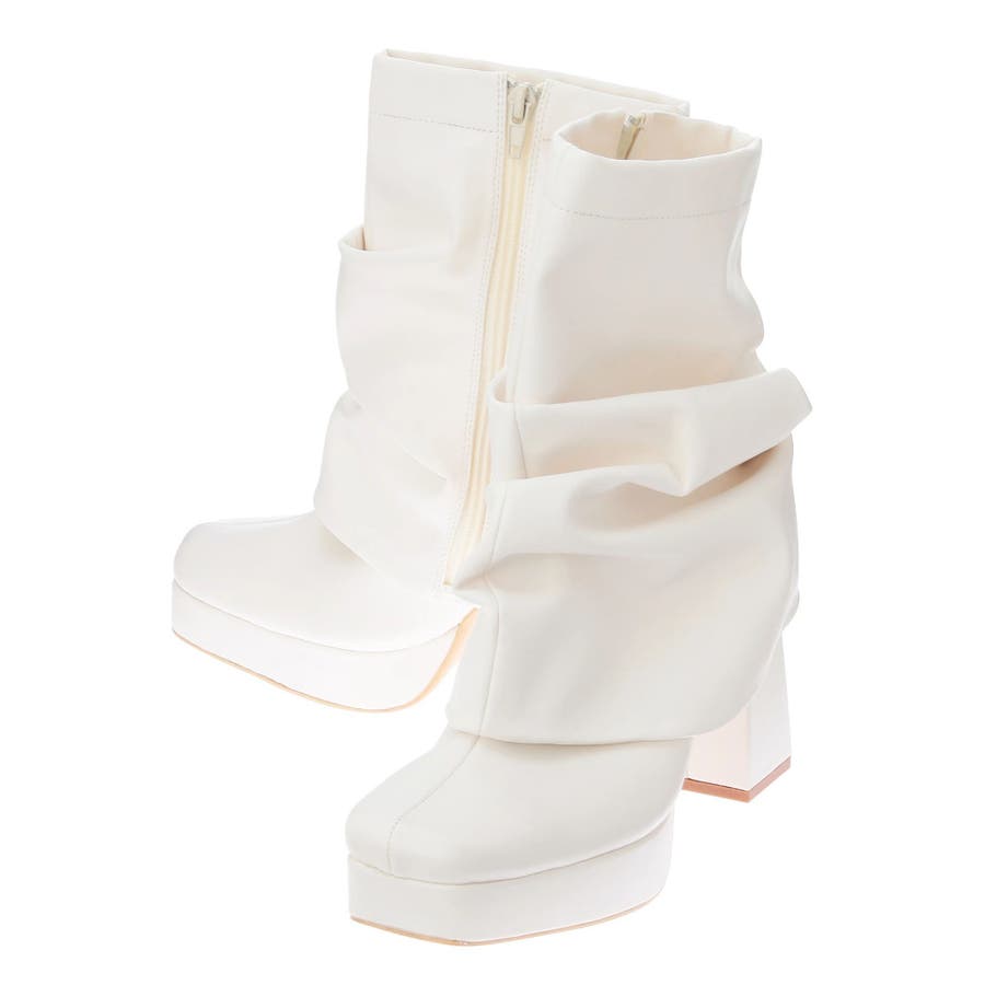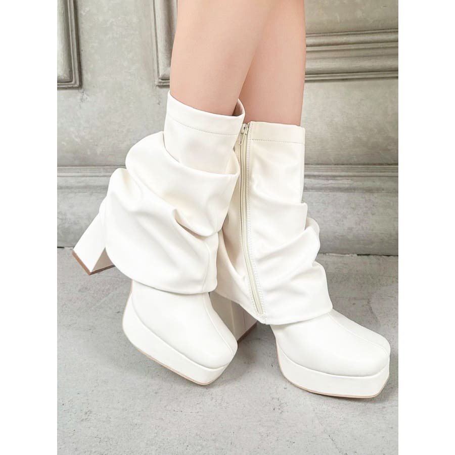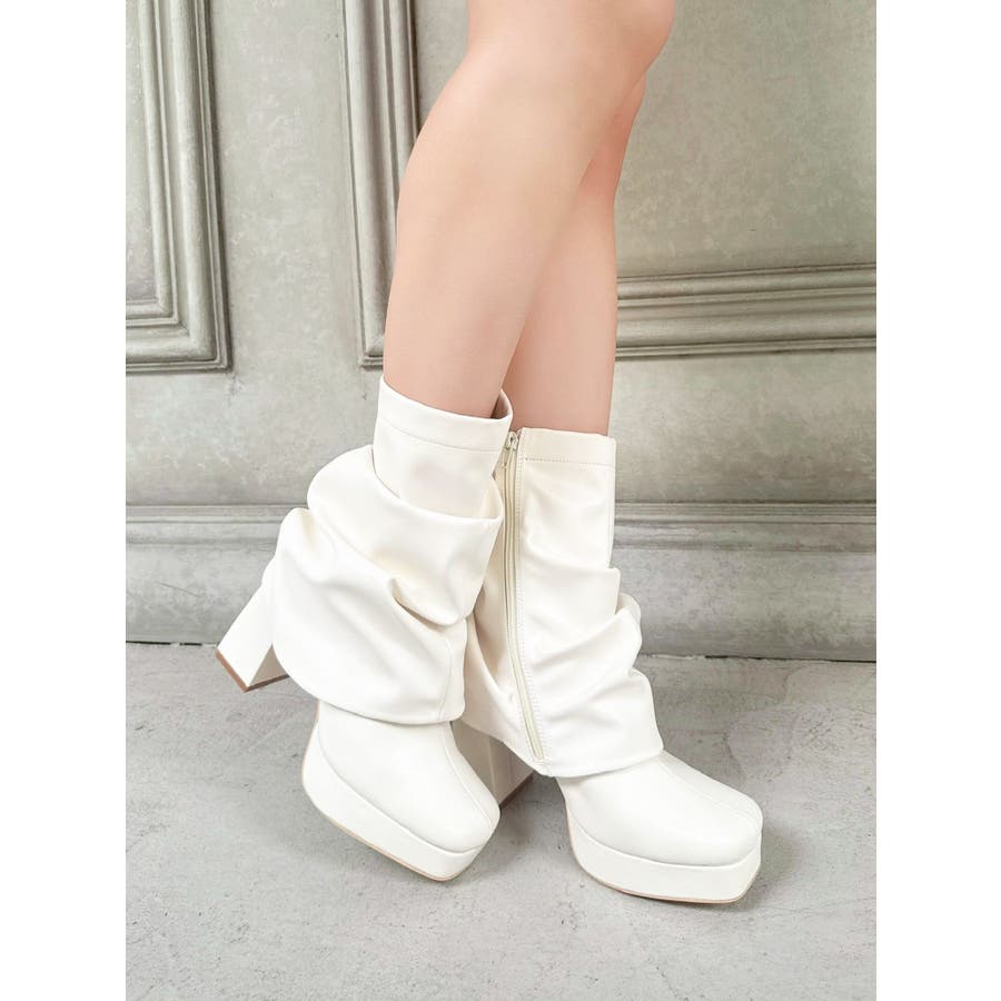 レッグウォーマー風のシルエットがポイントのブーツ▽デザイン▽自然に広がる裾と、程よく下のボリュームが出る溜まり具合が脚を綺麗に見せてくれます。レッグカバーは取り外し可能となっており、ファッションに合わせてサボシューズとしても使える2Way使用♪▽カラー▽アイボリー、黒の2色展開。