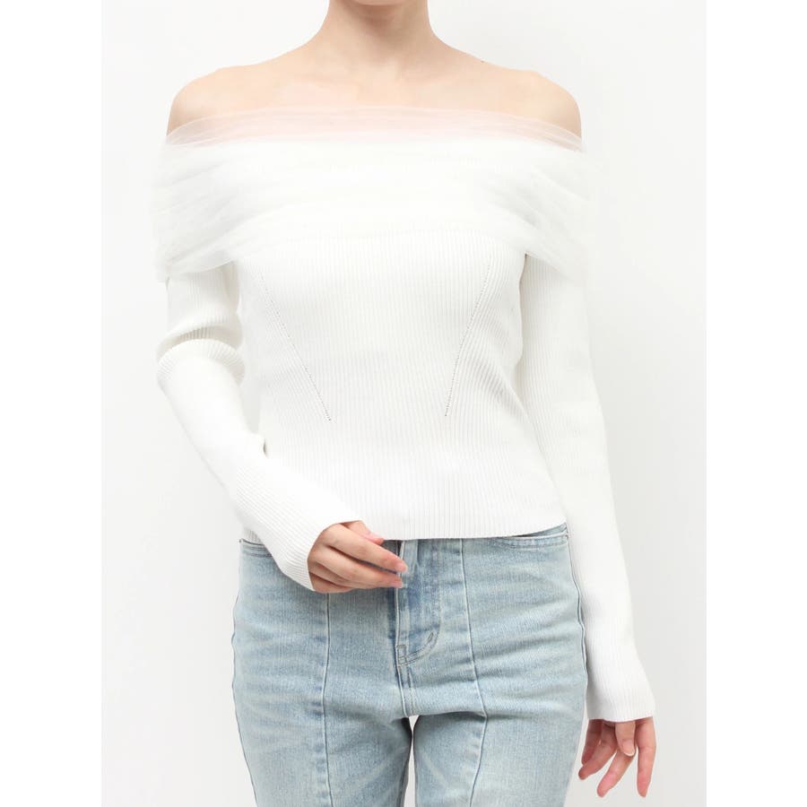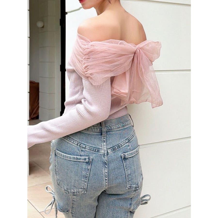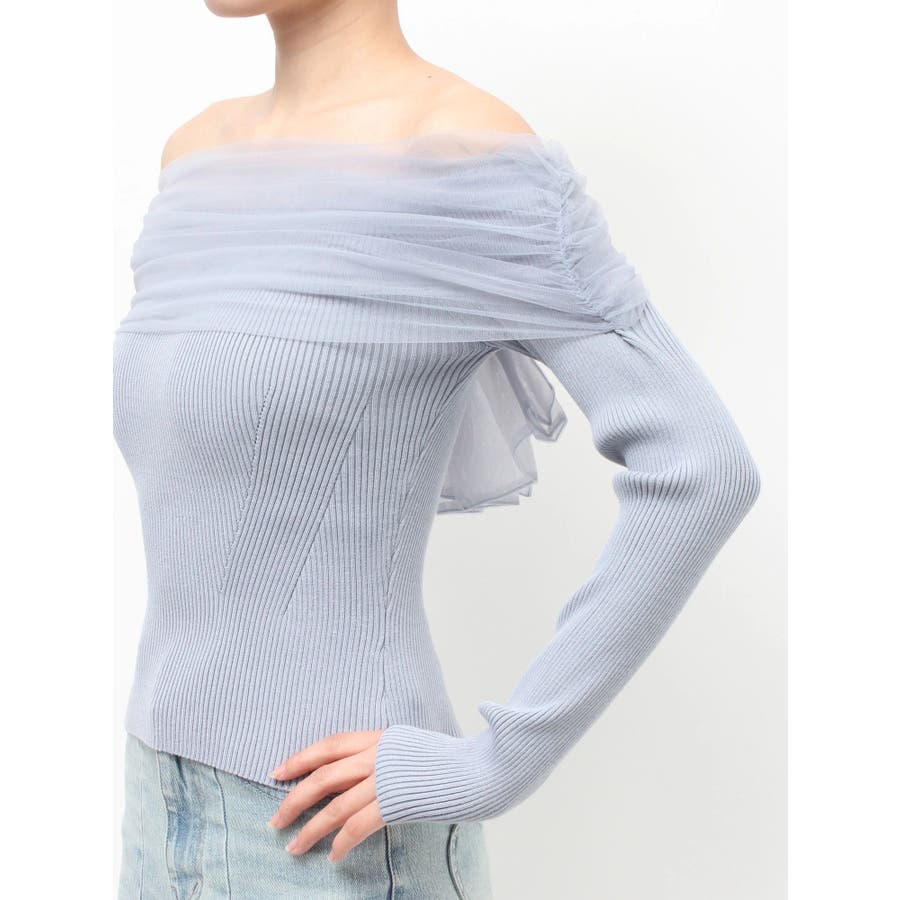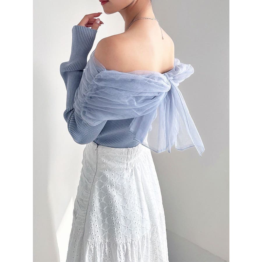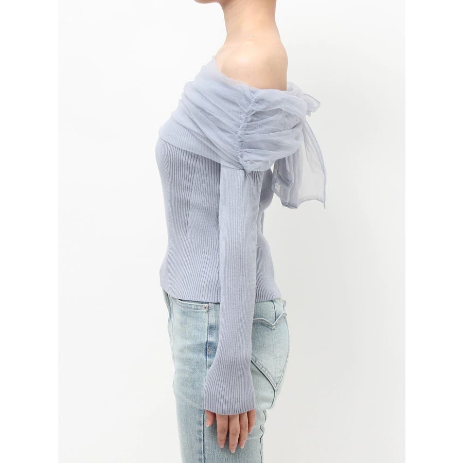 ボディにフィットするタイトなニット生地に、ボリューム感のあるシアー生地をドッキングしました。