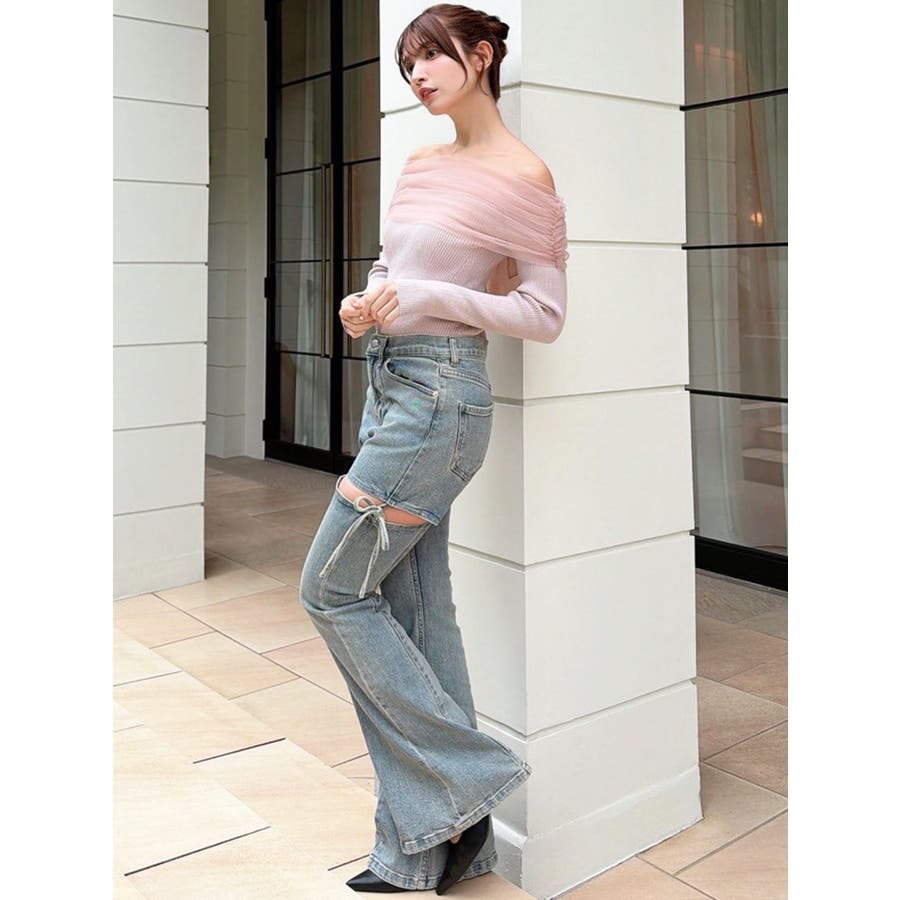 程よい肌見せとチュールの柔らかな素材が女性らしさを演出します。