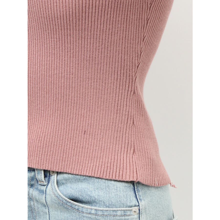 細身なのに窮屈感のない伸縮性の高いリブニットトップス。