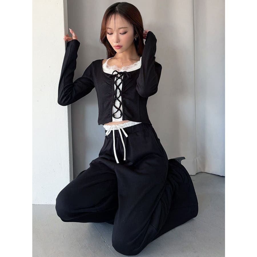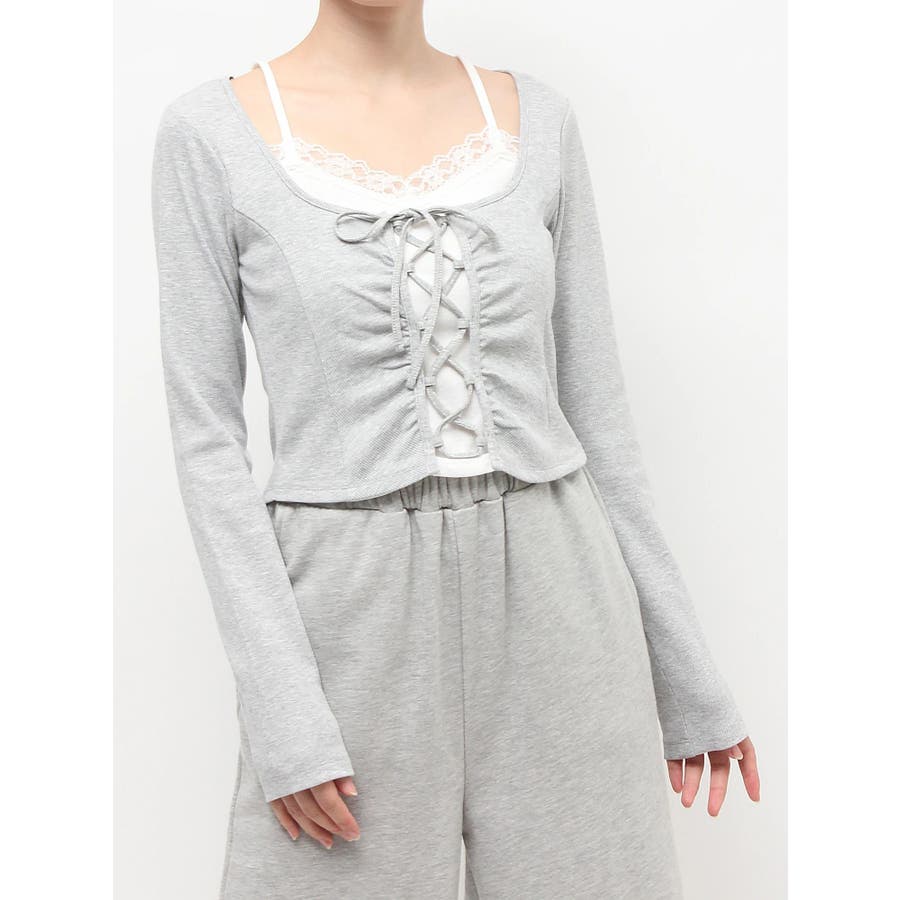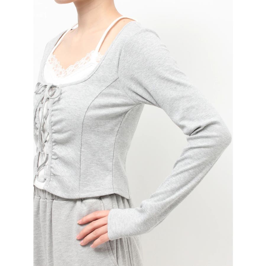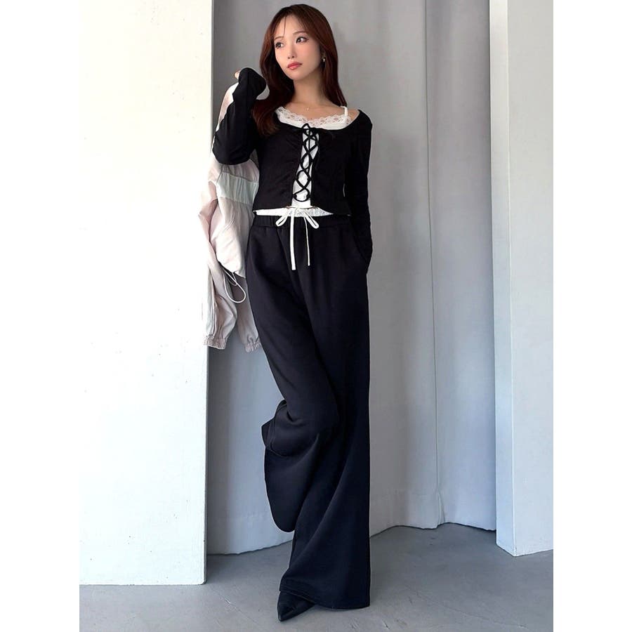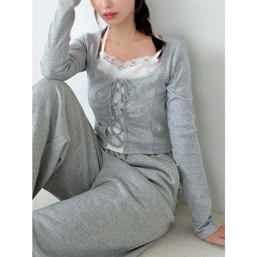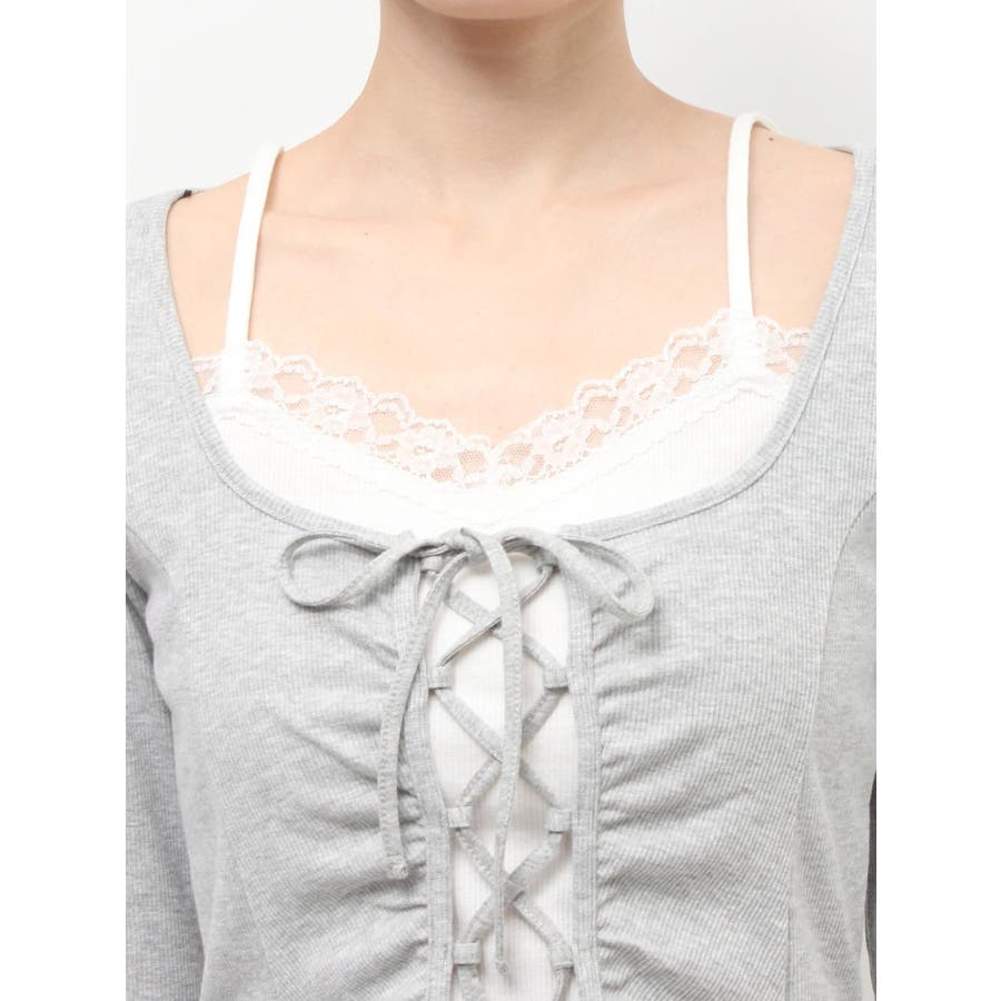 インナーは華奢なレースキャミでミニマルに、フロント部分はレースアップデザインにすることで華やかな印象に仕上げました。