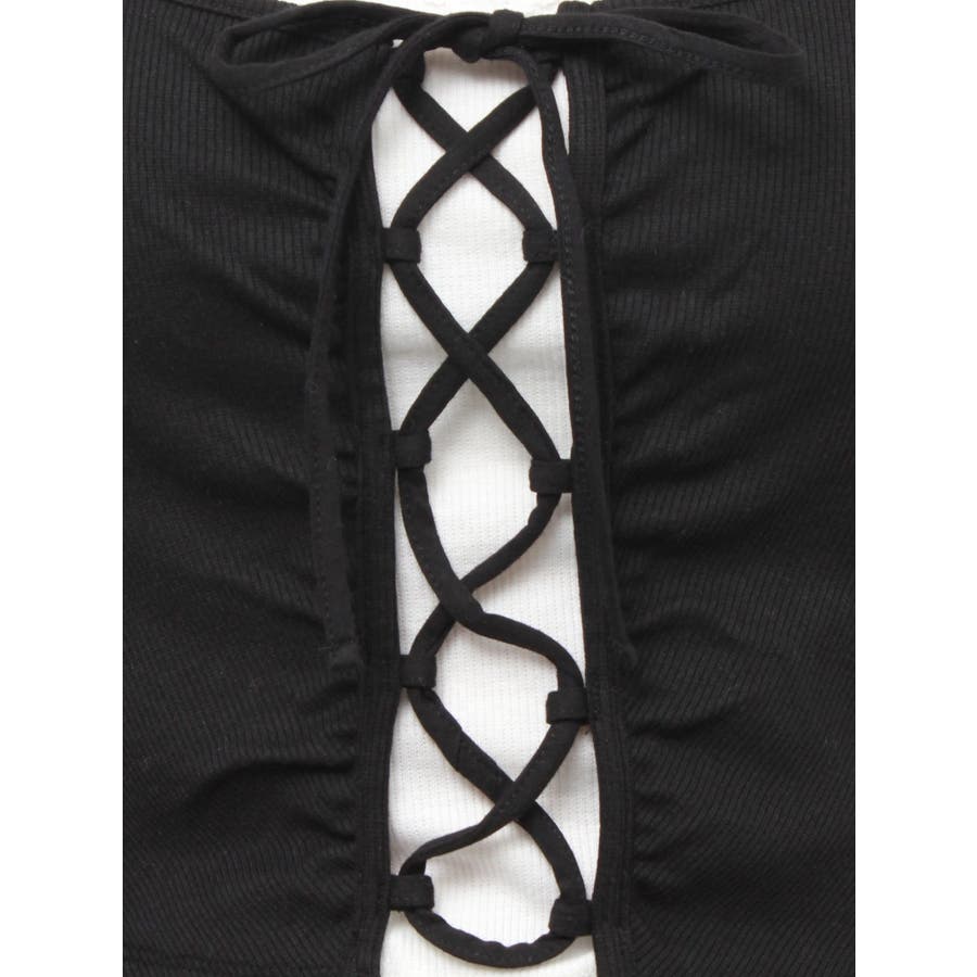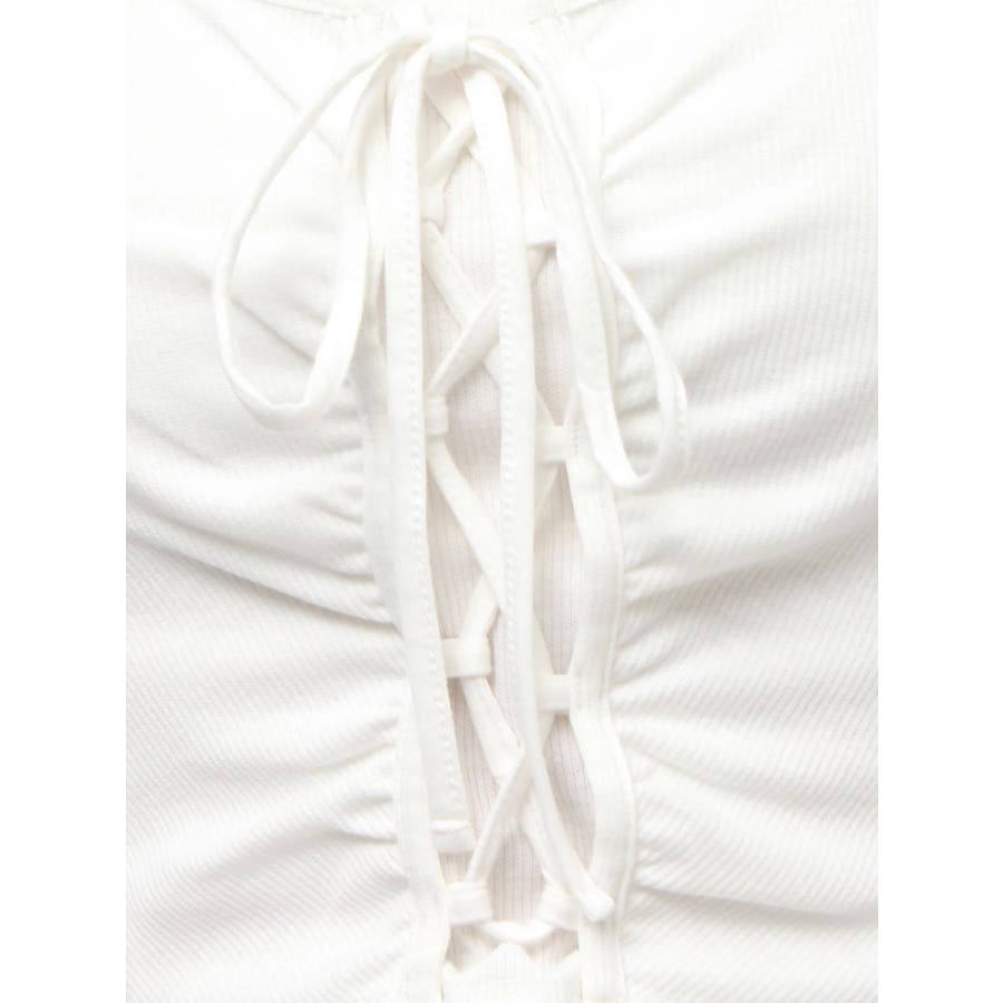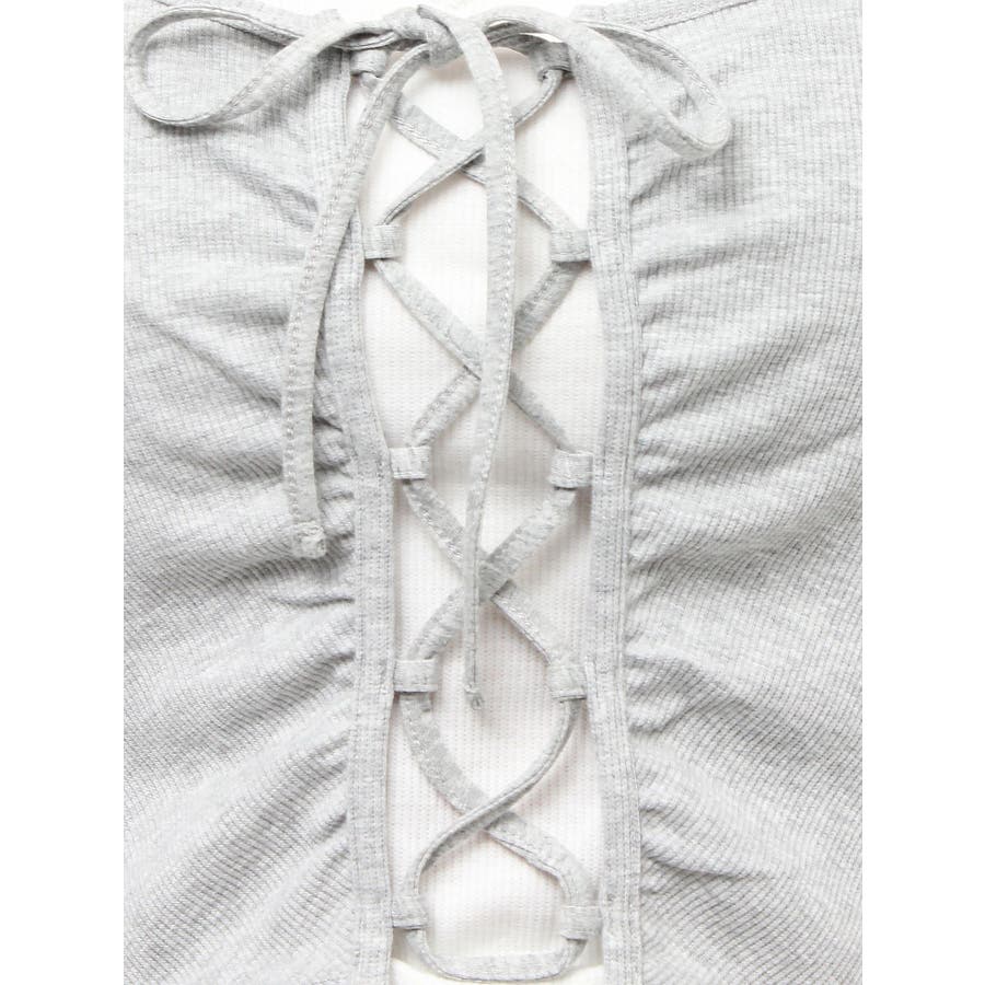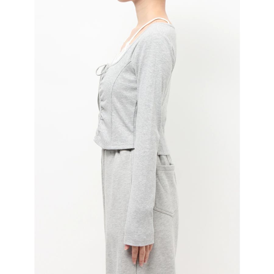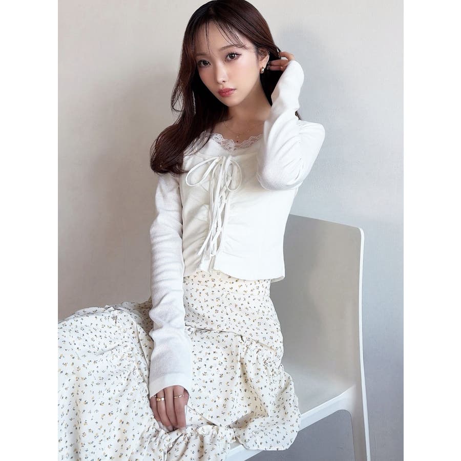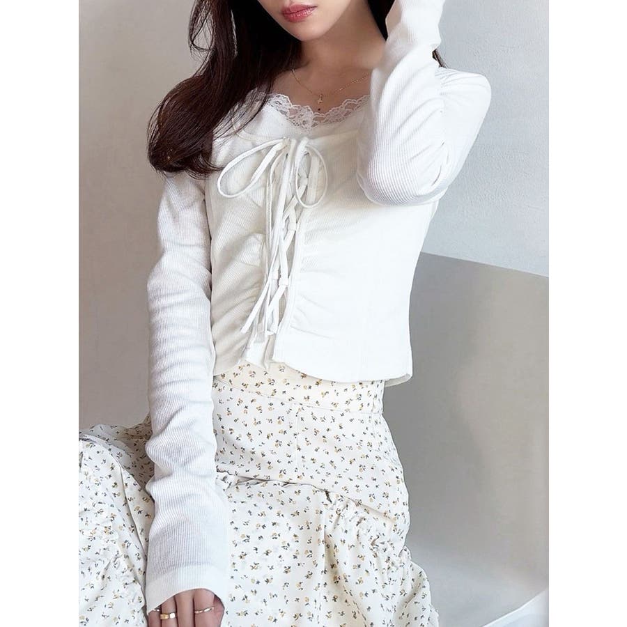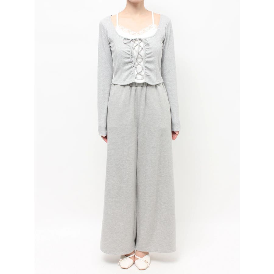 インナーは華奢なレースキャミでミニマルに、フロント部分はレースアップデザインにすることで華やかな印象に仕上げました。