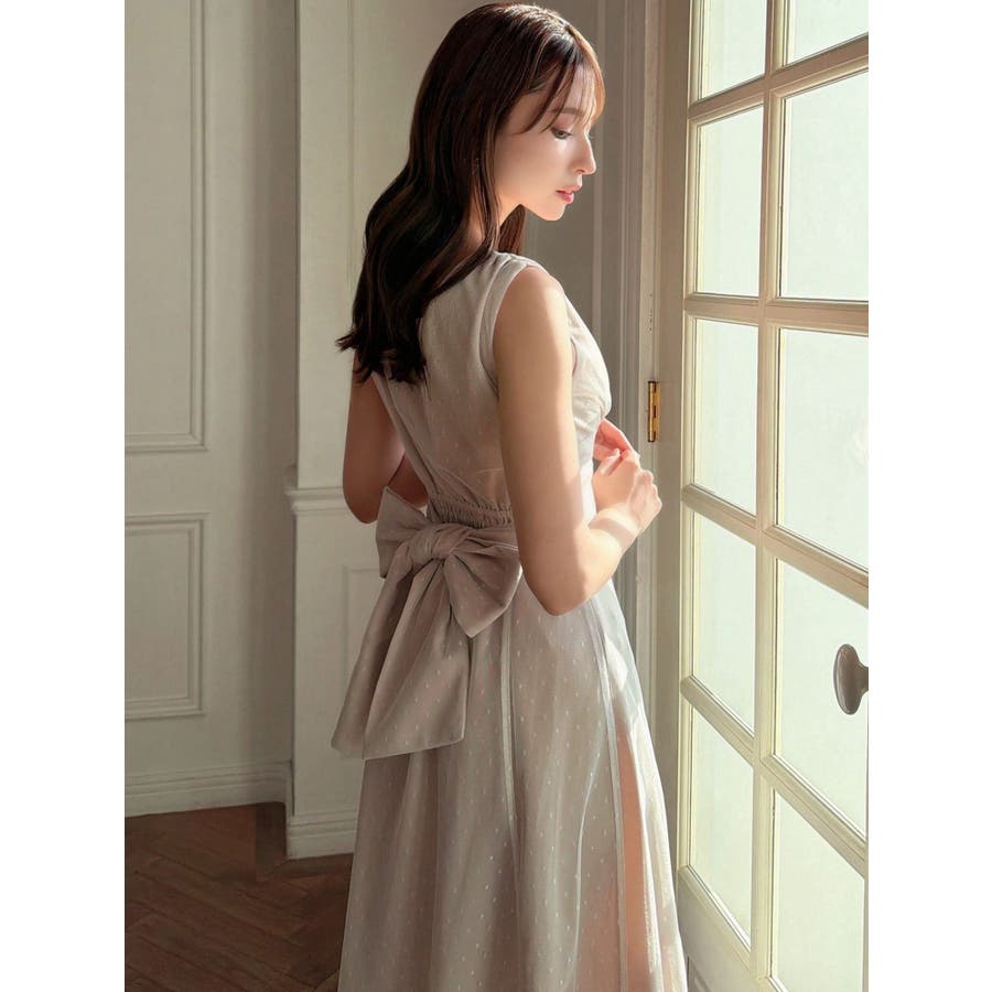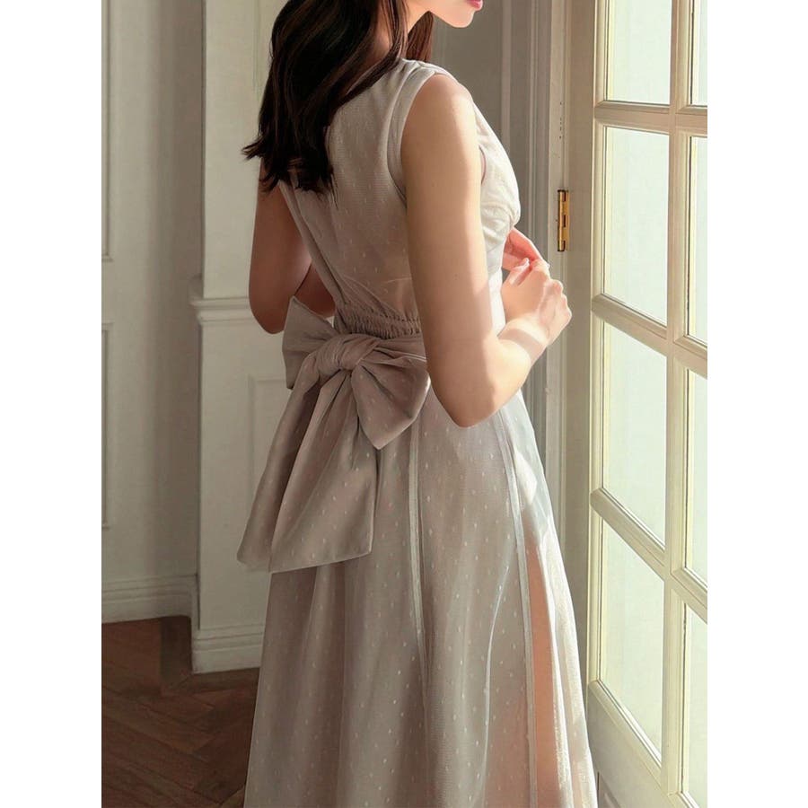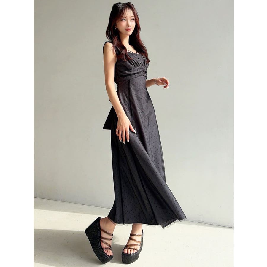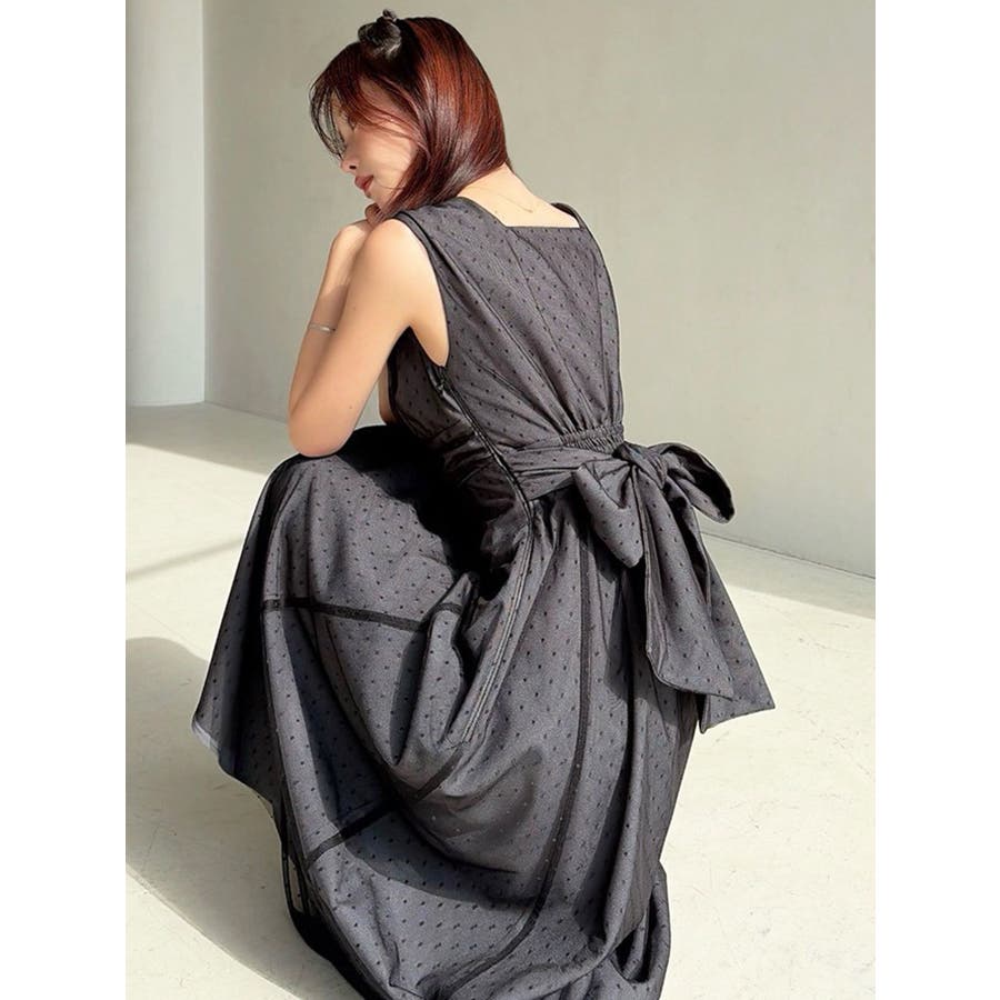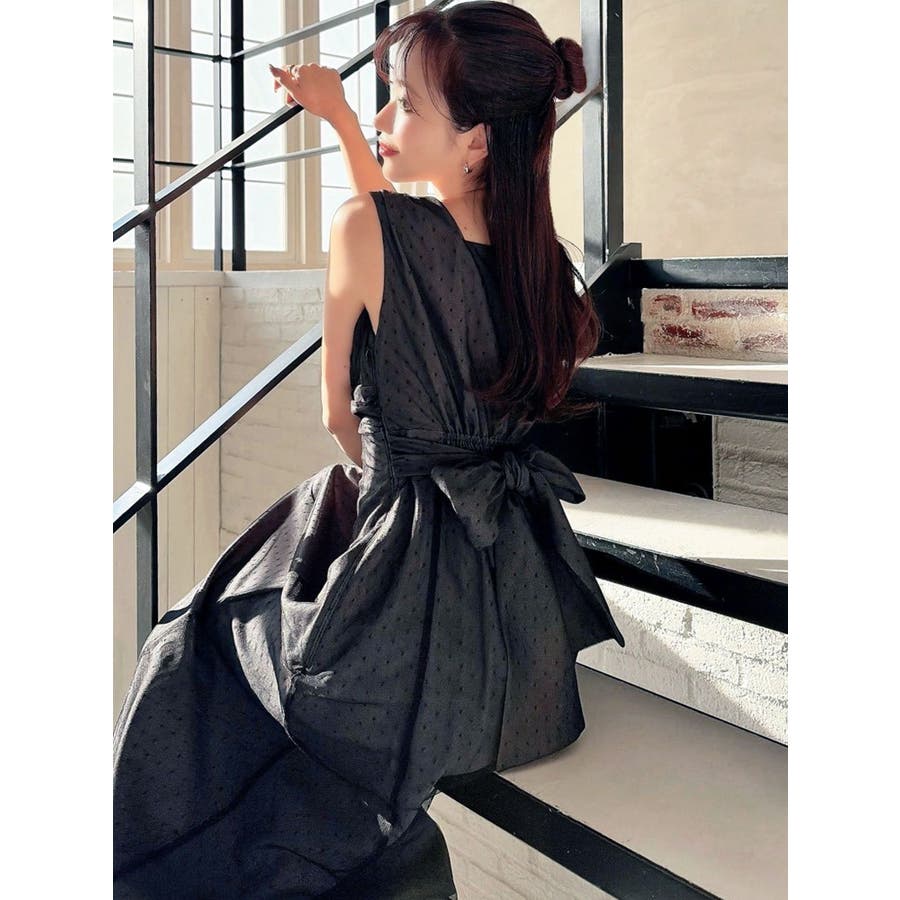 今季イチオシのフレアワンピース▽デザイン▽ドットチュールをレイヤードし、上品な印象のワンピースに仕上げました♪透け感とデザイン性で高見えするイチオシアイテムです。ポイントでギャザーをよせたり、バックウエストは大き目のリボンデザインにしたことで女性らしさをプラス。リボンでウエストのサイズ調節ができるのでウエストラインを強調でき、スカートのフレアシルエットとのメリハリが美しいフィットフレアシルエットを演出します。▽カラー▽黒・ネイビー・ベージュの3色展開。▽スタイリング▽1枚でサラッと着用できて大人なキレイ目コーデが完成。ノースリーブなので羽織りもマッチします◎デイリー使いはもちろん、デートやお呼ばれなど様々なシーンで活躍します。