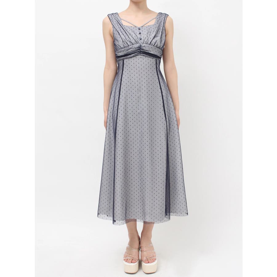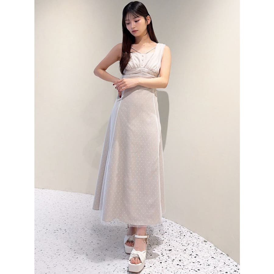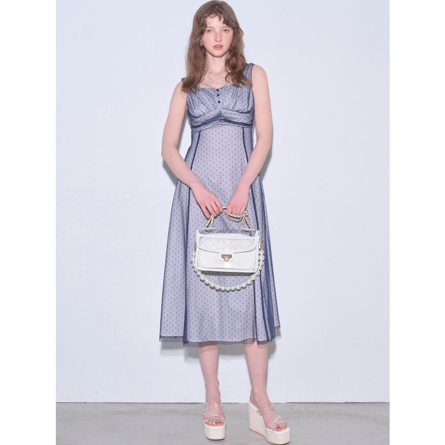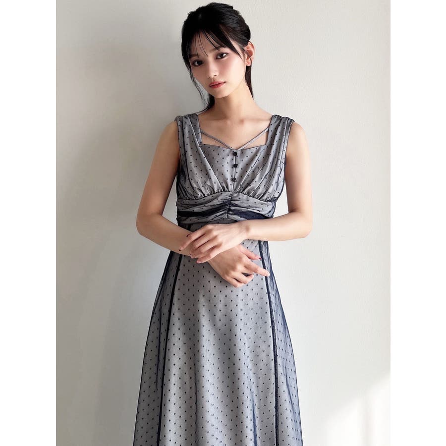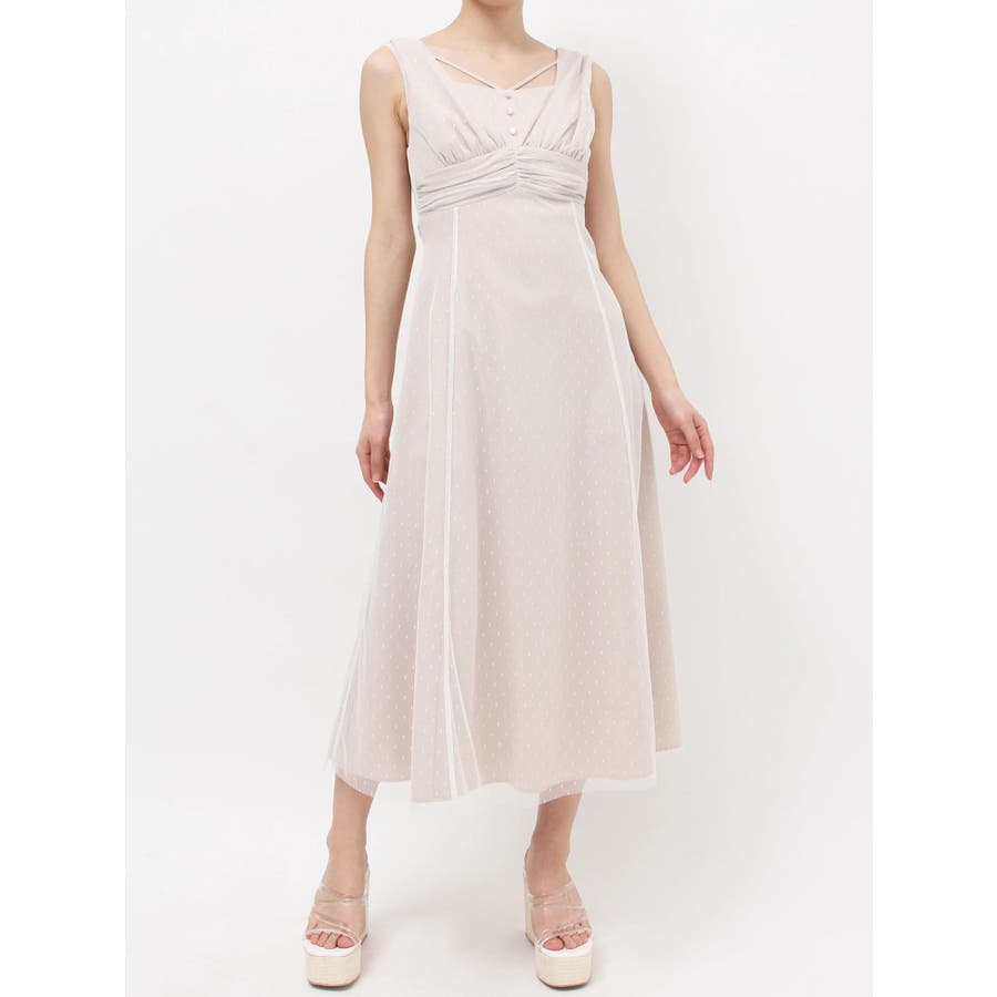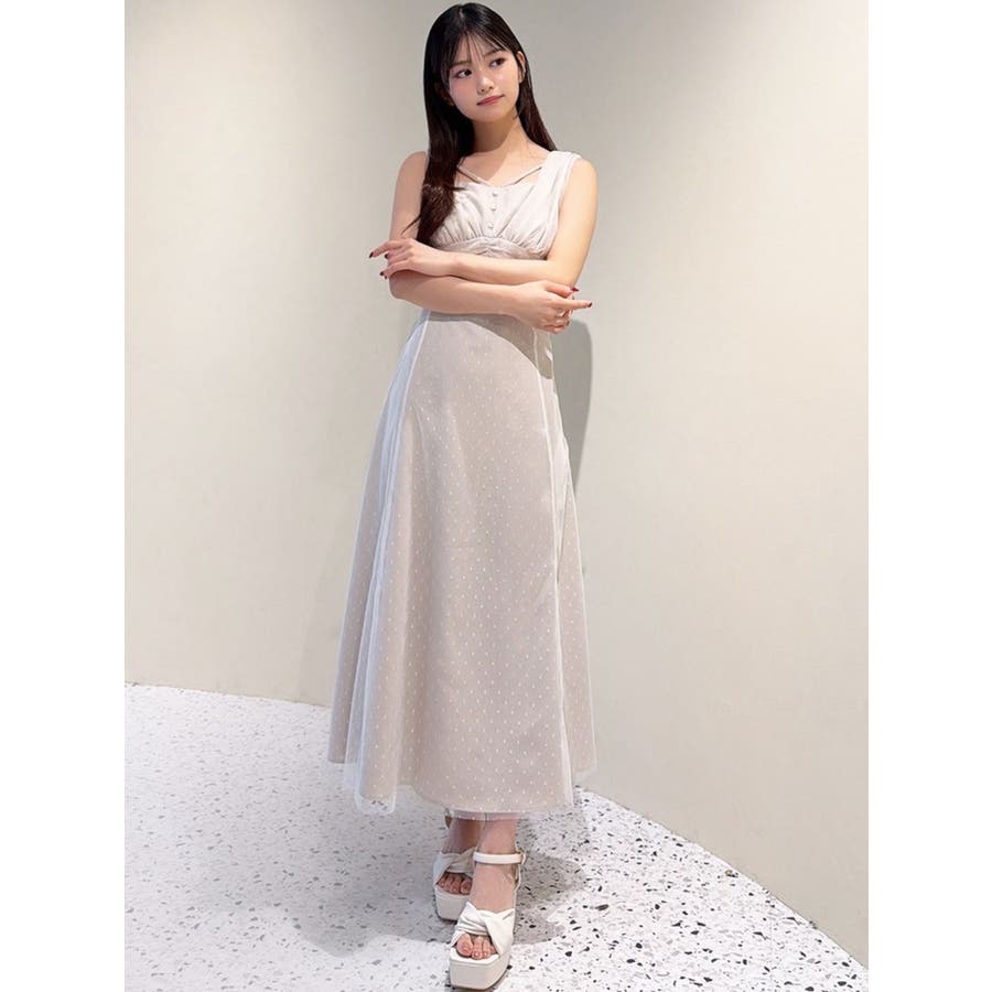 ドットチュールレイヤードワンピース