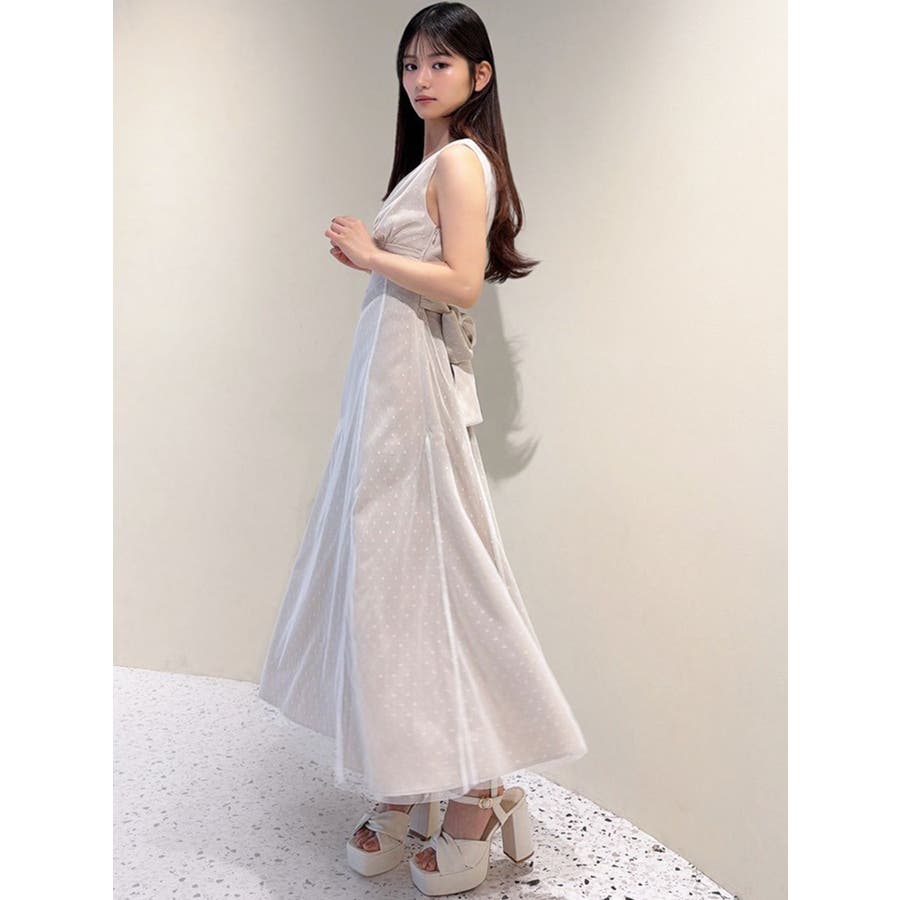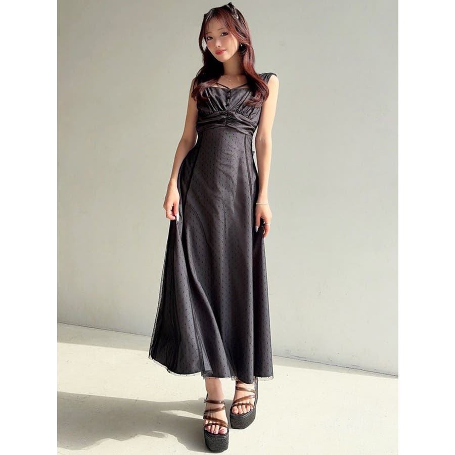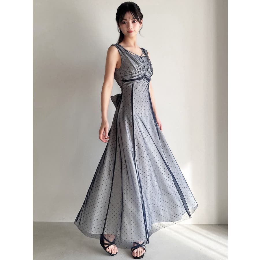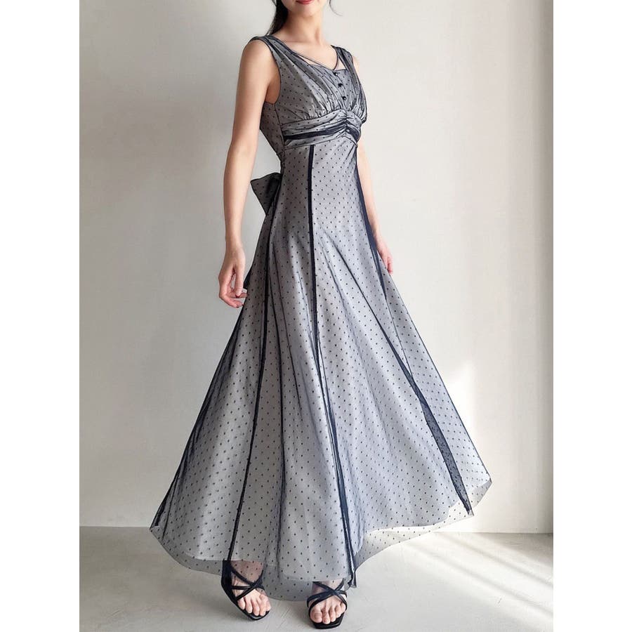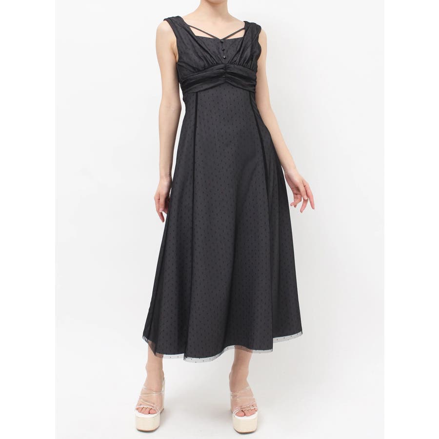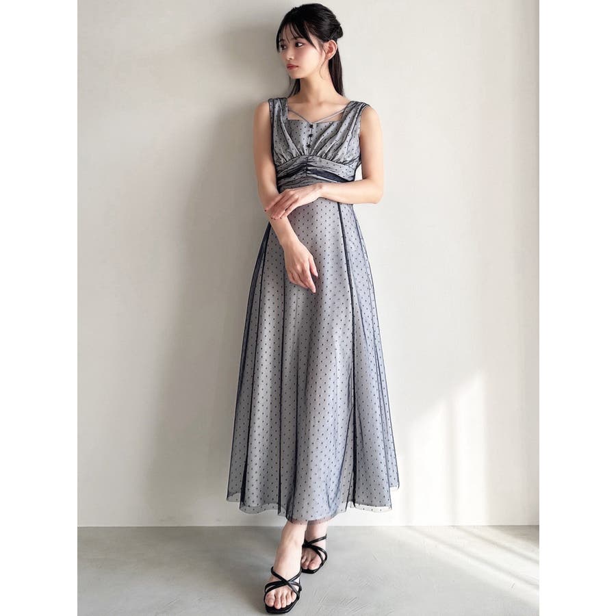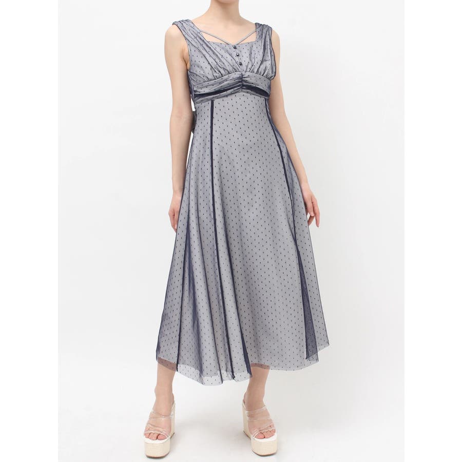 ドットチュールレイヤードワンピース
