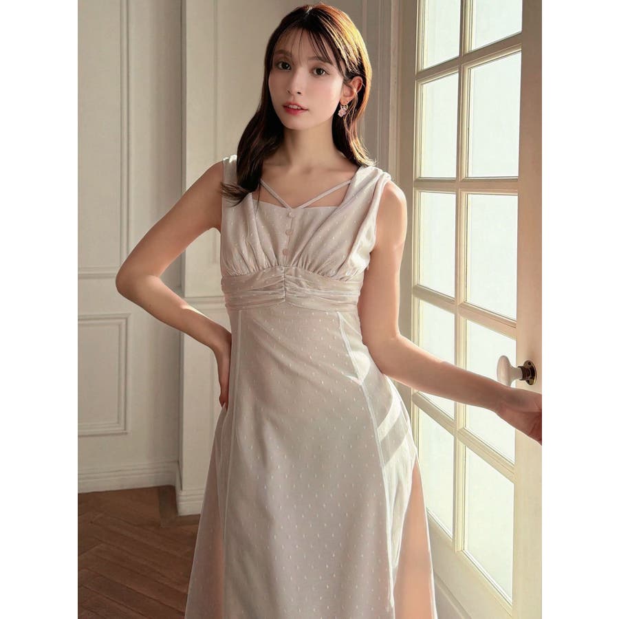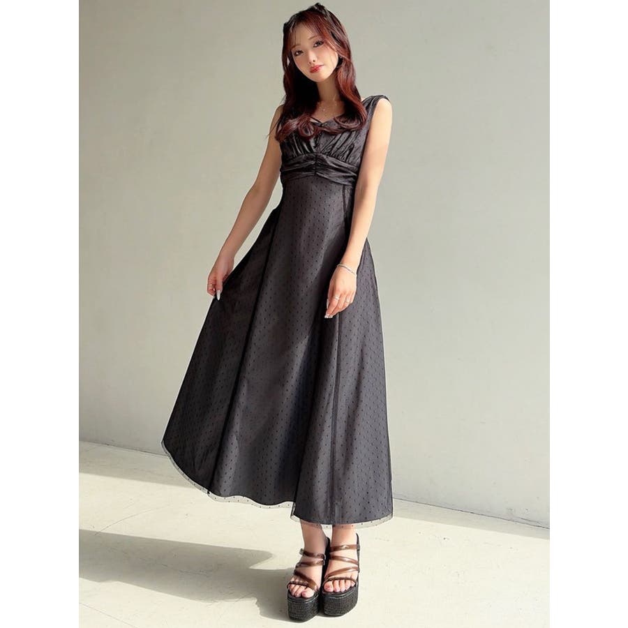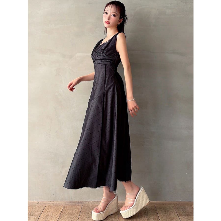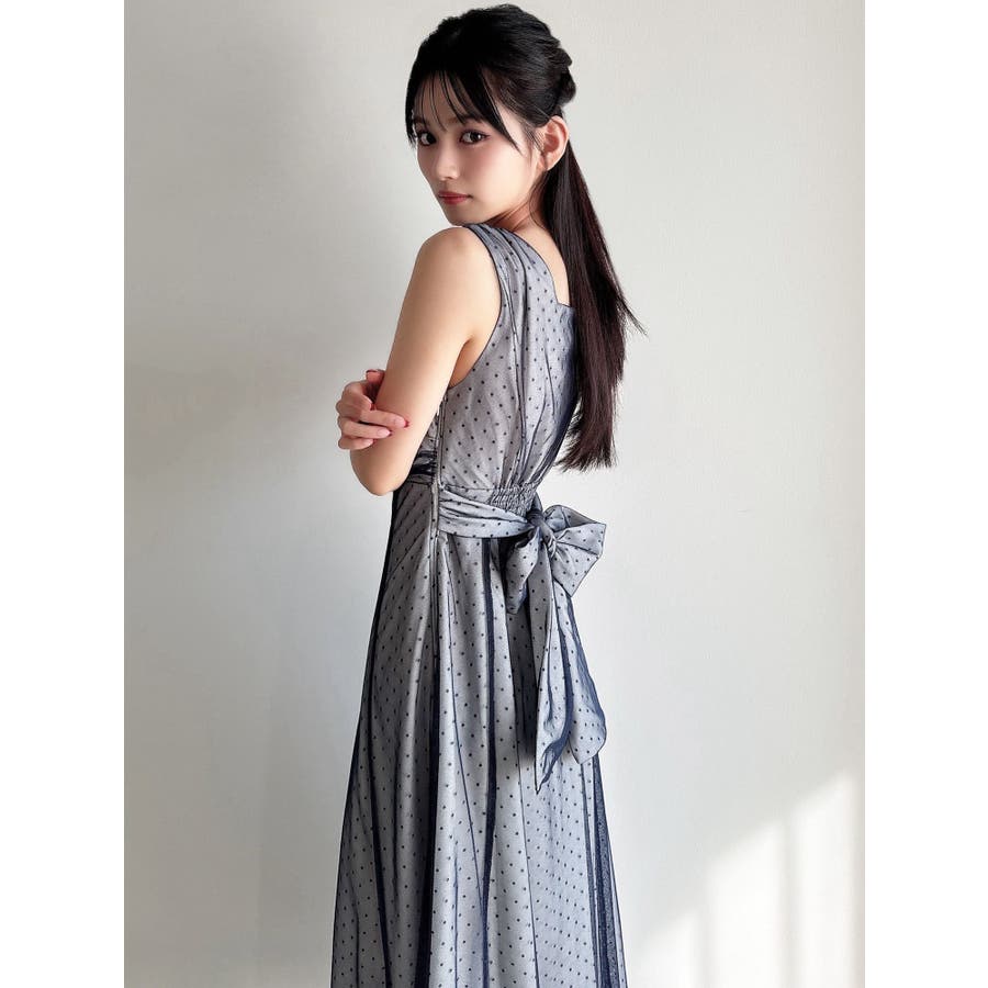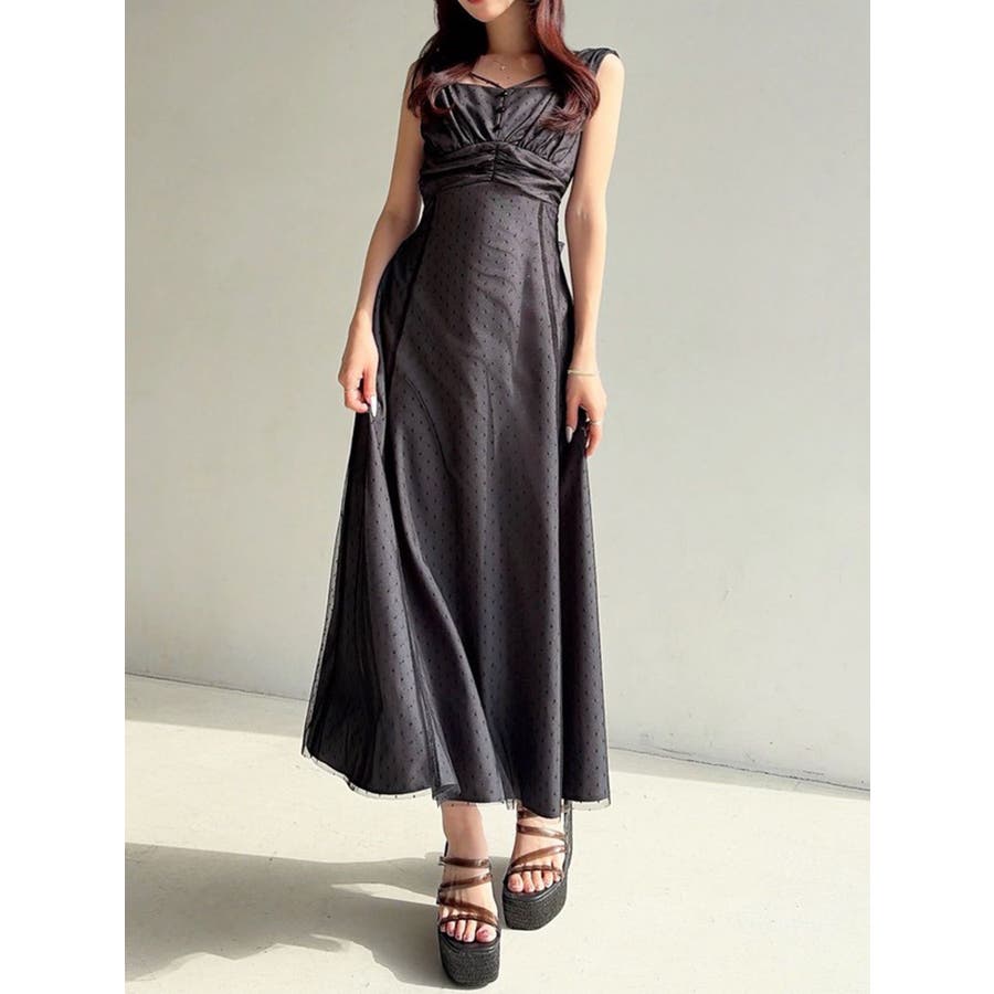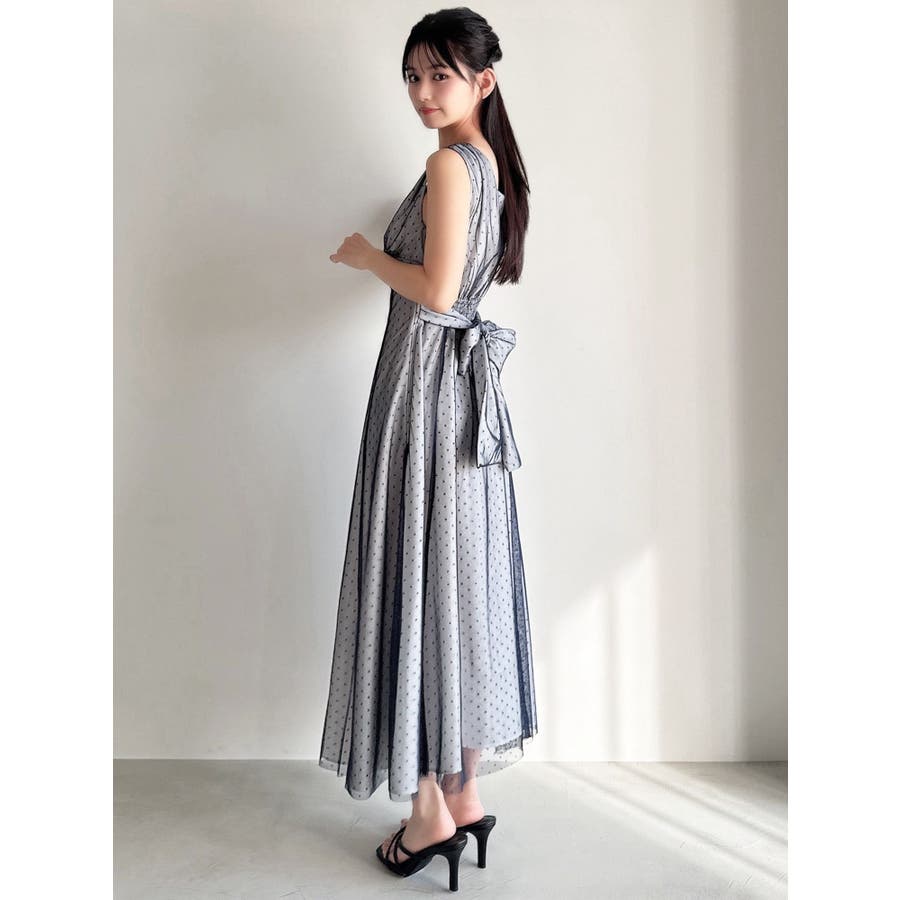 ドットチュールレイヤードワンピース