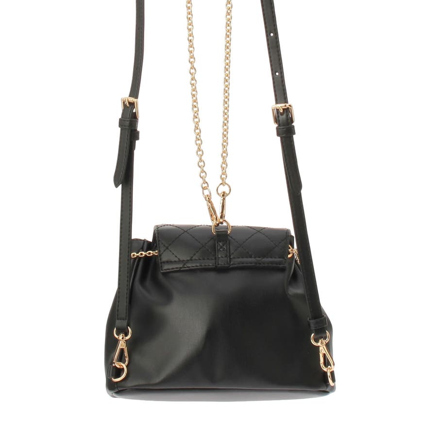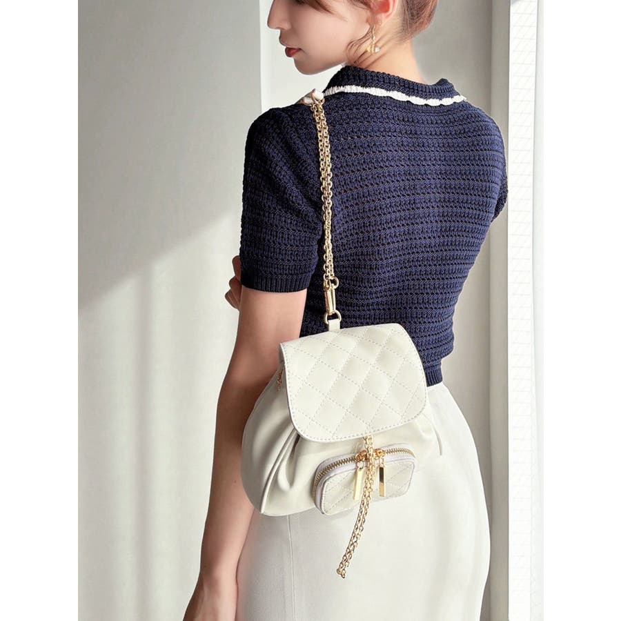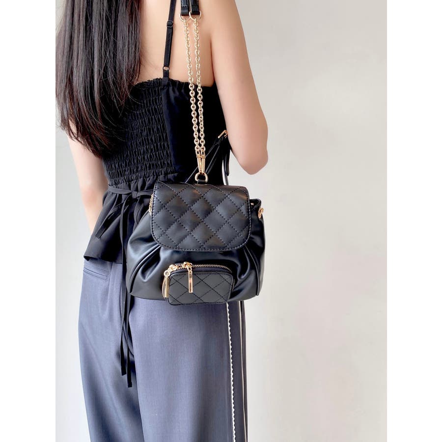 ミニリュックとしてもショルダーバッグとしても使えるマルチバッグ▽デザイン▽収納力も抜群!多機能でトレンド感溢れるミニバッグ。マグネット開閉式のフロントフラップを開けると、毎日の必需品をしっかり収納できるメインコンパートメント。取り外し可能なチェーンストラップ付きで、ショルダーバッグとしても楽しめる2WAY仕様です。▽カラー▽白・黒の2色展開。