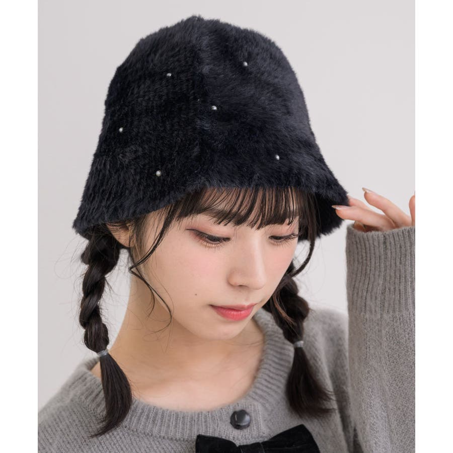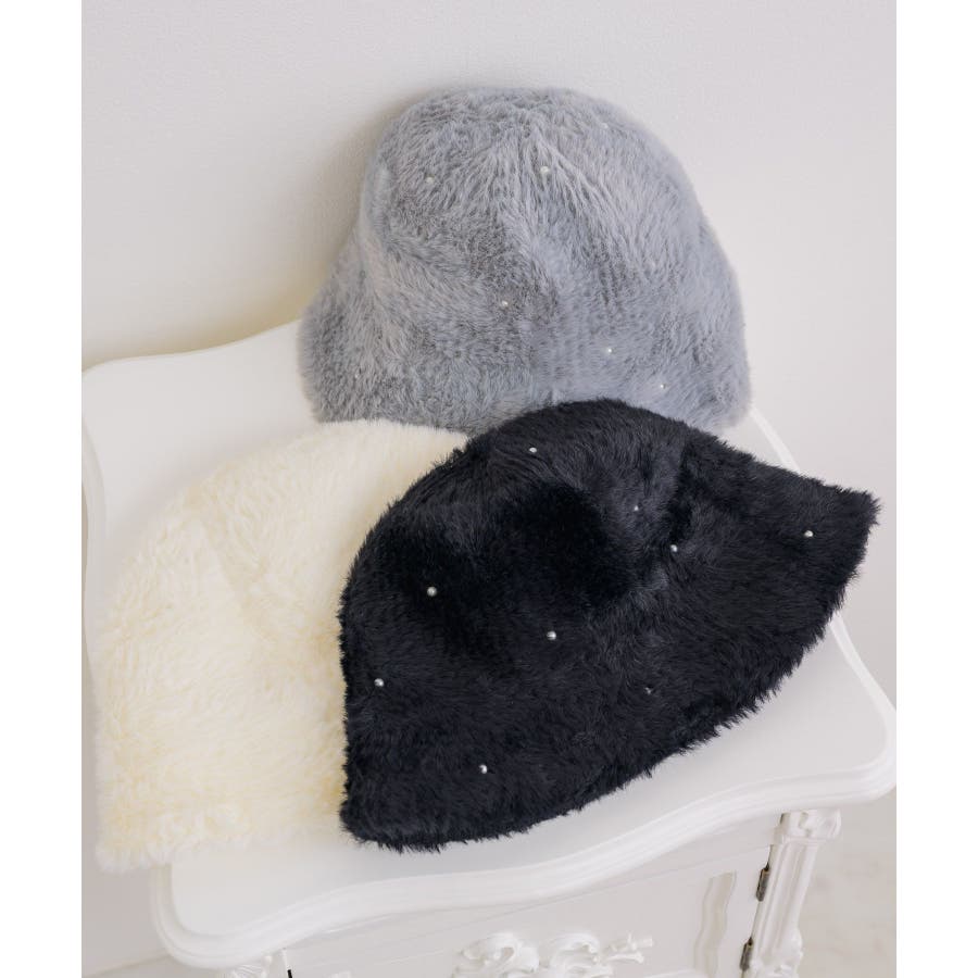 パール付きシャギーハット