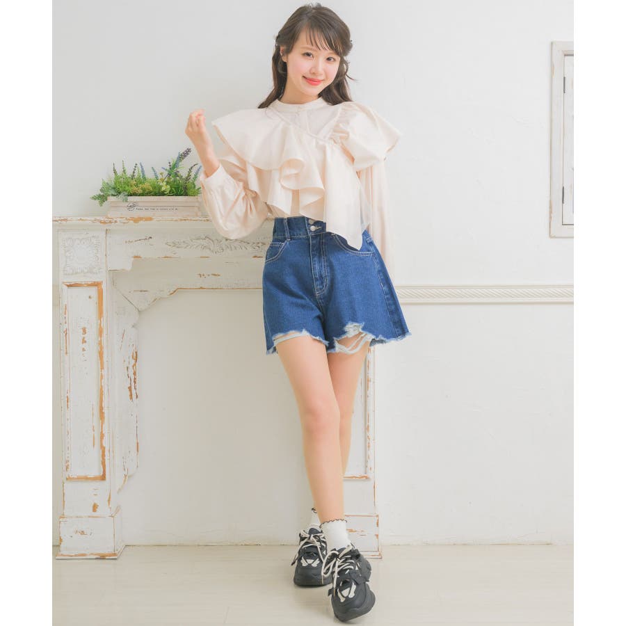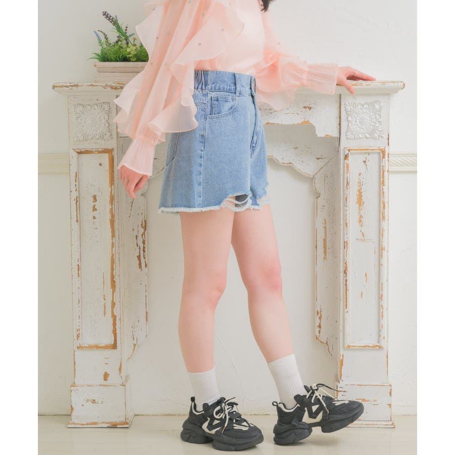 <夏に取り入れたい!美脚見え確定のデニムデザインのショートパンツ>▼デザイン毎年夏始まりにはマストで持っておきたいデニムのショートパンツ。今年は、裾にダメージのデザインが施されていて、かっこいい印象に。ダメージは、フロント部分に程よい肌見せ感。裾に向かって広がるAラインシルエットで、もも回りも細見え効果抜群の美脚確定デニムです。▼コーディネートかっこいいデザインのショーtpパンツですが、トップス次第で印象を変えられます。ブラウスと合わせれば、フレンチガーリーなスタイリングに。Tシャツ合わせでラフに着ても、サイドベルトでデザイン性があるので、ラフになり過ぎないスタイリングに♪------------------------------生地感:普通伸縮性:なし透け感:なし裏地:なし------------------------------▼ブランド紹介ems excite (エムズエキサイト)“more fun more cute”今をもっと楽しくもっと可愛くいたい女の子に向けたgirly cuteなブランド#ダメージ#ダメージデニム#デニムコーデ#デザインデニム#デニムパンツ#デニム#カジュアルコーデ#ガーリーコーデ#大人ガーリー▼注意事項※撮影環境やモニター環境によって実際の商品とお色味が 多少異なってみえる場合がございます。品番:EA480032N001 / 品名:デニムSPT