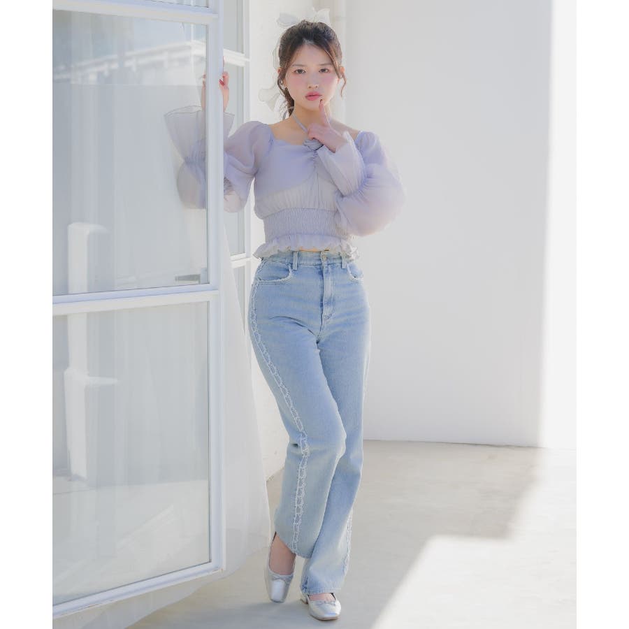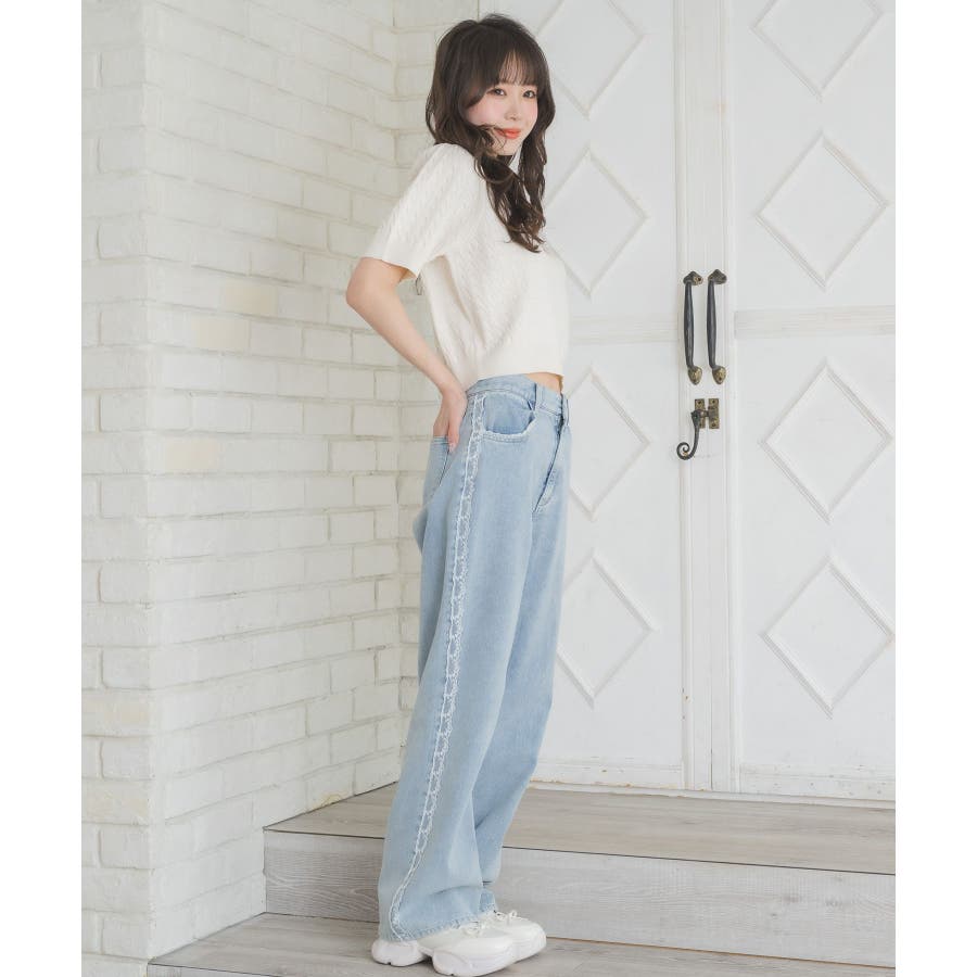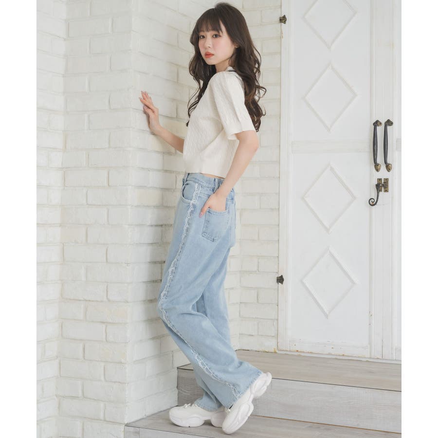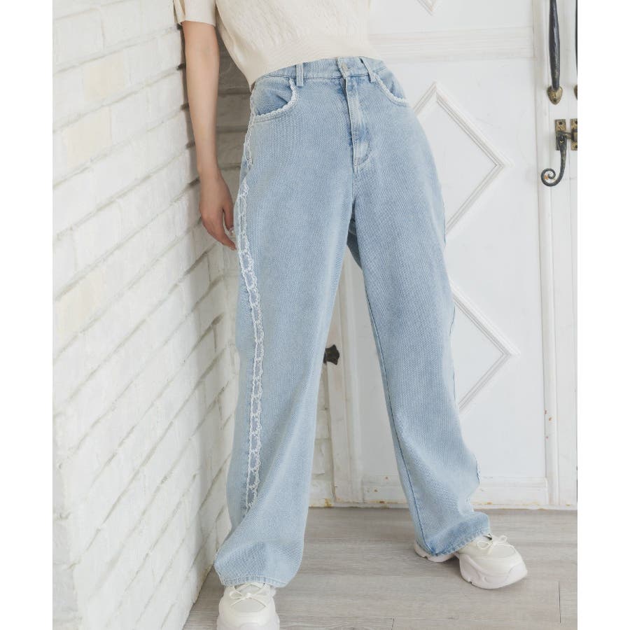 <サイドレースがemsらしいガーリーなデニムパンツ>▼デザインカジュアルなイメージのあるデニムパンツですが、サイドにレースデザインが施されていてemsらしいガーリーコーデに取り入れたくなる1枚。ビジュアルでも着用されたアイテムで、ストレートなシルエットにもこだわりました。ピンクのカラーは珍しく、のトレンドが詰まったおすすめカラーです。▼コーディネートトップスを選ばない定番デニムパンツなので、コーデにも取り入れやすい!サイドのレースを活かしたガーリーなブラウスとの合わせがおすすめ!------------------------------生地感:普通伸縮性:なし透け感:なし裏地:なし------------------------------▼ブランド紹介ems excite (エムズエキサイト)“more fun more cute”今をもっと楽しくもっと可愛くいたい女の子に向けたgirly cuteなブランド#デニムパンツ #デニムコーデ#レースデニム #デニム #ガーリーデニム#ストレートデニム#レース▼注意事項※撮影環境やモニター環境によって実際の商品とお色味が多少異なってみえる場合がございます。品番:EA537532G001 / 品名:レース付きデニムPT