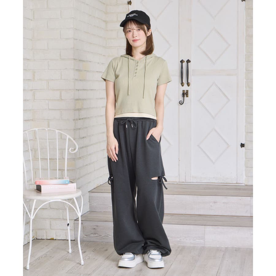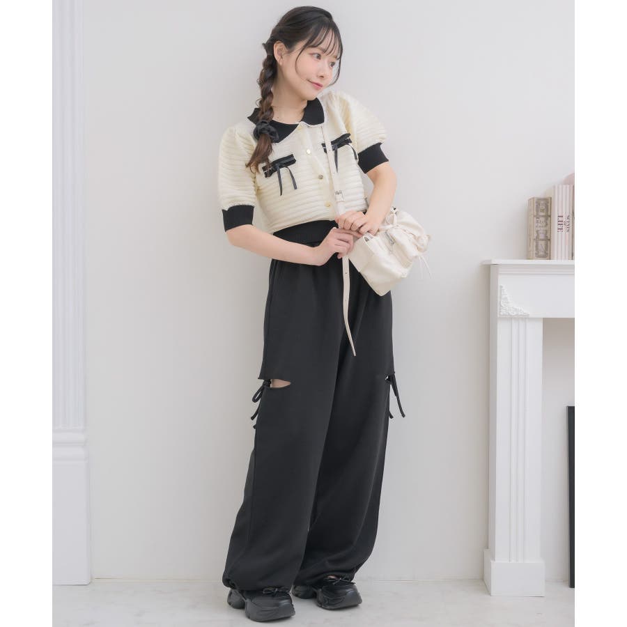 〈今年もトレンド継続中のサイドスリットスウェットパンツ>▼デザインゆるっとルーズなシルエットで、かっこよく着こなせるスウェットパンツ。ラメがMIXされた糸で編まれているので、キラキラと存在感のある1枚。両サイドに程よいスリットが入っていて、そこをリボンで結ぶデザインなので、甘さもプラスされます。裾も絞れるので、着丈やシルエットの調節が可能です◎▼コーディネートファッション小物ではキャップやニット帽が相性のいいアイテム。スポーツデザインにアイテムと合わせるとよりトレンド感のあるコーデに♪------------------------------生地感:普通伸縮性:あり透け感:なし裏地:なし------------------------------▼ブランド紹介ems excite (エムズエキサイト)“more fun more cute”今をもっと楽しくもっと可愛くいたい女の子に向けたgirly cuteなブランド#ラフパンツ #スエット#スエットパンツ#カットパンツ#サイドスリット #ラメパンツ▼注意事項※撮影環境やモニター環境によって実際の商品とお色味が多少異なってみえる場合がございます。品番:EA537532N002 / 品名:キラキラスウェットPT