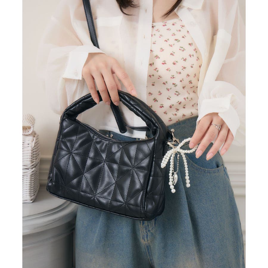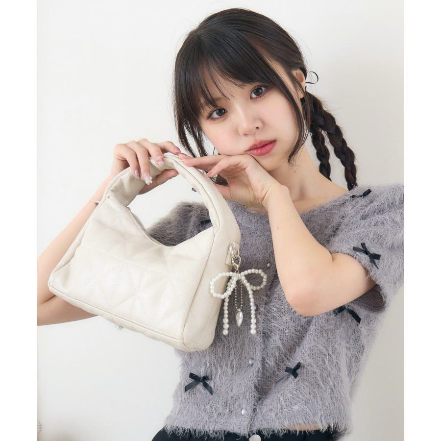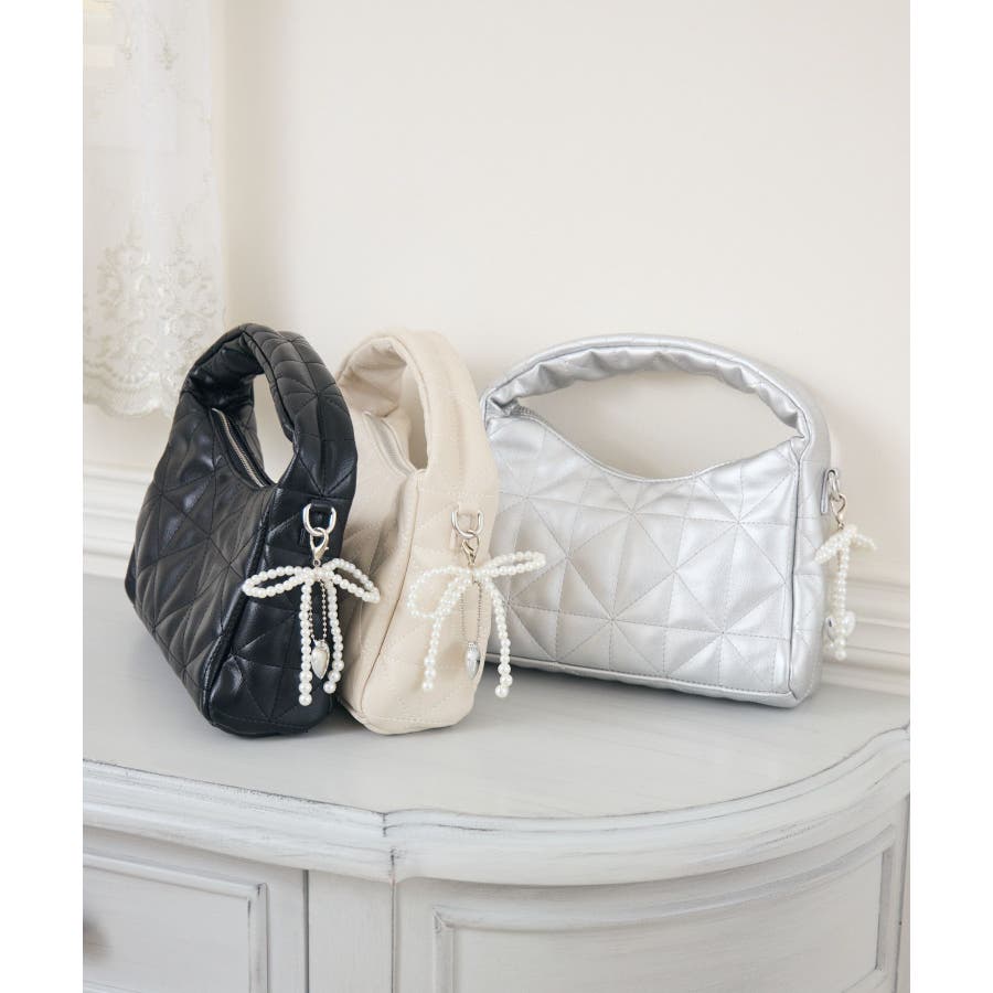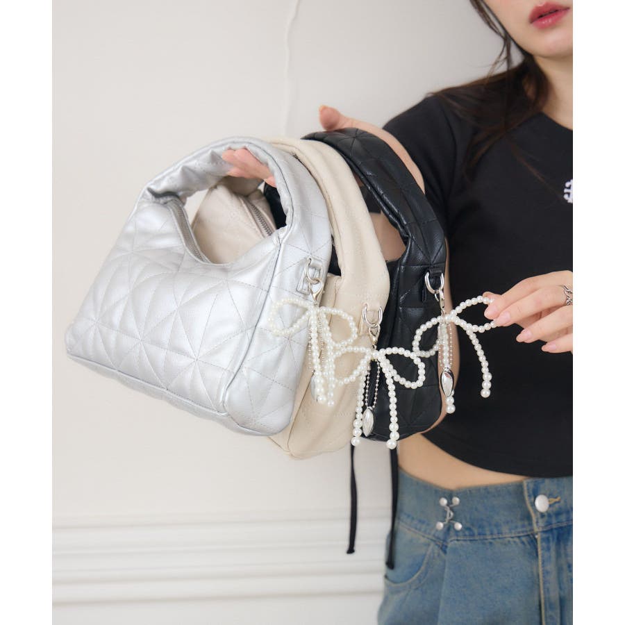チャーム付きキルトバッグ