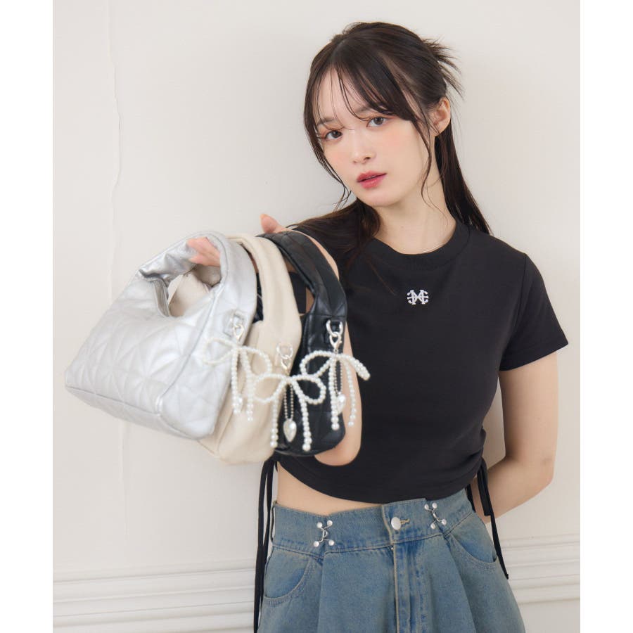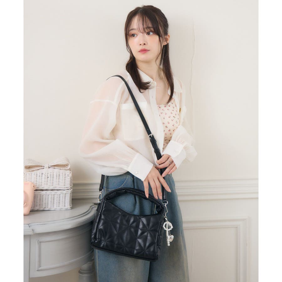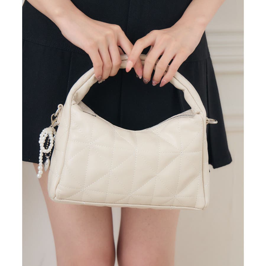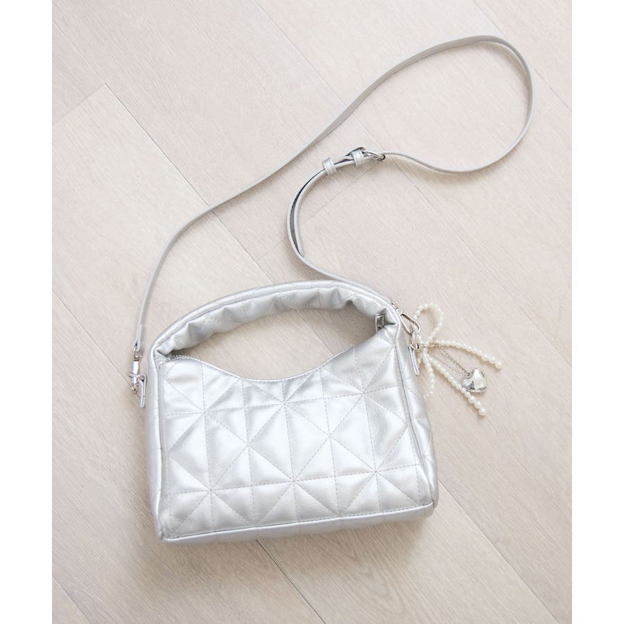 チャーム付きキルトバッグ
