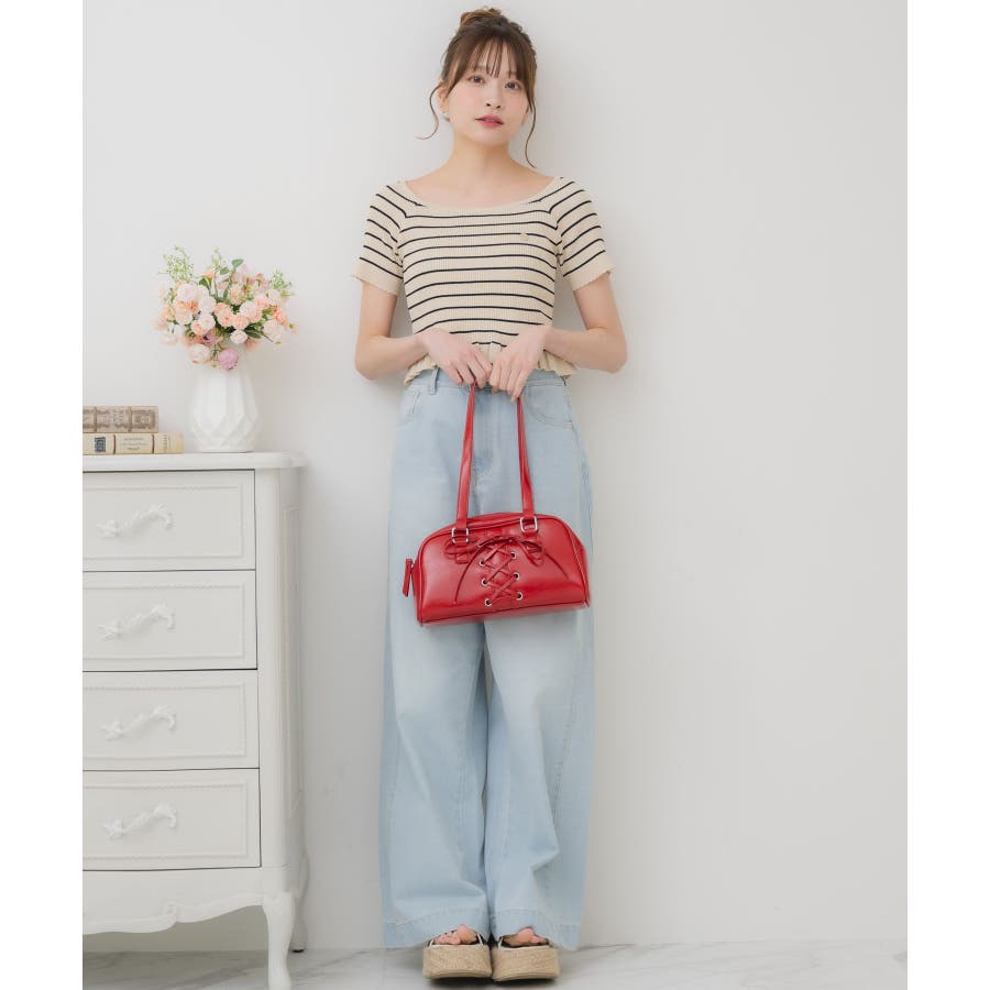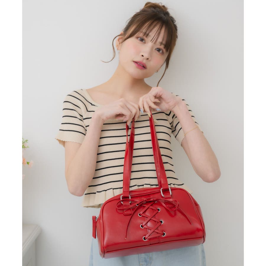 〈今年らしいレースアップデザインのボストンバッグ〉▼デザイン今年トレンドのレースアップデザインが施されたボストンバッグ。大容量で、デイリー使いにもおすすめ!ハンドル部分が長いので、肩からかけやすいので使いやすいです。レッドのカラーは販売の度に大人気を頂く人気カラーです◎▼コーディネート韓国カジュアルなコーデにおすすめのバッグ。自立したボストンバックは、骨格ストレートさんと相性◎▼ブランド紹介ems excite (エムズエキサイト)“more fun more cute”今をもっと楽しくもっと可愛くいたい女の子に向けたgirly cuteなブランド#バッグ #ボストンバッグ #レースアップ #スクエアバッグ #韓国コーデ #大容量バッグ▼注意事項※撮影環境やモニター環境によって実際の商品とお色味が 多少異なってみえる場合がございます。品番:EA537843T009 / 品名:レースアップボストン