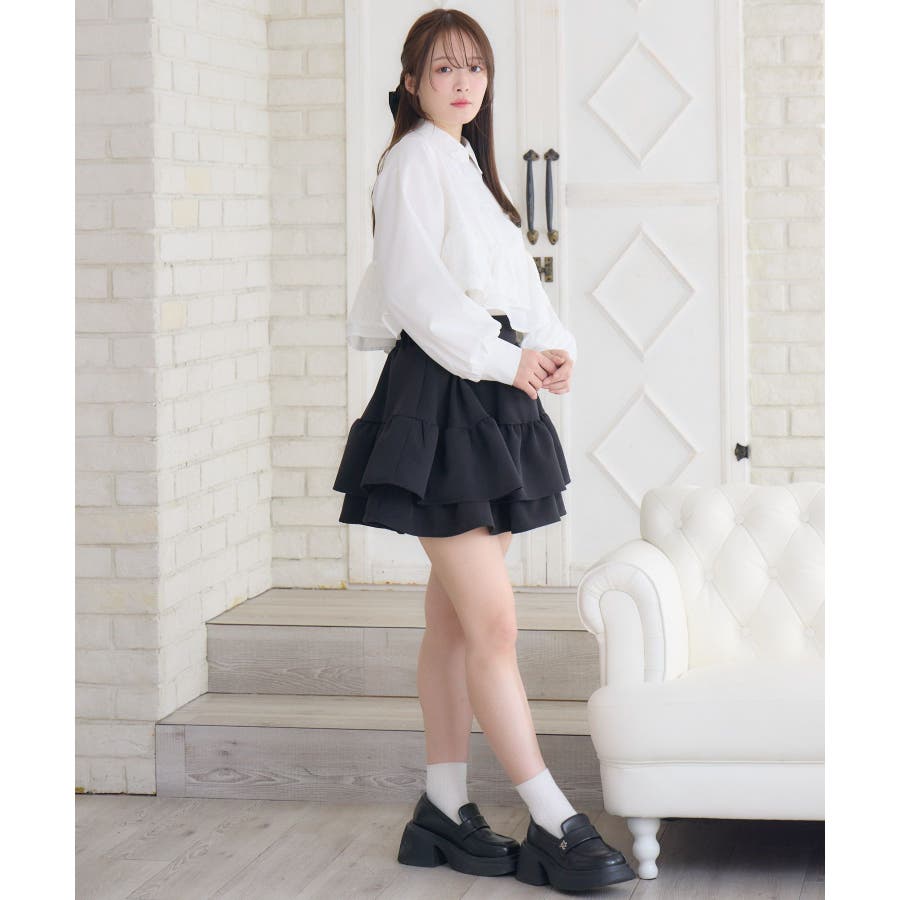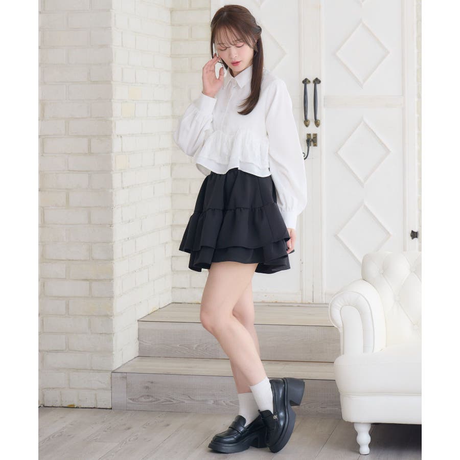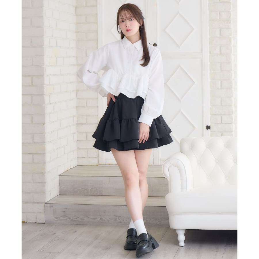 <ハイウエストでウエスト-10cm見えのボリュームミニスカート>▼デザインハイウエストで、脚長効果抜群のミニ丈スカート!ボリューム感もある2段のフリルがとっても可愛い◎ウエスト部分が細く見えるように計算されたデザインとディティールで可愛く見せたい日にセレクトしたい1枚が完成。新色のホワイトも仲間入りして、4色からお選びいただけます。▼コーディネートミニ丈のトップスと合わせても相性バッチリのハイウエストボトム。ボリューム感のあるスカートなので、トップスはシンプルでもコーデに華やかさを演出してくれます。参戦服にもおすすめです◎------------------------------生地感:普通伸縮性:なし透け感:なし裏地:ある------------------------------▼ブランド紹介ems excite (エムズエキサイト)“more fun more cute”今をもっと楽しくもっと可愛くいたい女の子に向けたgirly cuteなブランド#フリルスカート #ミニスカート #ハイウエストスカート #デザインスカート #スカートパンツ ▼注意事項※撮影環境やモニター環境によって実際の商品とお色味が多少異なってみえる場合がございます。品番:EA556431G002 / 品名:ハイウエスト切替ミニSK