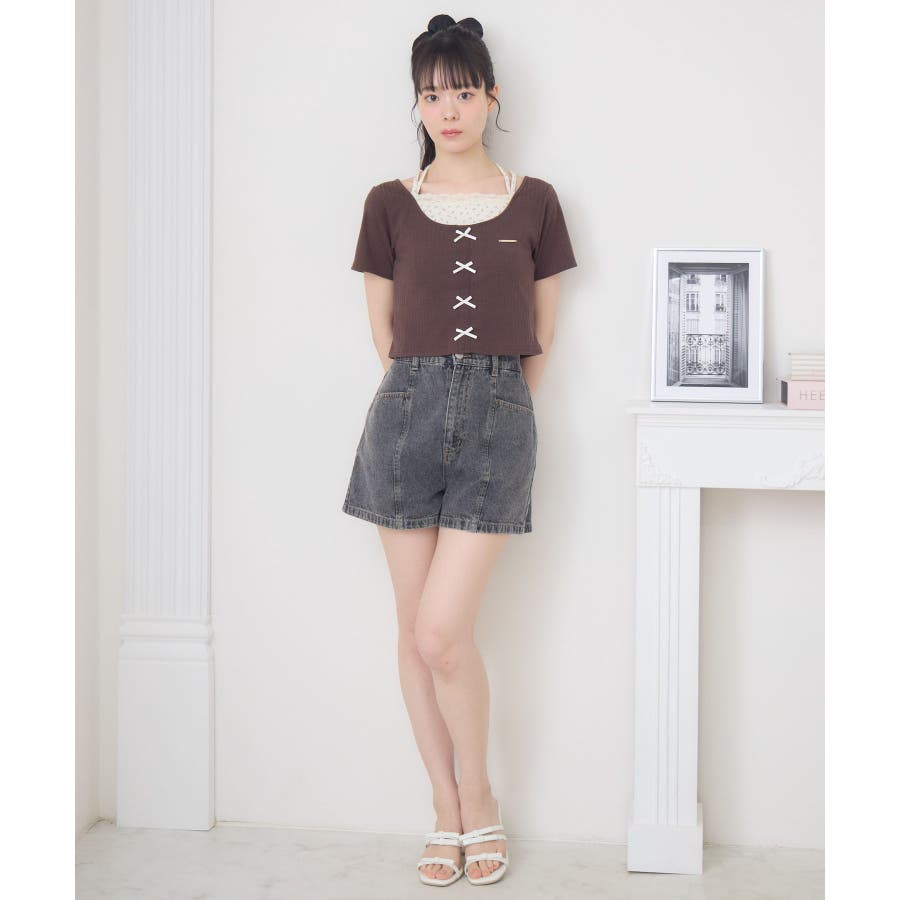 <夏にらしくヘルシーなデニムショートパンツ>▼デザイン毎年夏には取り入れたくなるデニムのショートパンツ。ややハイウエストでシルエットも美しく仕上げました。裾に向かって広がるAラインシルエットで、もも回りも細見え効果抜群の美脚確定デニムです。▼コーディネートTシャツ合わせでラフで無邪気なスタイリングに!今年は裾デザインキャミソールと合わせてトレンド感あるコーデに♪------------------------------生地感:普通伸縮性:なし透け感:なし裏地:なし------------------------------▼ブランド紹介ems excite (エムズエキサイト)“more fun more cute”今をもっと楽しくもっと可愛くいたい女の子に向けたgirly cuteなブランド#デニムコーデ #デザインデニム #デニムパンツ #デニム #カジュアルコーデ #デニムショートパンツ▼注意事項※撮影環境やモニター環境によって実際の商品とお色味が 多少異なってみえる場合がございます。品番:EA561032B001 / 品名:デニムSPT