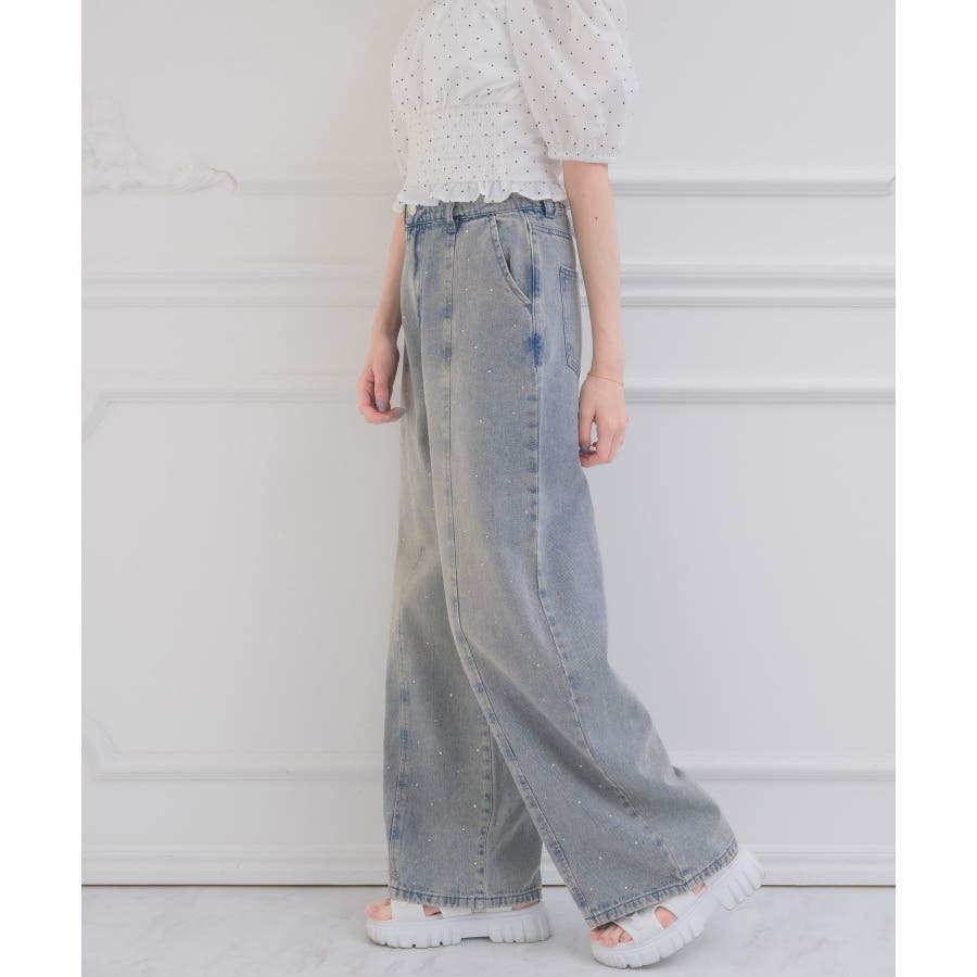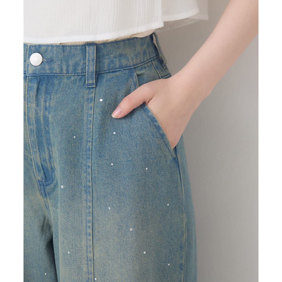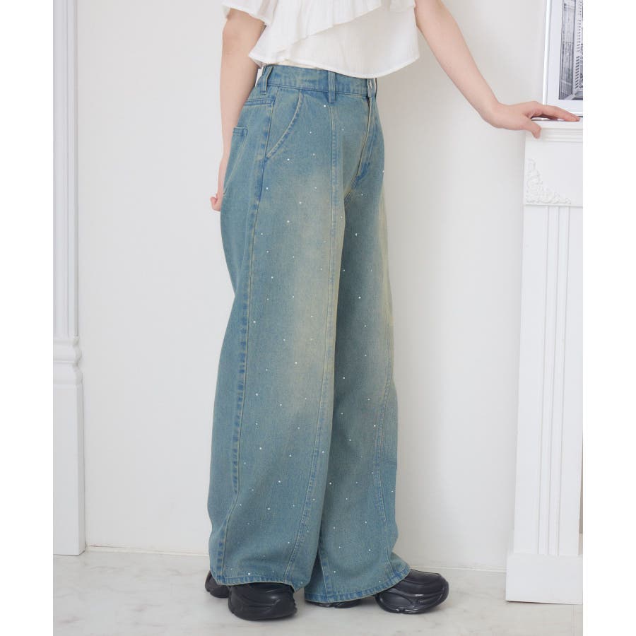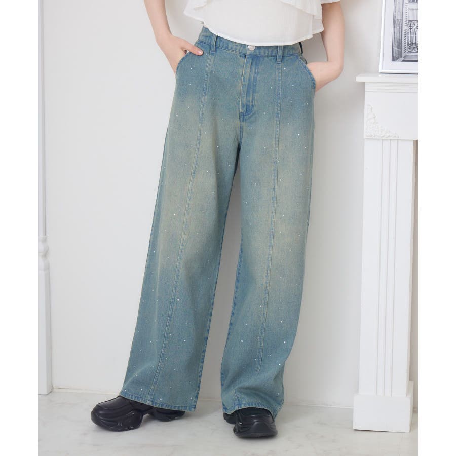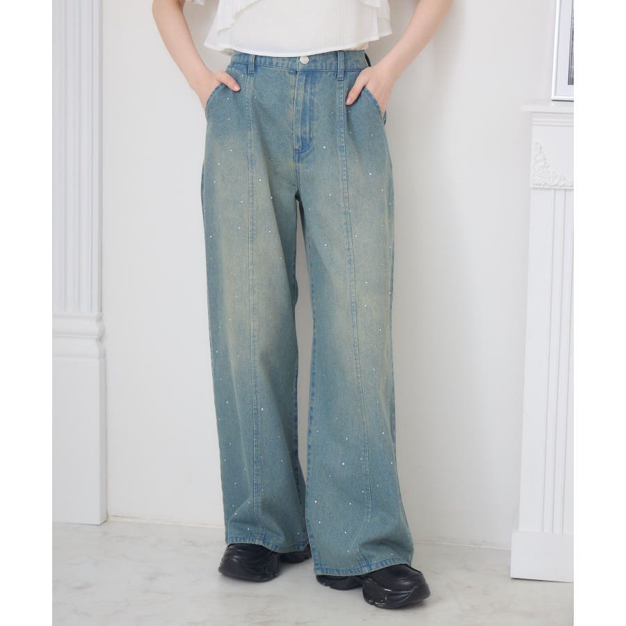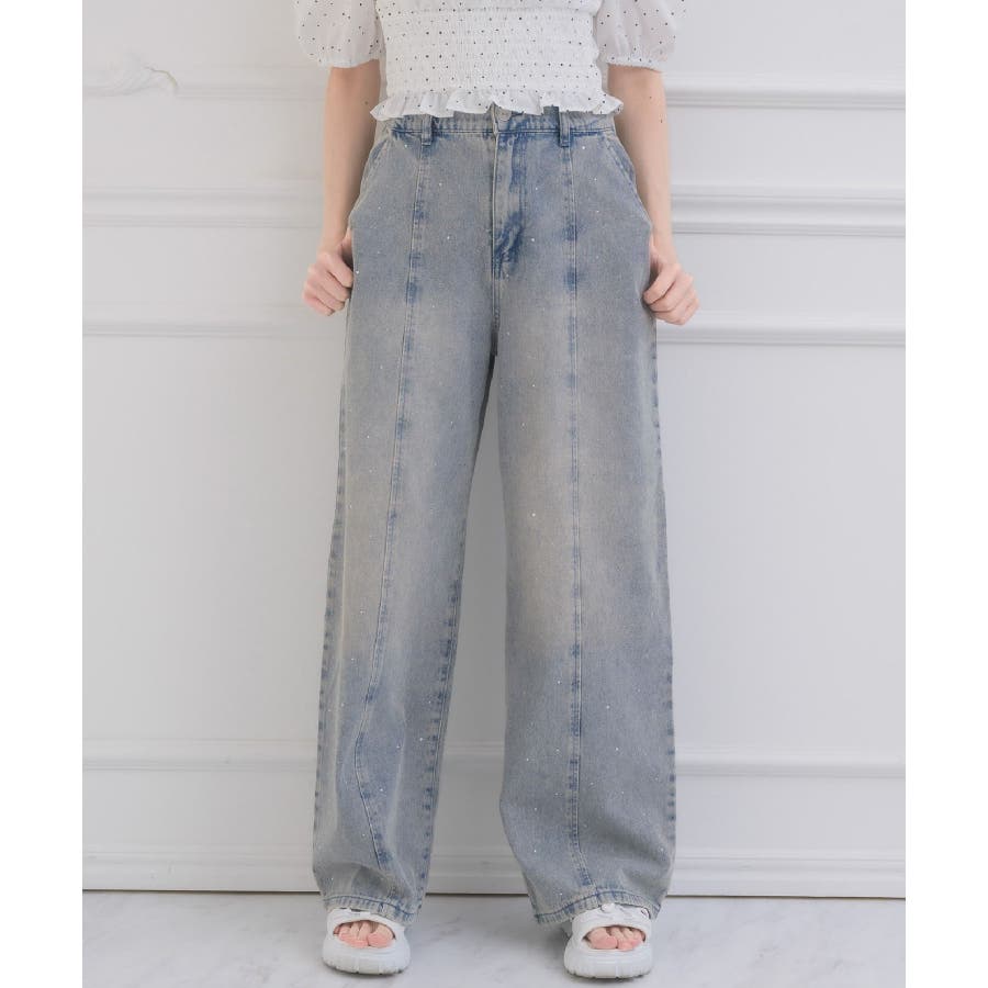 <ビジューデザインがemsらしいワイドなデニムパンツ>▼デザインビジューが散りばめられたemsらしいデニムパンツ。ワイドなシルエットで、ゆるっと着用して頂けます。センター部分にラインが入っているので、脚が長く、綺麗に見えます。加工感があるので、Y2Kコーデにもおすすめ!▼コーディネートトップスを選ばない定番デニムパンツなので、コーデにも取り入れやすい!ハンチング帽やキャップなど小物でスタイリングをもっとオシャレにアレンジするのもおすすめ♪------------------------------生地感:普通伸縮性:なし透け感:なし裏地:なし------------------------------▼ブランド紹介ems excite (エムズエキサイト)“more fun more cute”今をもっと楽しくもっと可愛くいたい女の子に向けたgirly cuteなブランド#デニムパンツ #デニムコーデ#ビジューデニム #デニム #ビジュー#ストレートデニム#ワイドパンツ▼注意事項※撮影環境やモニター環境によって実際の商品とお色味が多少異なってみえる場合がございます。品番:EA561032N001 / 品名:ビジューデニムPT