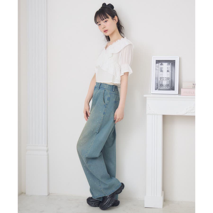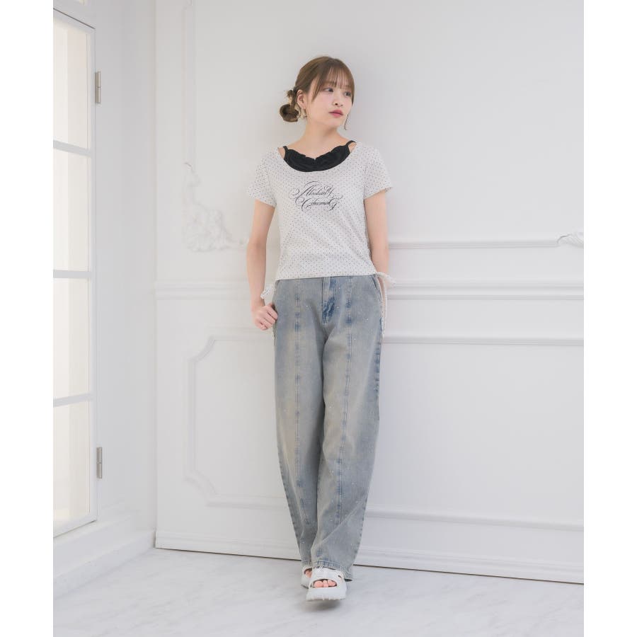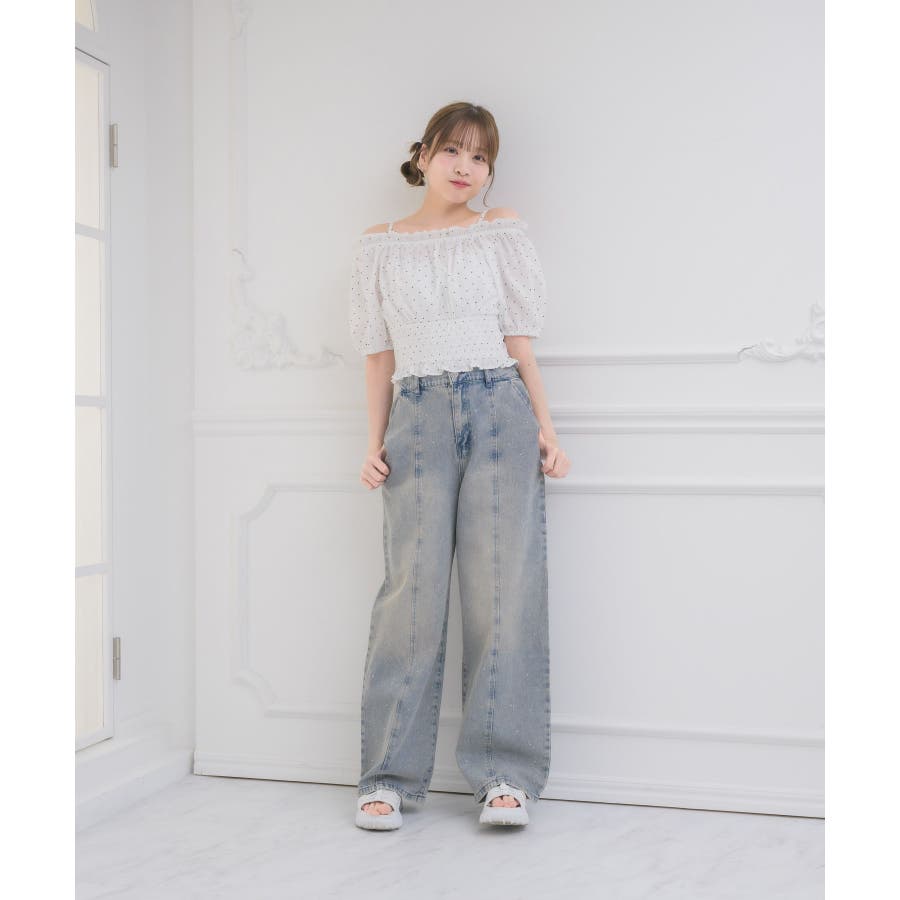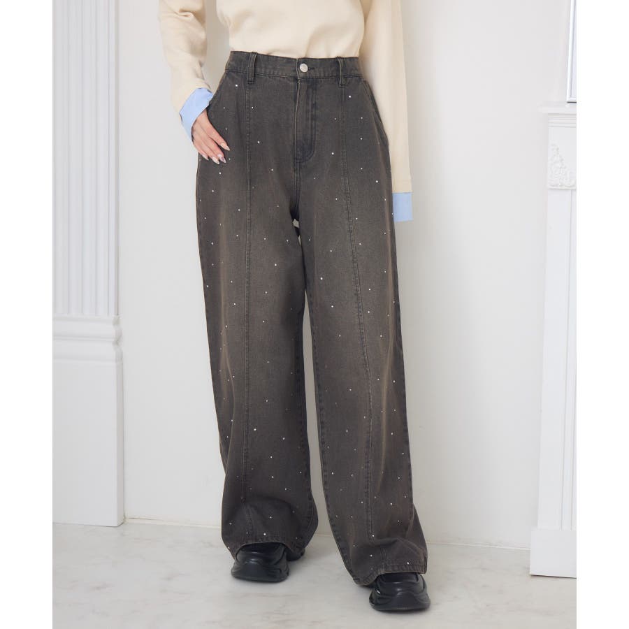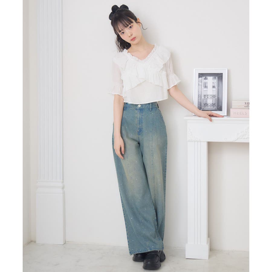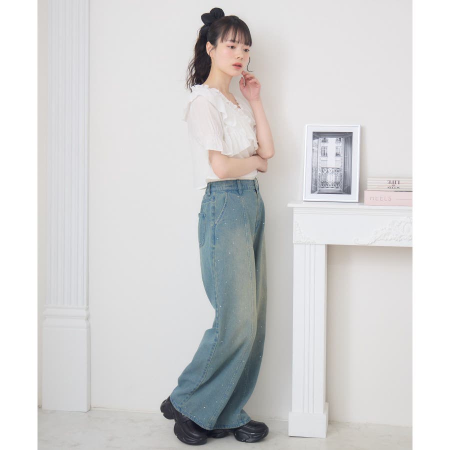 <ビジューデザインがemsらしいワイドなデニムパンツ>▼デザインビジューが散りばめられたemsらしいデニムパンツ。ワイドなシルエットで、ゆるっと着用して頂けます。センター部分にラインが入っているので、脚が長く、綺麗に見えます。加工感があるので、Y2Kコーデにもおすすめ!▼コーディネートトップスを選ばない定番デニムパンツなので、コーデにも取り入れやすい!ハンチング帽やキャップなど小物でスタイリングをもっとオシャレにアレンジするのもおすすめ♪------------------------------生地感:普通伸縮性:なし透け感:なし裏地:なし------------------------------▼ブランド紹介ems excite (エムズエキサイト)“more fun more cute”今をもっと楽しくもっと可愛くいたい女の子に向けたgirly cuteなブランド#デニムパンツ #デニムコーデ#ビジューデニム #デニム #ビジュー#ストレートデニム#ワイドパンツ▼注意事項※撮影環境やモニター環境によって実際の商品とお色味が多少異なってみえる場合がございます。品番:EA561032N001 / 品名:ビジューデニムPT