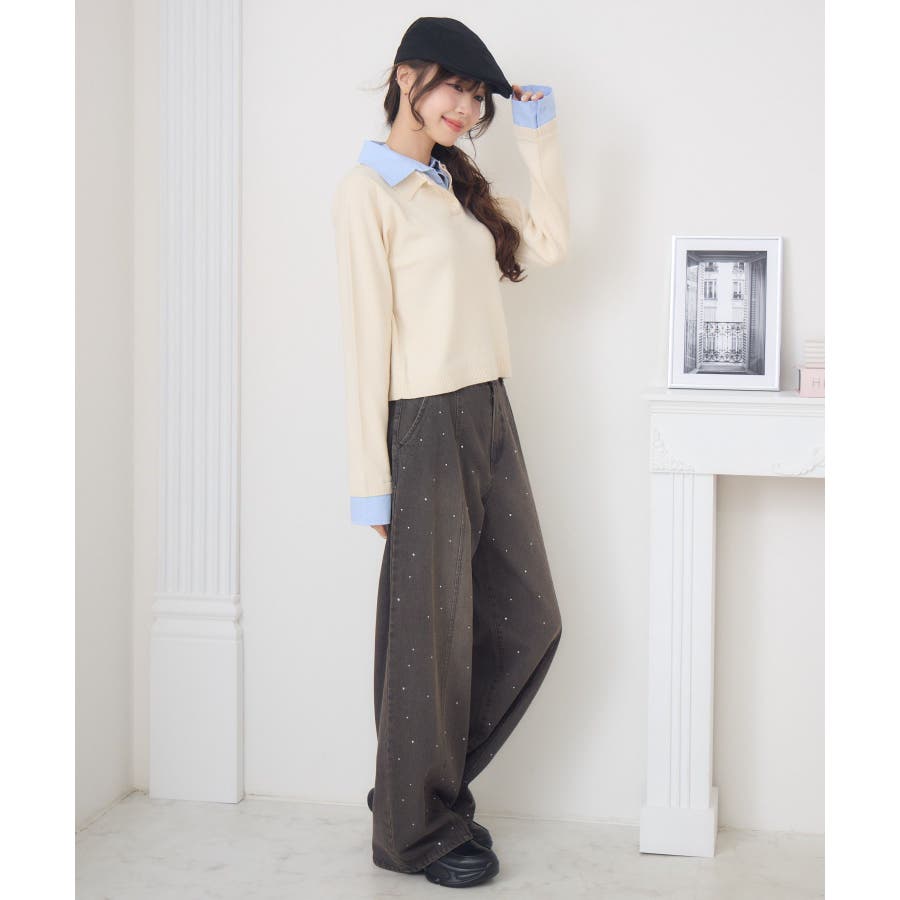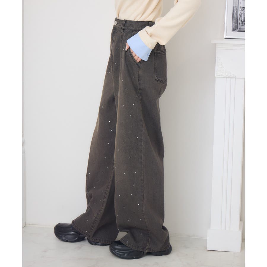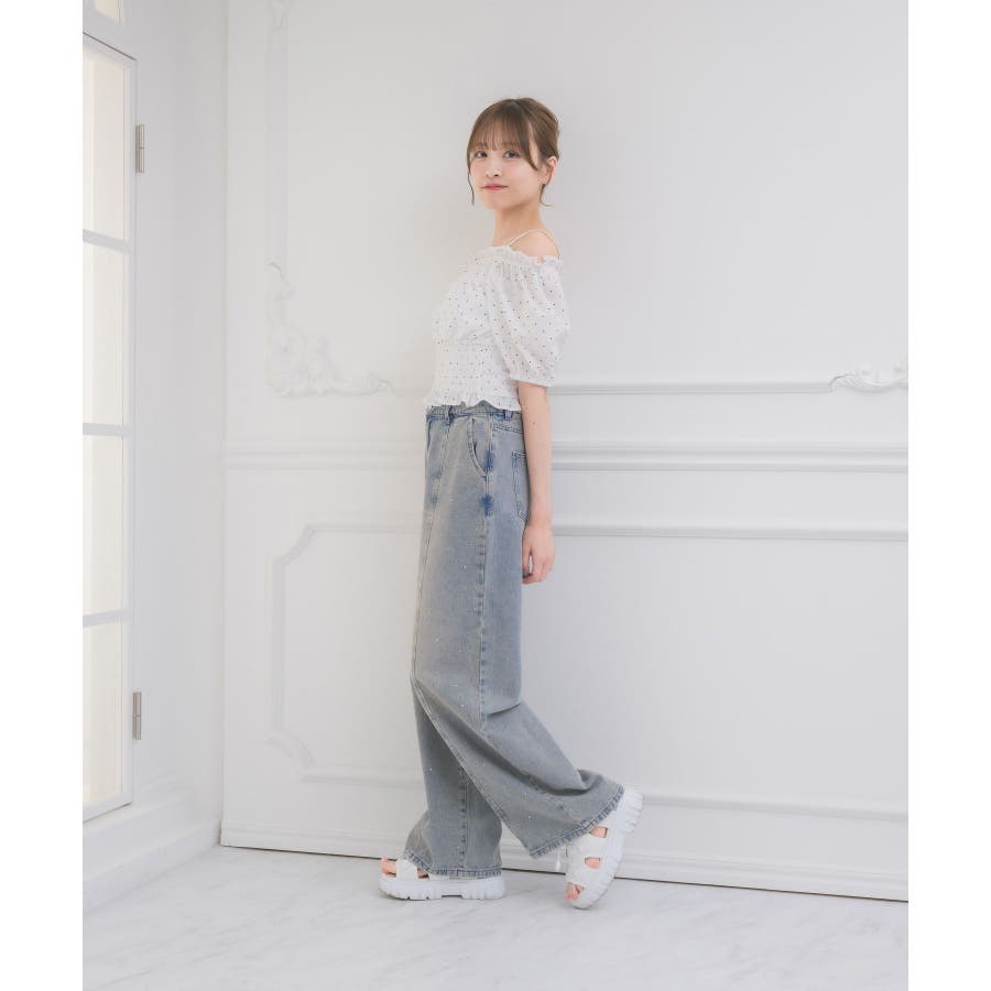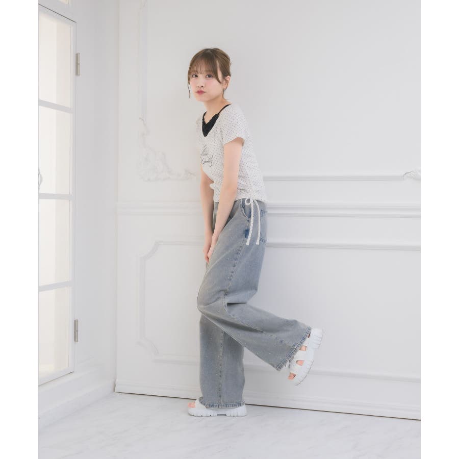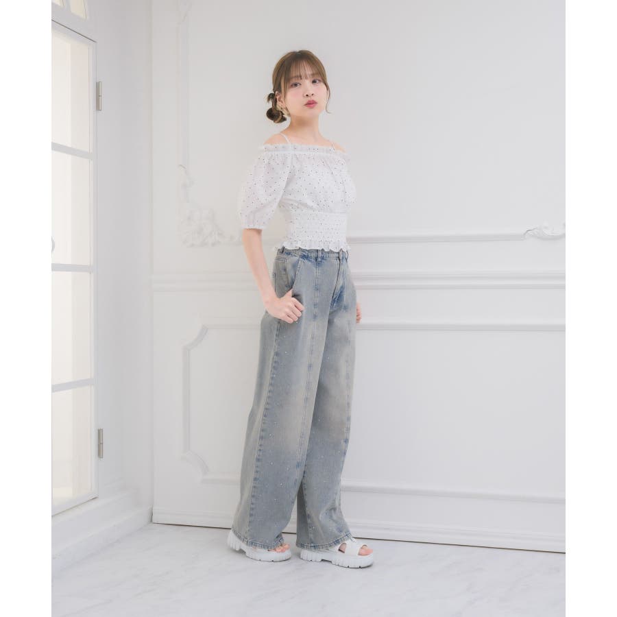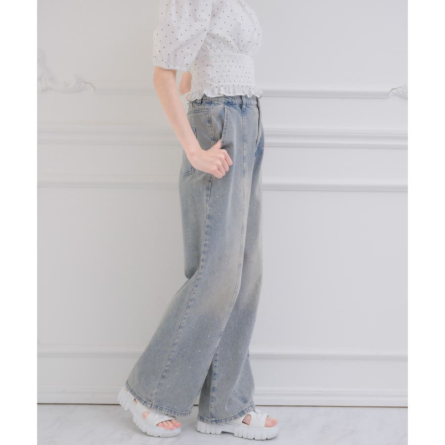 <ビジューデザインがemsらしいワイドなデニムパンツ>▼デザインビジューが散りばめられたemsらしいデニムパンツ。ワイドなシルエットで、ゆるっと着用して頂けます。センター部分にラインが入っているので、脚が長く、綺麗に見えます。加工感があるので、Y2Kコーデにもおすすめ!▼コーディネートトップスを選ばない定番デニムパンツなので、コーデにも取り入れやすい!ハンチング帽やキャップなど小物でスタイリングをもっとオシャレにアレンジするのもおすすめ♪------------------------------生地感:普通伸縮性:なし透け感:なし裏地:なし------------------------------▼ブランド紹介ems excite (エムズエキサイト)“more fun more cute”今をもっと楽しくもっと可愛くいたい女の子に向けたgirly cuteなブランド#デニムパンツ #デニムコーデ#ビジューデニム #デニム #ビジュー#ストレートデニム#ワイドパンツ▼注意事項※撮影環境やモニター環境によって実際の商品とお色味が多少異なってみえる場合がございます。品番:EA561032N001 / 品名:ビジューデニムPT