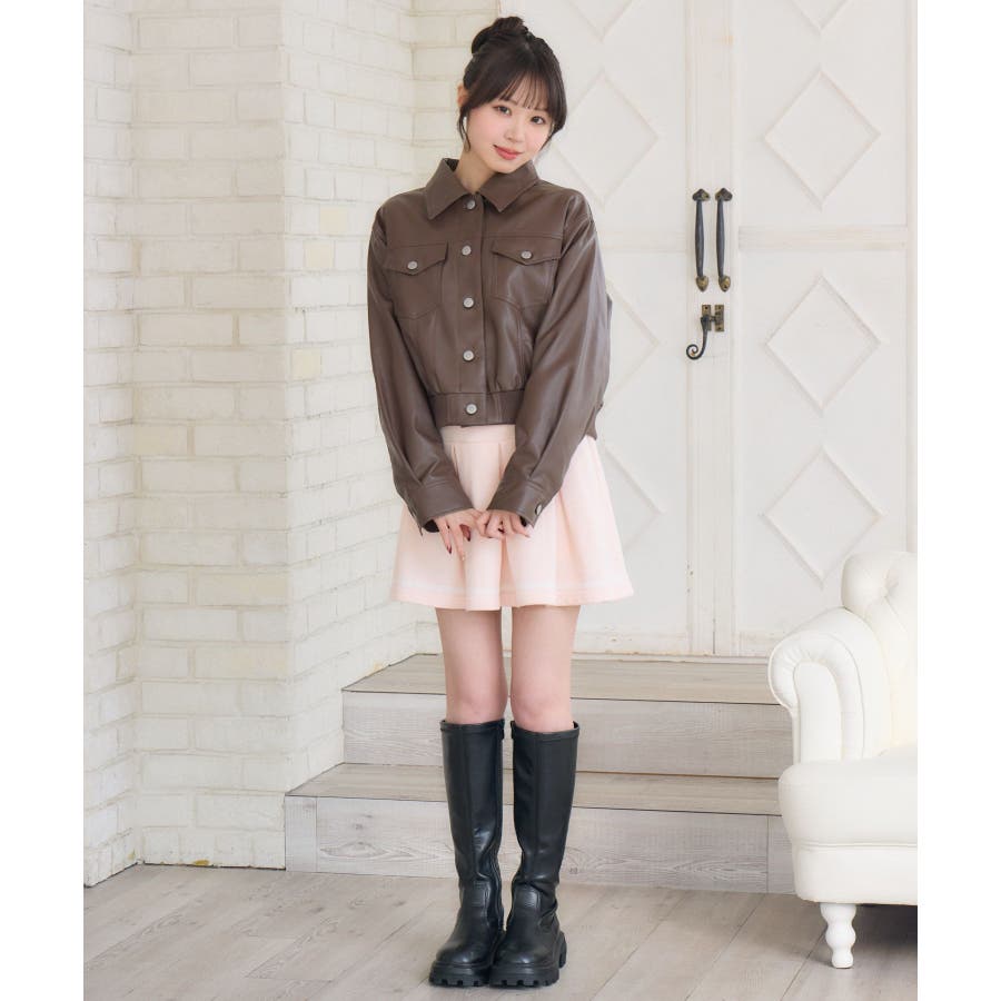 〈春らしく着こなせるデザインレザーブルゾン〉▼デザインフェイクレザーのブルゾンは秋から大人気のアイテム。今回は、春らしい軽い素材にブラッシュアップし、これから大活躍間違いなしの1枚に。ボタンには、emsのブランド名が刻印されていて、価値観あるデザインに。後ろ姿はハートモチーフのパッチがついているので、バックスタイルもおしゃれにまとまります。▼コーディネートボトムは甘めなフリルスカート、ティアードスカートと合わせるのがemsスタイル!パッチが見えるように、お団子ヘアやポニーテールにヘアアレンジするのもおすすめです。------------------------------生地感:普通伸縮性:なし透け感:なし裏地:ある------------------------------▼ブランド紹介ems excite (エムズエキサイト)“more fun more cute”今をもっと楽しくもっと可愛くいたい女の子に向けたgirly cuteなブランド#レザー #フェイクレザー #韓国コーデ #パッチデザイン #春アウター▼注意事項※撮影環境やモニター環境によって実際の商品とお色味が 多少異なってみえる場合がございます。品番:EA580021C001 / 品名:パッチ付FレザーBZ