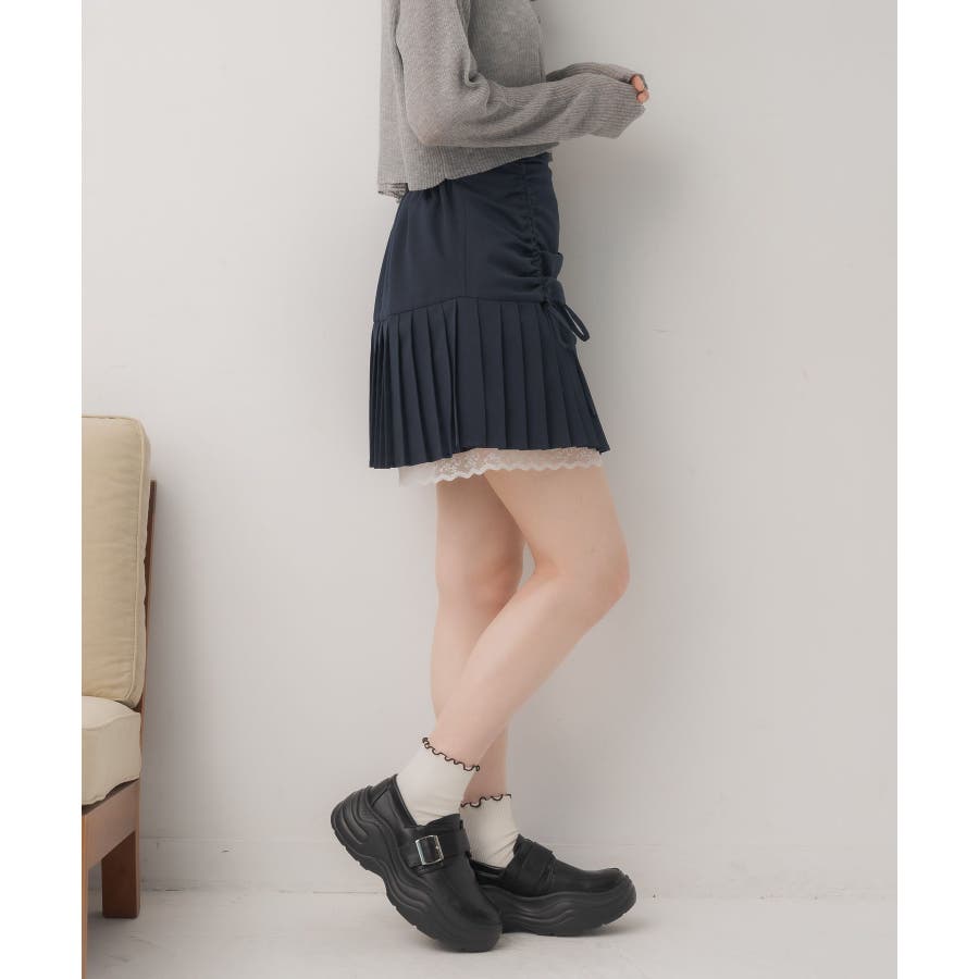〈レースやシャーリングでデザインたっぷりなプリーツミニスカート〉▼デザインems exciteでは大人気のプリーツスカート!フロント部分にはシャーリングデザインが施されている新しいアイテム!プリーツは細身で、華奢見え間違いなし◎裾からレースがちらっと見えるのがガーリー好きさんにはたまらない♪▼コーディネート甘めなデザインを活かして、ブラウス合わせがおすすめ!冬はニットと合わせて裾からプリーツが見えるのもあざと可愛い!------------------------------生地感:普通伸縮性:なし(ウエスト部分はある)透け感:なし裏地:ある------------------------------▼ブランド紹介ems excite (エムズエキサイト)“more fun more cute”今をもっと楽しくもっと可愛くいたい女の子に向けたgirly cuteなブランド#プリーツスカート #スカート #ミニスカート #レース #秋コーデ #スクールコーデ #細プリーツ #シャーリング▼注意事項※撮影環境やモニター環境によって実際の商品とお色味が 多少異なってみえる場合がございます。品番:EA680031G001 / 品名:シャーリングプリーツミニSK
