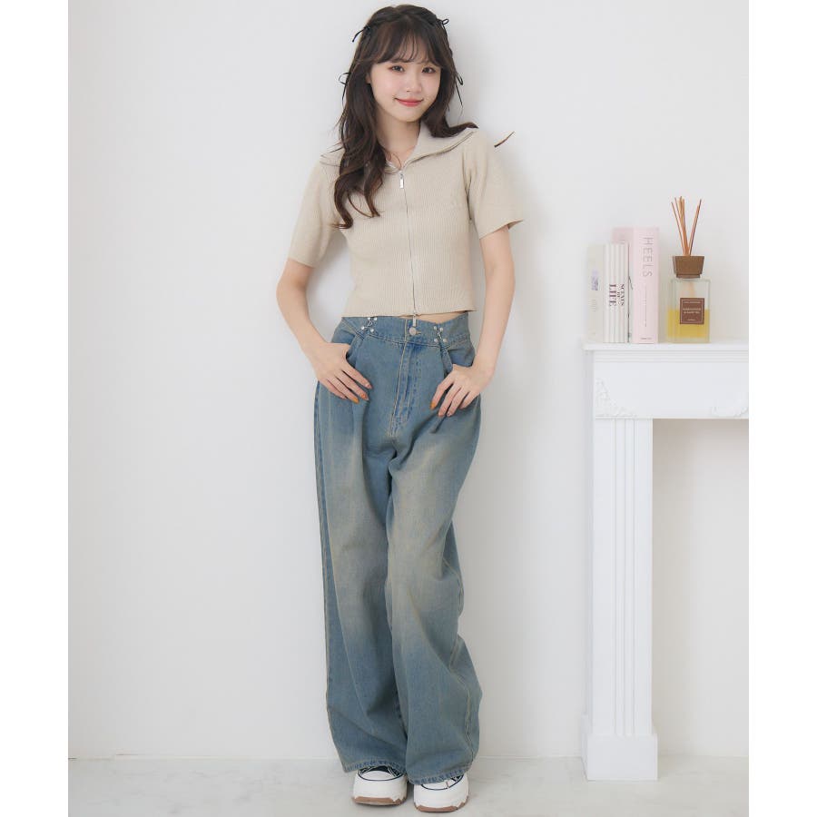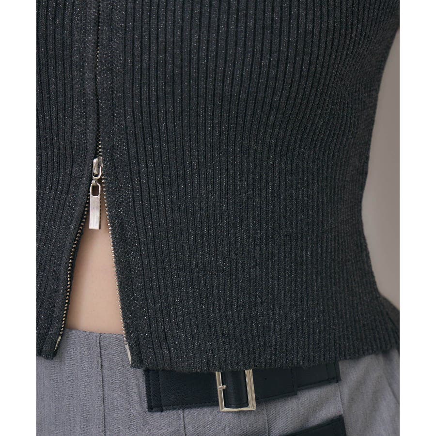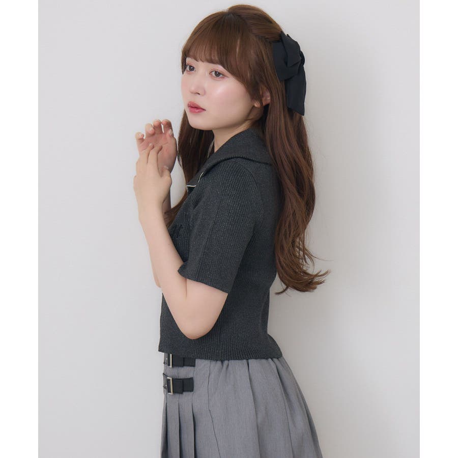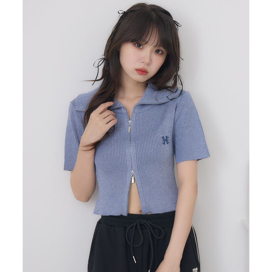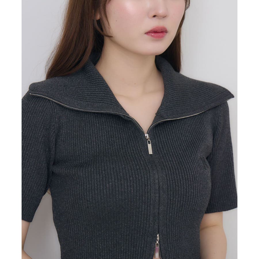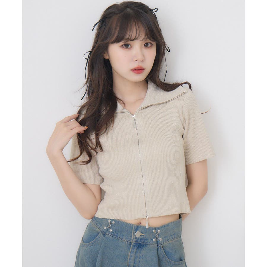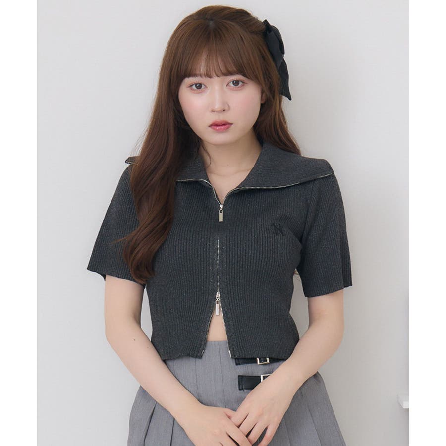 <ラメがMIXされたカジュアルなニットトップス>▼デザイン韓国カジュアルなスタイリングにぜひ取り入れて欲しいダブルZIPアイテム。ラメがMIXされたキラキラと光沢感のあるデザインで、リブなので伸縮性も◎胸元には同系色の糸で刺繍が施されています。襟は大きく、存在感のある1枚です。▼コーディネートプリーツスカートからデニムアイテムまでボトムの選択肢は無限大◎スウェットパンツ合わせでかっこいいスタイリングもおすすめ!------------------------------生地感:普通伸縮性:ある透け感:なし裏地:なし------------------------------▼ブランド紹介ems excite (エムズエキサイト)“more fun more cute”今をもっと楽しくもっと可愛くいたい女の子に向けたgirly cuteなブランド#ニット#韓国カジュアル#ZIP#ダブルジップ#韓国コーデ▼注意事項※撮影環境やモニター環境によって実際の商品とお色味が 多少異なってみえる場合がございます。品番:EE456912C001 / 品名:WZIPリブNT