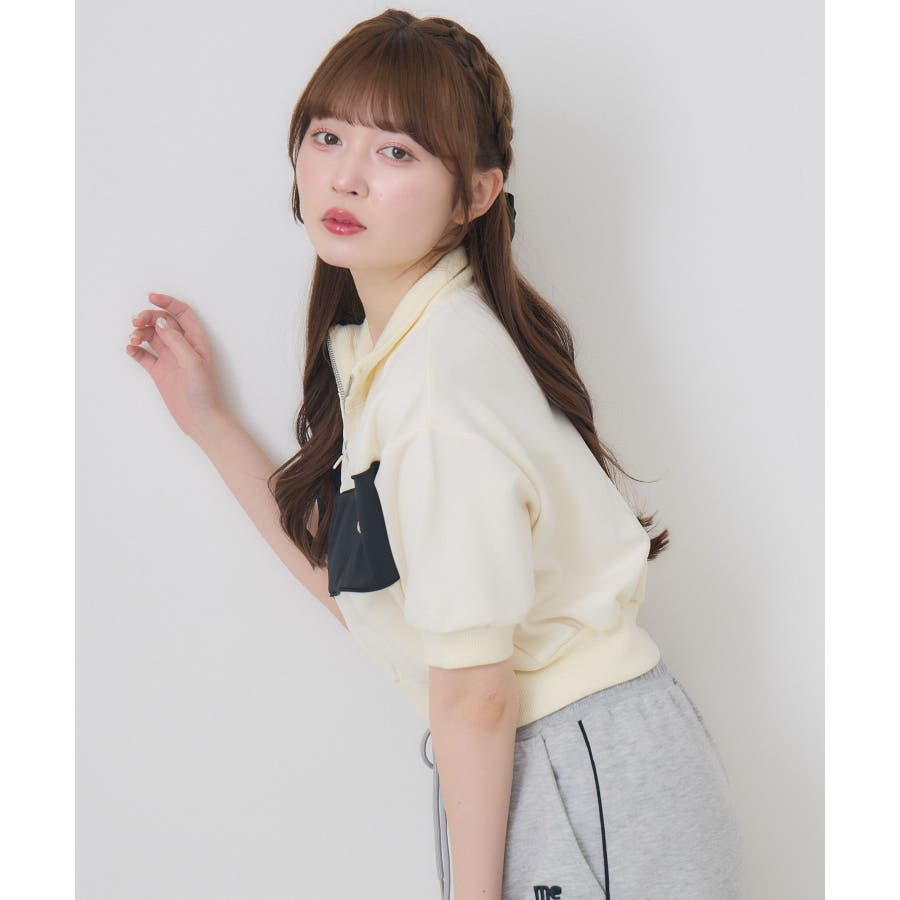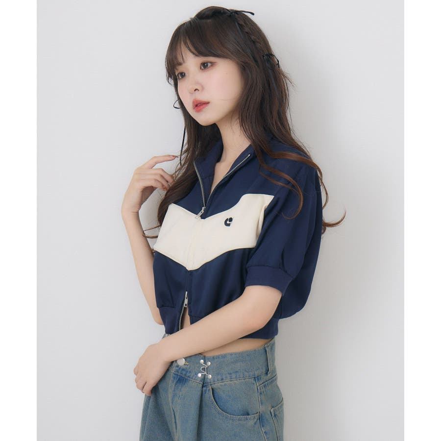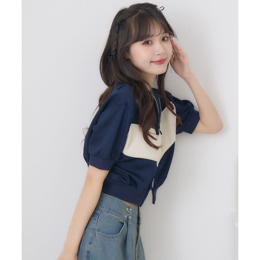 上も下もハーフジッパー?になっててかわいい、キュってなってるからウエスト細く見えてスタイルもれてみえる!