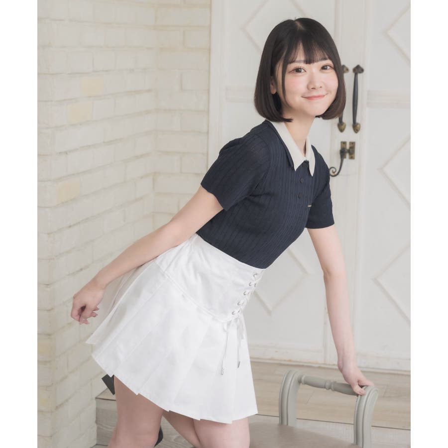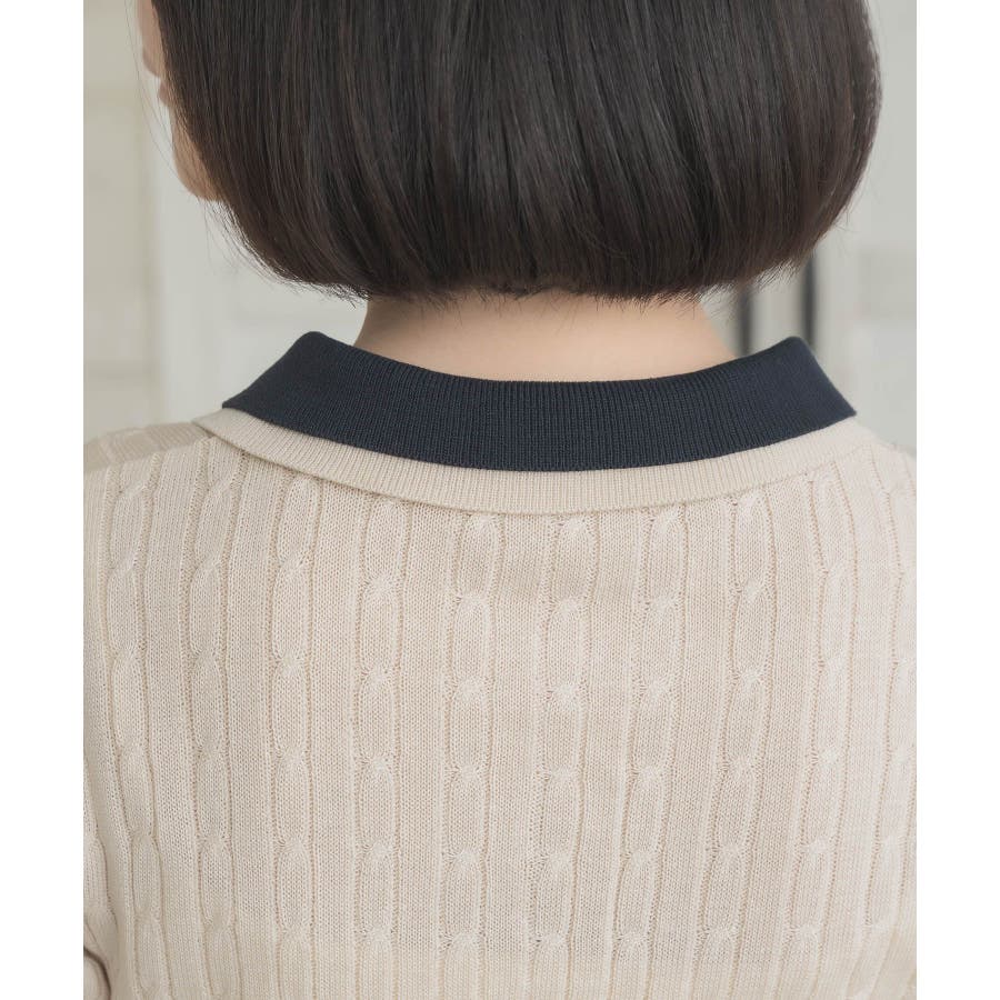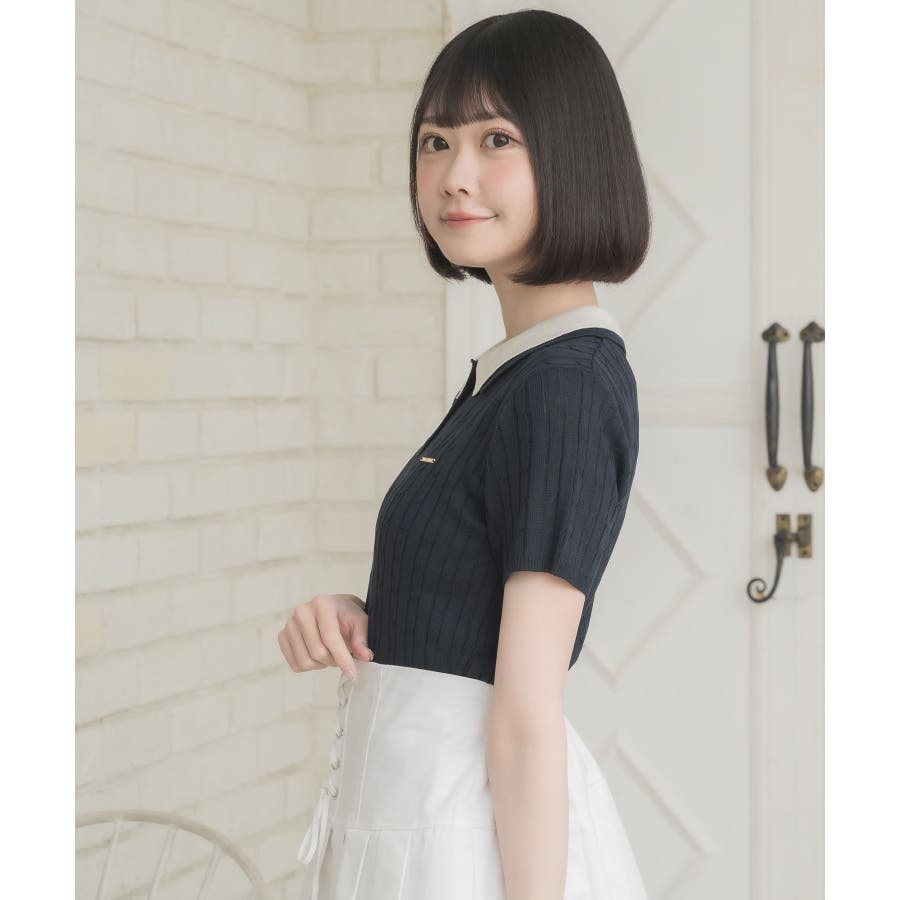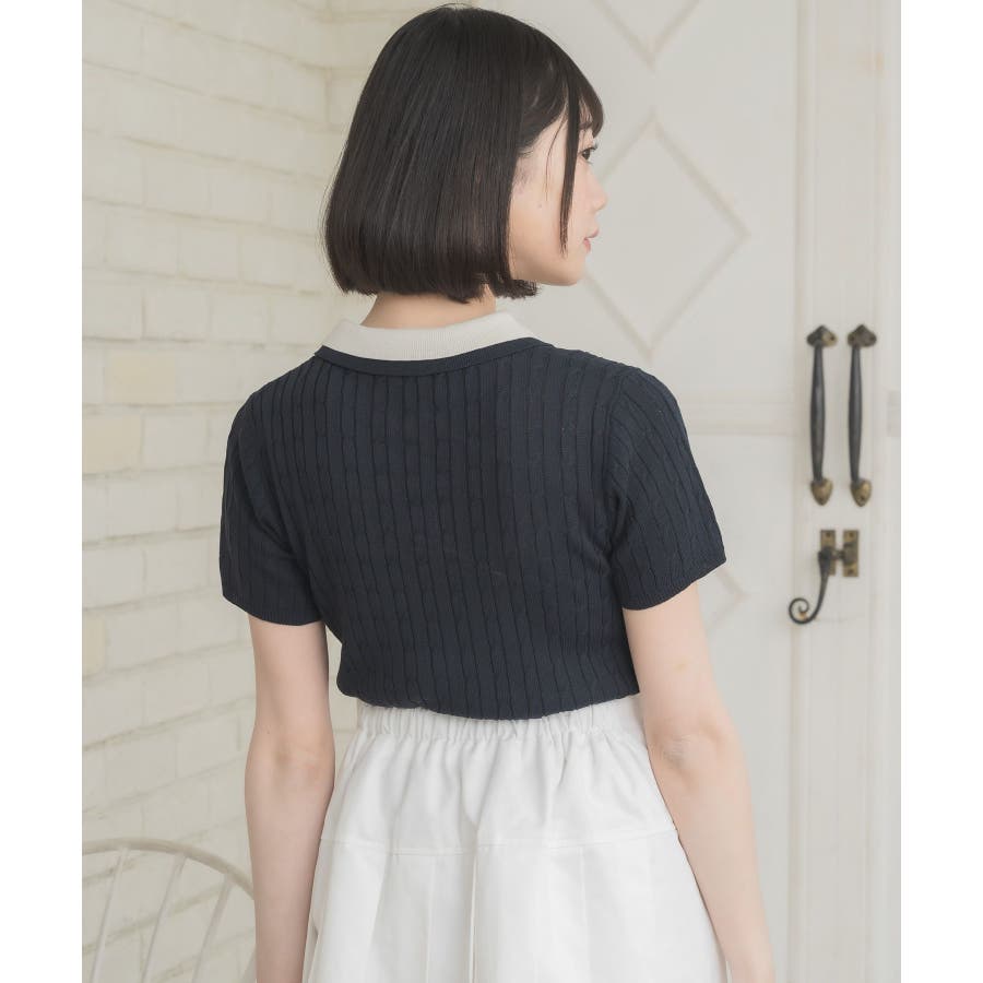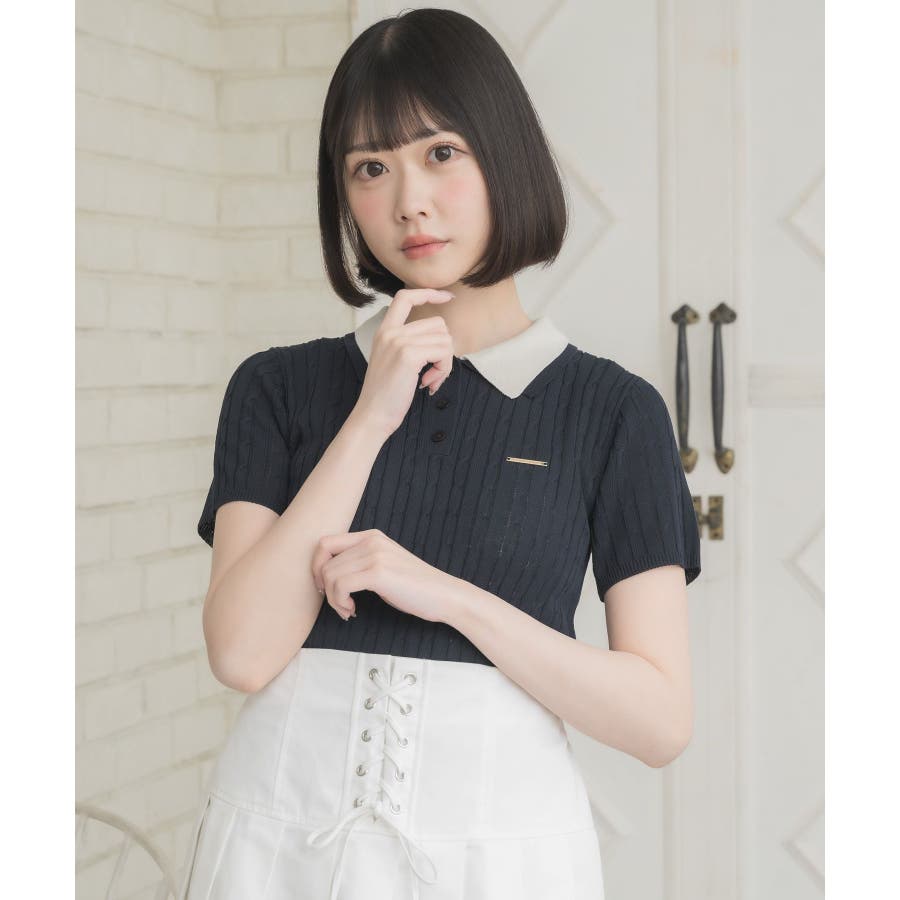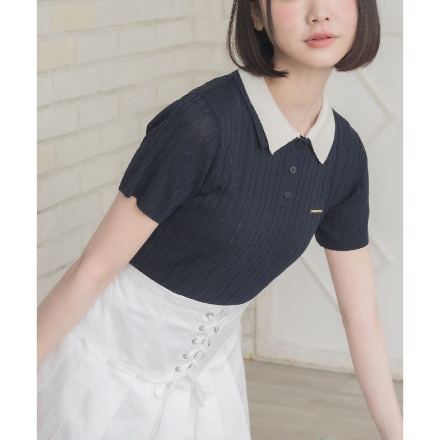 〈W襟が今年っぽい!デザインサマーニット〉▼デザインW襟でレイヤードされたケーブルニット。夏らしい軽い糸で編まれているため、夏でも着やすい素材が嬉しい♪襟は2色のバイカラーで目を惹くデザインです。胸元にはプレートが施されていて、emsらしいワンポイントです。▼コーディネートミニ丈ボトムでガーリーにスタイリングがおすすめ!スウェットパンツ合わせであえてカジュアルに着こなすのも可愛いです♪------------------------------生地感:普通伸縮性:ある透け感:なし裏地:なし------------------------------▼ブランド紹介ems excite (エムズエキサイト)“more fun more cute”今をもっと楽しくもっと可愛くいたい女の子に向けたgirly cuteなブランド#ニット #ニットアイテム #夏ニット #ダブル襟 #プレート #バイカラー #ポロニット▼注意事項※撮影環境やモニター環境によって実際の商品とお色味が 多少異なってみえる場合がございます。品番:EE557112B001 / 品名:2枚襟ケーブルNTPO