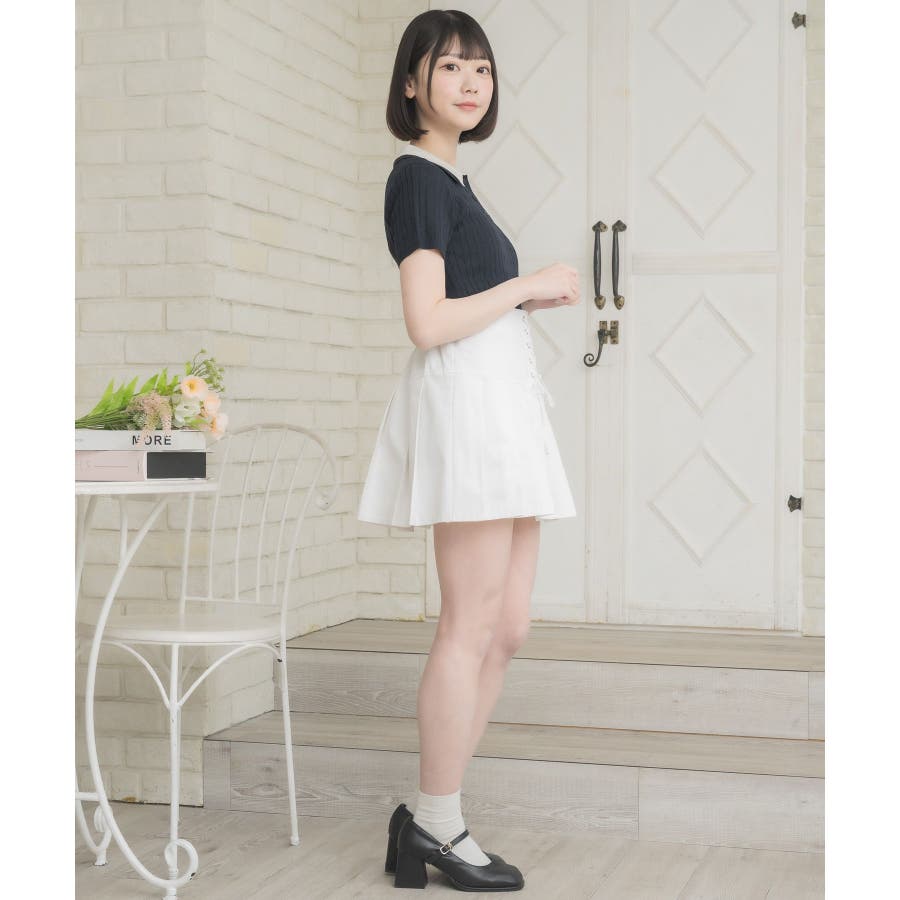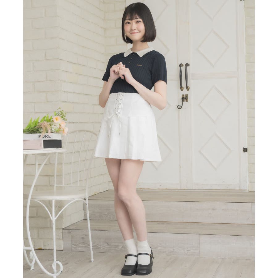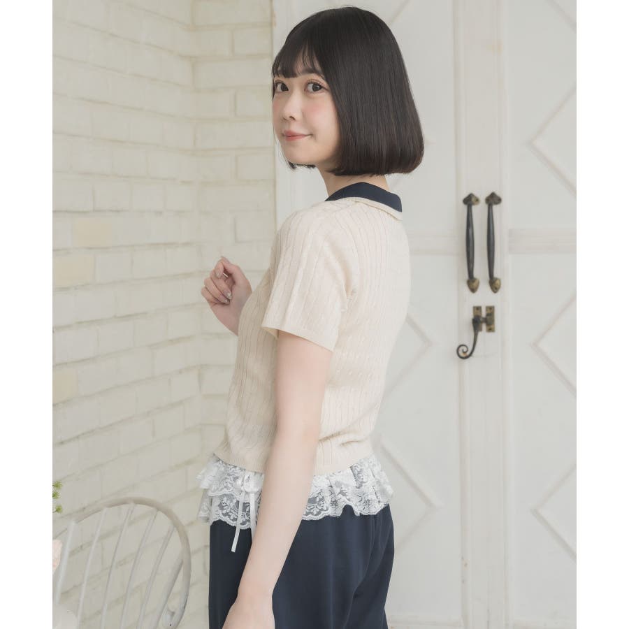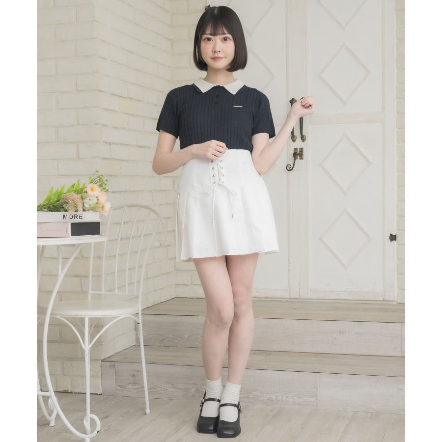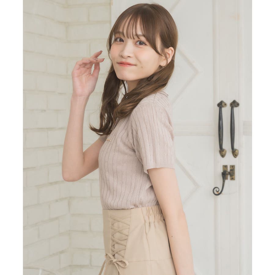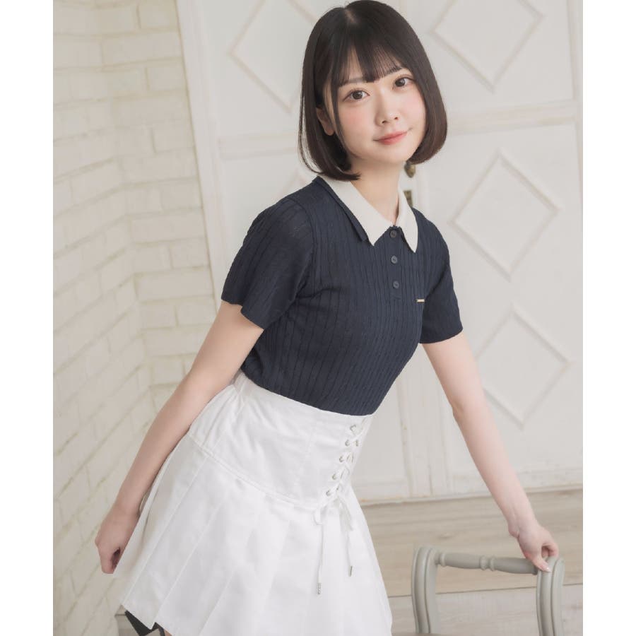 〈W襟が今年っぽい!デザインサマーニット〉▼デザインW襟でレイヤードされたケーブルニット。夏らしい軽い糸で編まれているため、夏でも着やすい素材が嬉しい♪襟は2色のバイカラーで目を惹くデザインです。胸元にはプレートが施されていて、emsらしいワンポイントです。▼コーディネートミニ丈ボトムでガーリーにスタイリングがおすすめ!スウェットパンツ合わせであえてカジュアルに着こなすのも可愛いです♪------------------------------生地感:普通伸縮性:ある透け感:なし裏地:なし------------------------------▼ブランド紹介ems excite (エムズエキサイト)“more fun more cute”今をもっと楽しくもっと可愛くいたい女の子に向けたgirly cuteなブランド#ニット #ニットアイテム #夏ニット #ダブル襟 #プレート #バイカラー #ポロニット▼注意事項※撮影環境やモニター環境によって実際の商品とお色味が 多少異なってみえる場合がございます。品番:EE557112B001 / 品名:2枚襟ケーブルNTPO