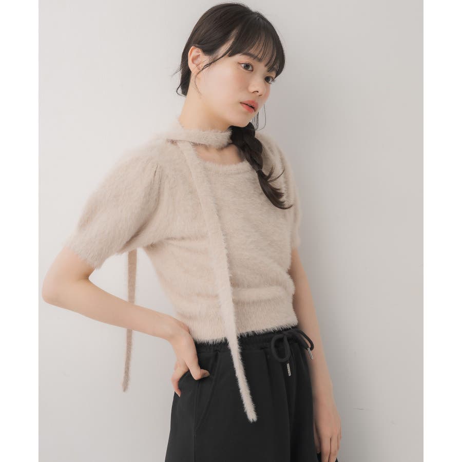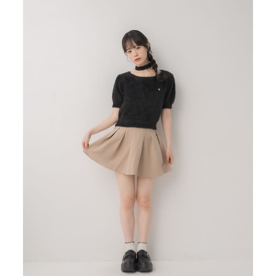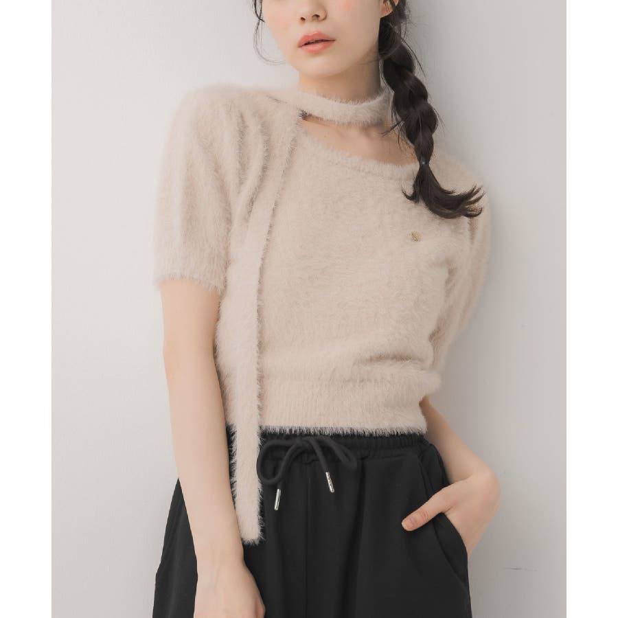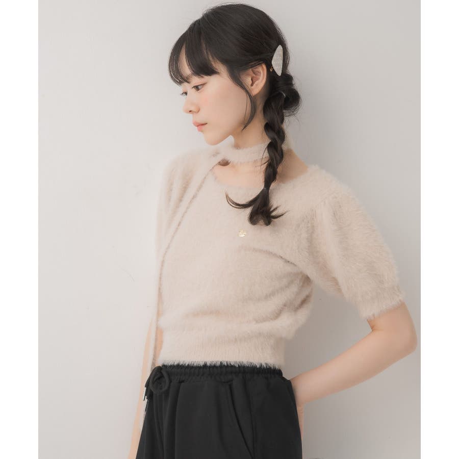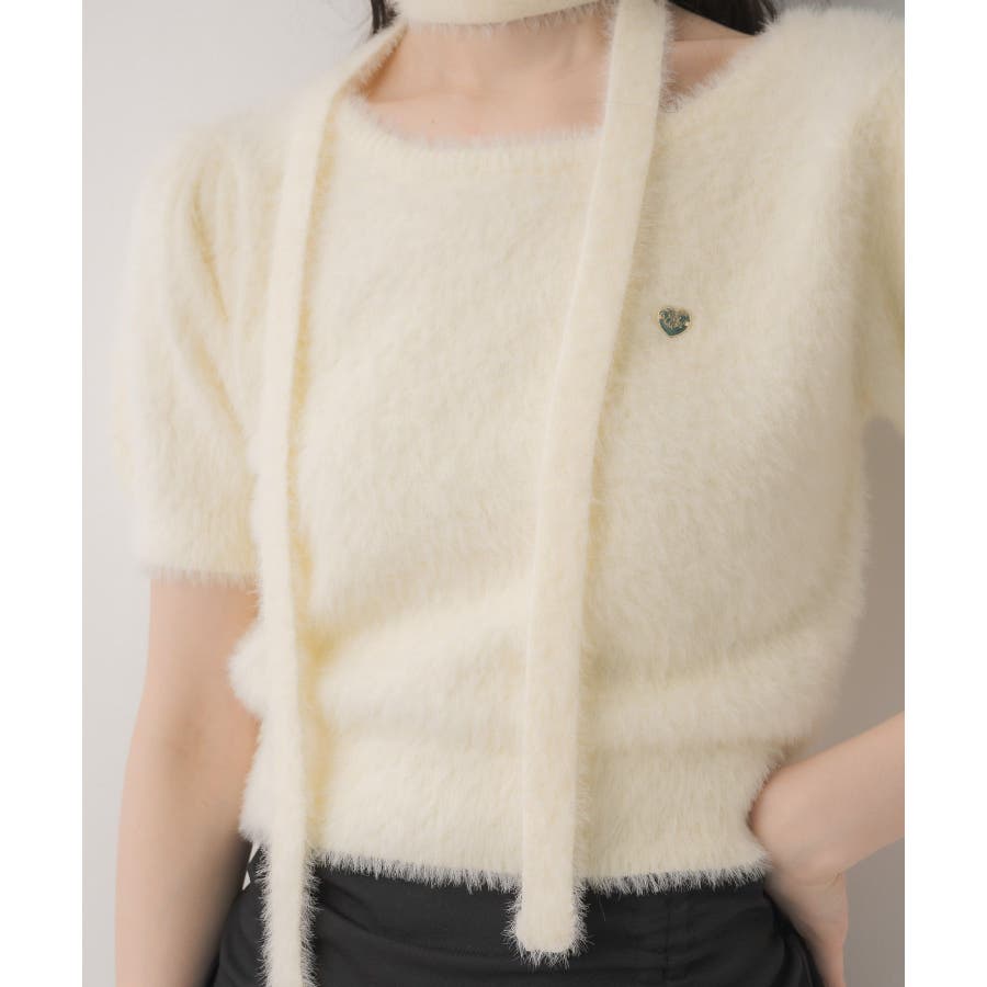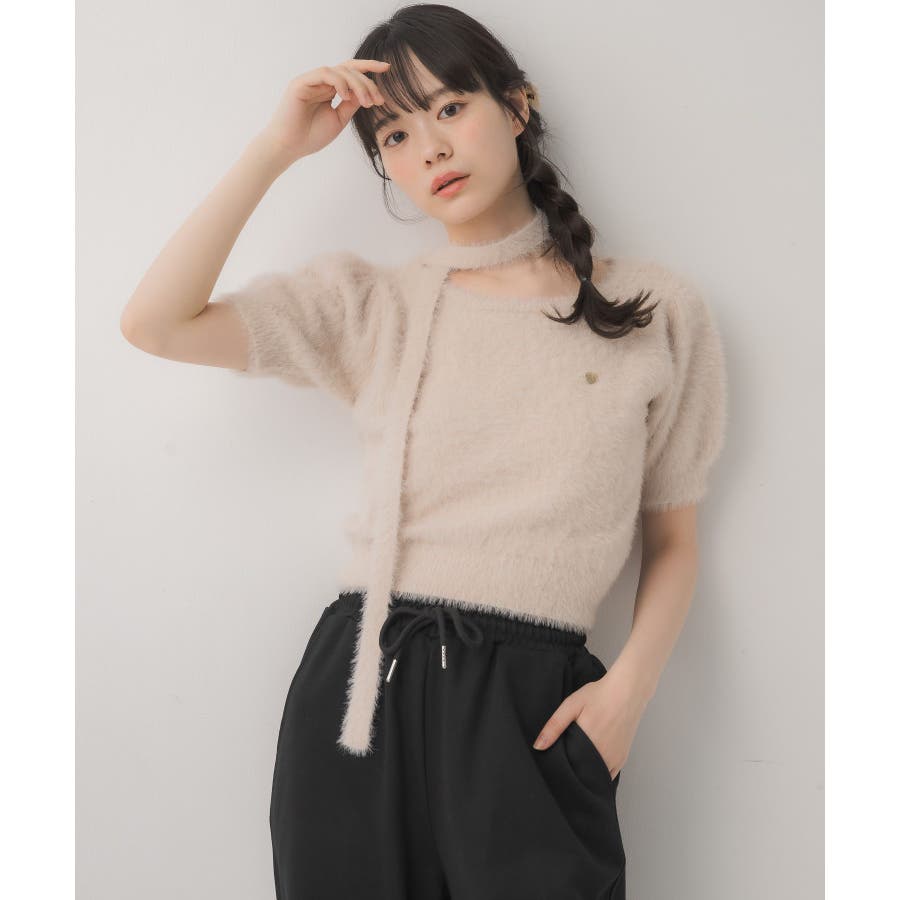<モコモコ素材が癖になる秋先取りの半袖ニット>▼デザイン昨年も大人気をいただいたシャギーニットプルオーバー!同素材のタイがセットになっているので、トレンド感あるスタイルに◎首周りは大きく空いていて、首が長く見える効果も期待できます♪胸元のプレートがemsらしいワンポイント。▼コーディネートボトムは外にフレアスカートで合わせるのがオススメあえてスウェットパンツでカジュアルダウンするのもおしゃれ感アップ------------------------------生地感:普通伸縮性:ある透け感:なし裏地:なし------------------------------▼ブランド紹介ems excite (エムズエキサイト)“more fun more cute”今をもっと楽しくもっと可愛くいたい女の子に向けたgirly cuteなブランド#ニット #シャギーニット #モケモケアイテム #秋コーデ #タイ #チョーカーセット▼注意事項※撮影環境やモニター環境によって実際の商品とお色味が多少異なってみえる場合がございます。品番:EE557112G004 / 品名:タイ付き半袖シャギーNTPO