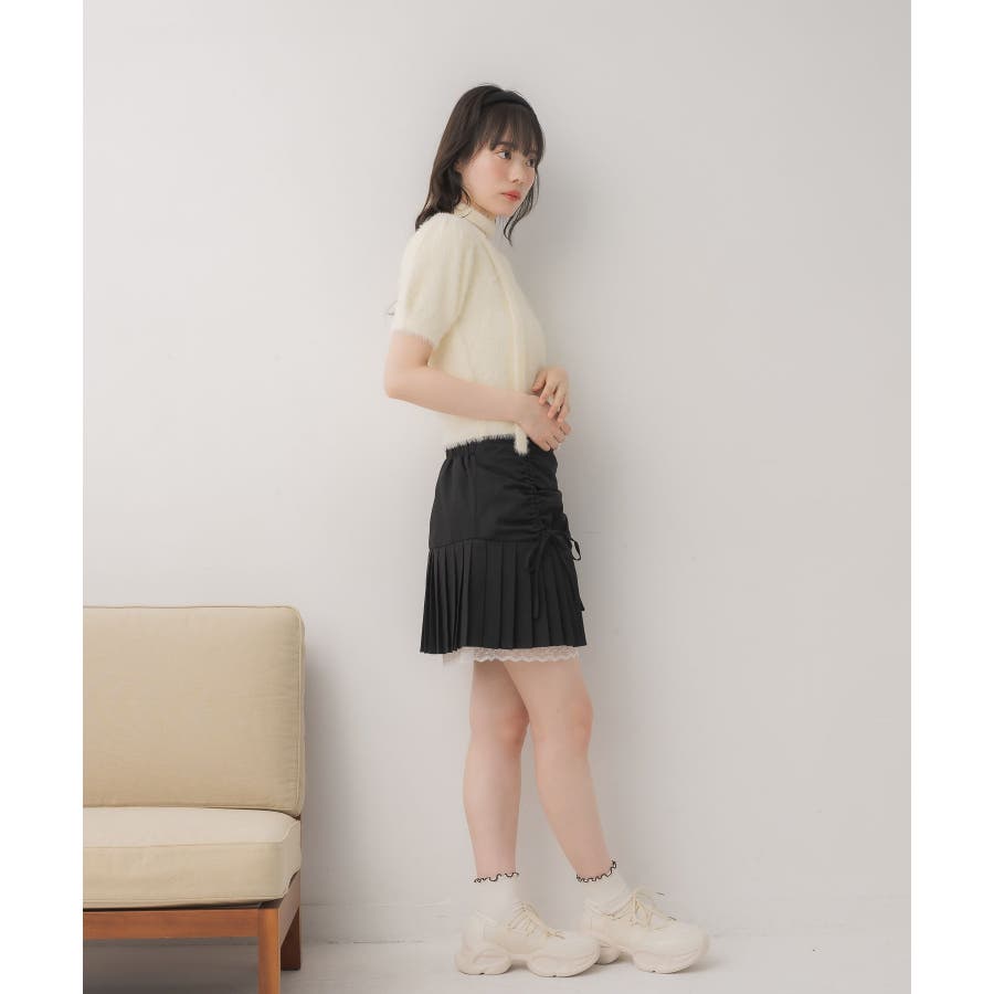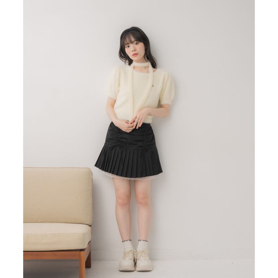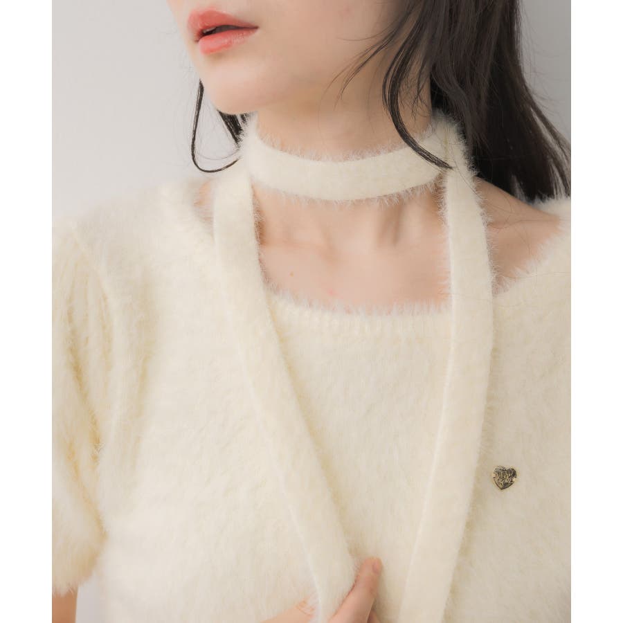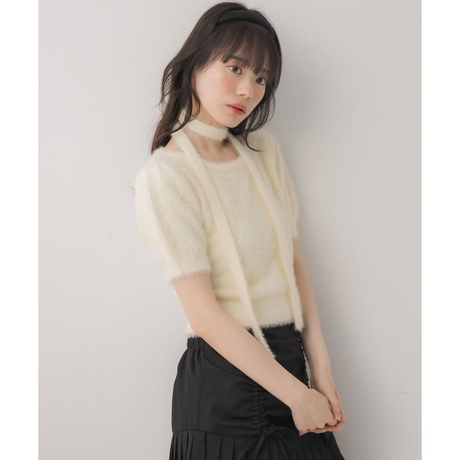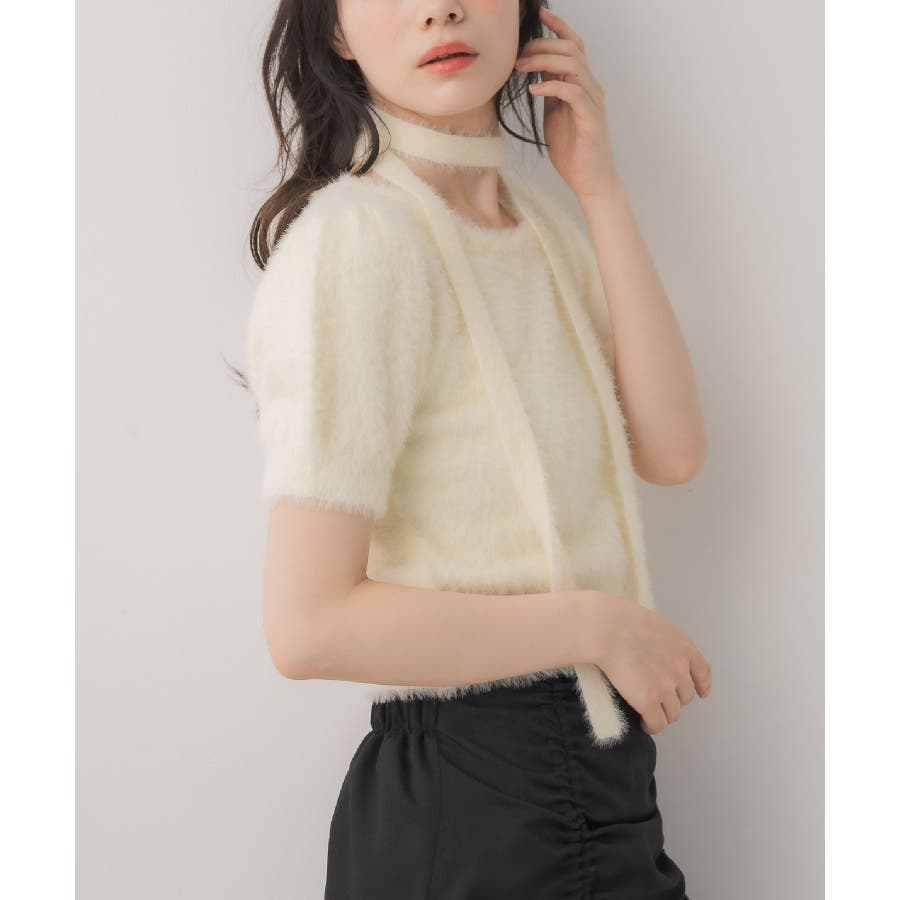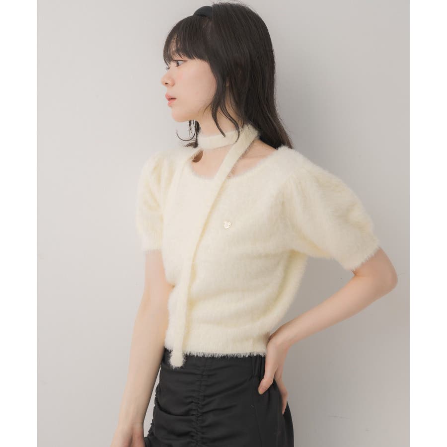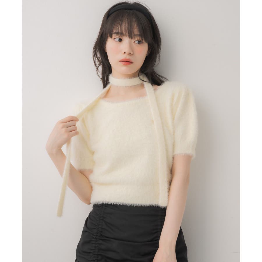 <モコモコ素材が癖になる秋先取りの半袖ニット>▼デザイン昨年も大人気をいただいたシャギーニットプルオーバー!同素材のタイがセットになっているので、トレンド感あるスタイルに◎首周りは大きく空いていて、首が長く見える効果も期待できます♪胸元のプレートがemsらしいワンポイント。▼コーディネートボトムは外にフレアスカートで合わせるのがオススメあえてスウェットパンツでカジュアルダウンするのもおしゃれ感アップ------------------------------生地感:普通伸縮性:ある透け感:なし裏地:なし------------------------------▼ブランド紹介ems excite (エムズエキサイト)“more fun more cute”今をもっと楽しくもっと可愛くいたい女の子に向けたgirly cuteなブランド#ニット #シャギーニット #モケモケアイテム #秋コーデ #タイ #チョーカーセット▼注意事項※撮影環境やモニター環境によって実際の商品とお色味が多少異なってみえる場合がございます。品番:EE557112G004 / 品名:タイ付き半袖シャギーNTPO