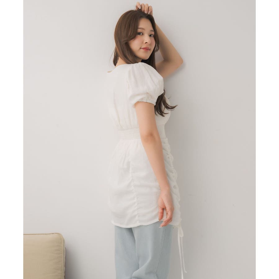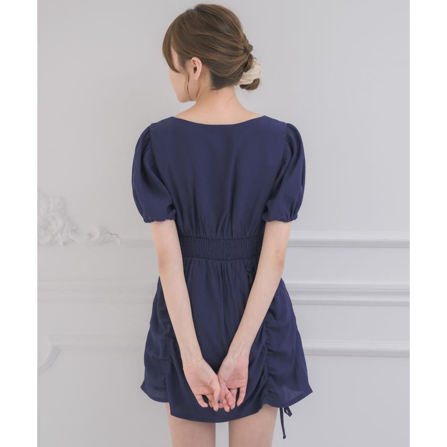 <着丈の調節もできるミニ丈チュニックワンピース>▼デザイン今年大人気のチュニック丈のワンピース。フロント部分はドロストデザインが施されていて、着丈の調節も可能です◎胸元はスクエアネックに開いていて、首回りがすっきりした印象に♪▼コーディネートボトムにスウェットパンツやデニムパンツを着用して上からレイヤードするのもおすすめ♪1枚で着る場合は、ボトムにショートパンツを合わせると安心です◎------------------------------生地感:普通伸縮性:なし透け感:なし裏地:あり------------------------------▼ブランド紹介ems excite (エムズエキサイト)“more fun more cute”今をもっと楽しくもっと可愛くいたい女の子に向けたgirly cuteなブランド#夏ワンピ #チュニックワンピ #ネイビー #ガーリー #ガーリーワンピ #ミニワンピ #スクエアネック▼注意事項※撮影環境やモニター環境によって実際の商品とお色味が 多少異なってみえる場合がございます。品番:EE580022C001 / 品名:ドロストチュニックOP