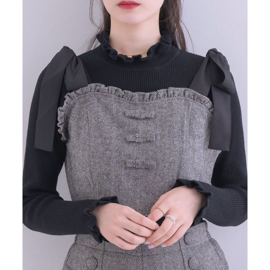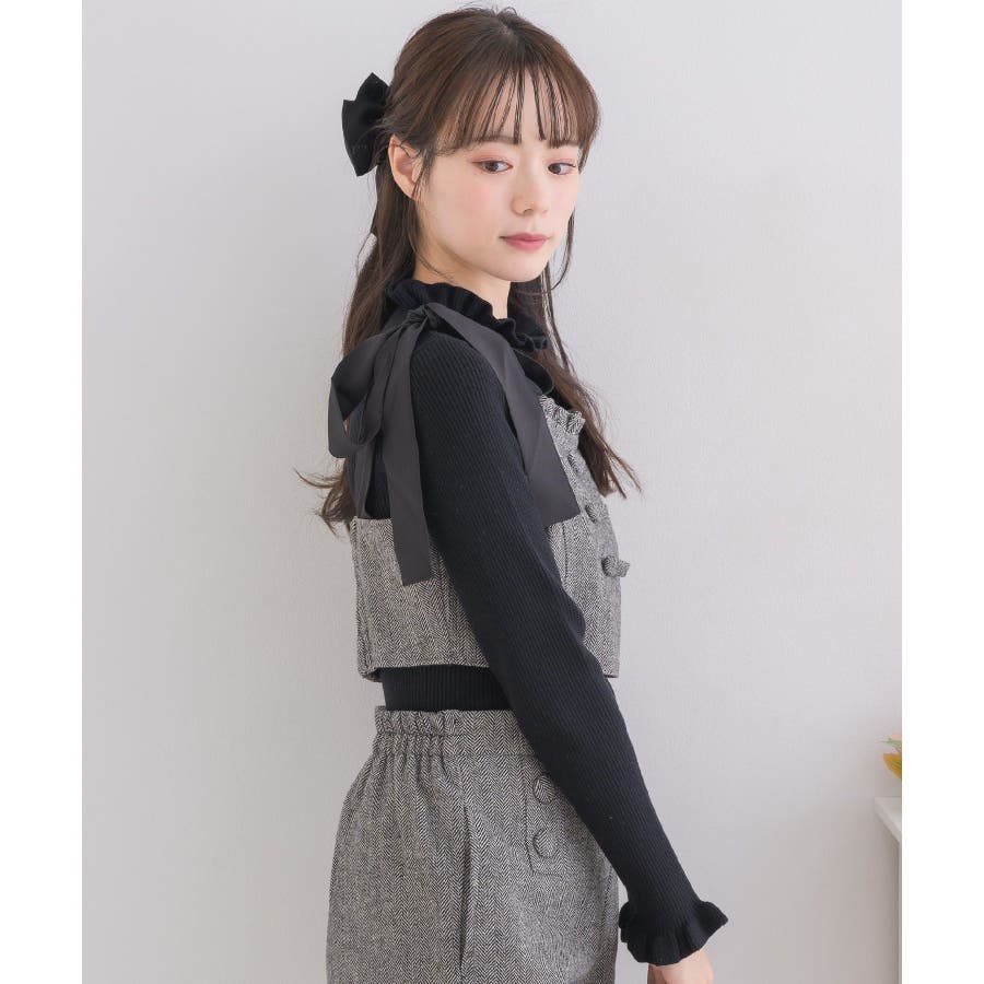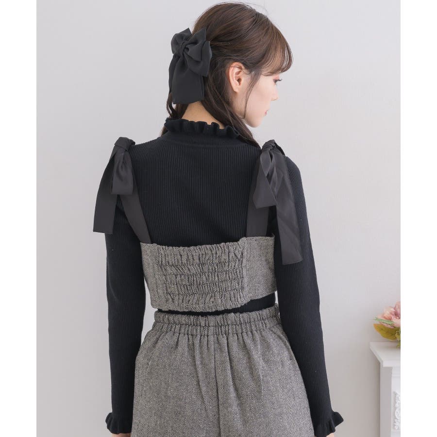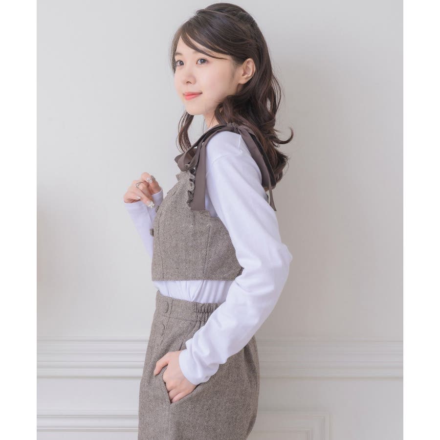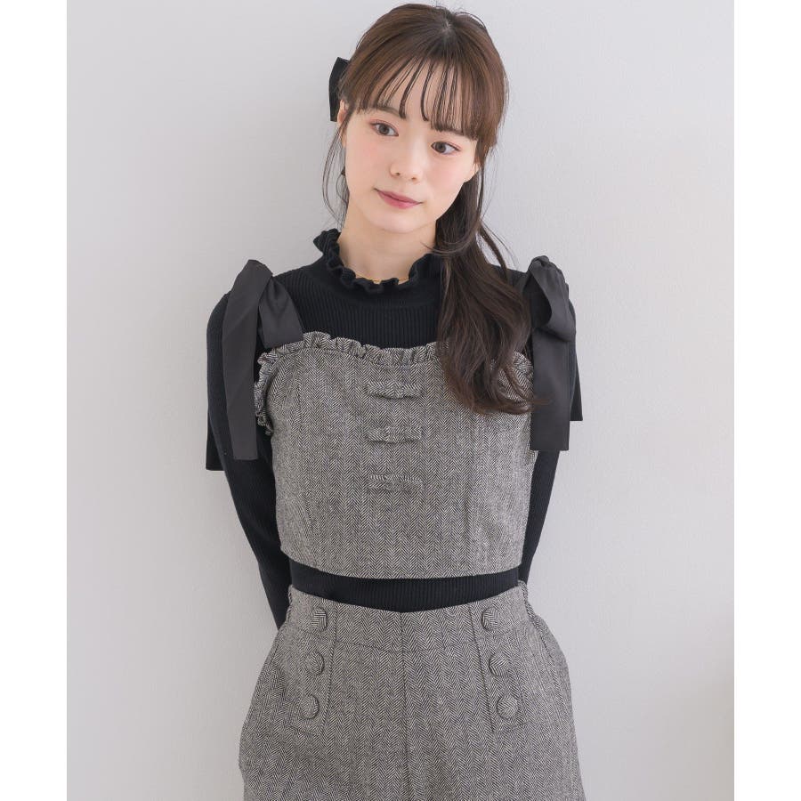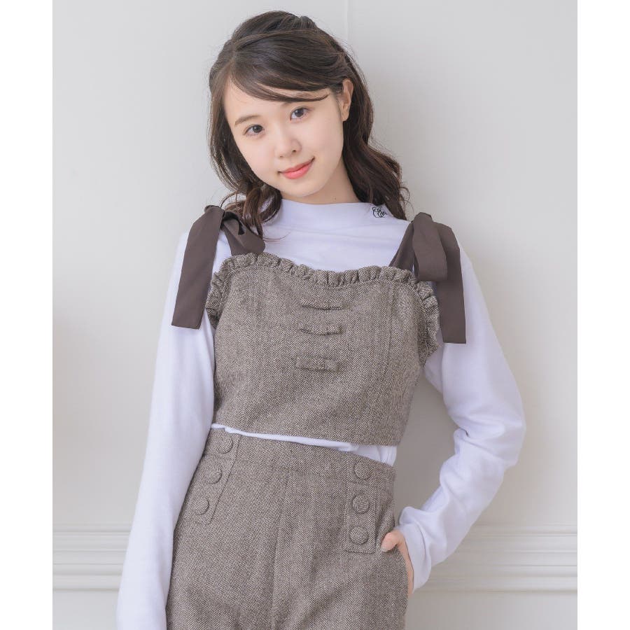 <トレンドの肩リボンデザインで秋を先取り!>▼デザイン今年大人気のビスチェアイテムの新作!肩リボンで着丈を調節することができるので、身長や体系に合ったスタイリングが叶います。胸周りは、フリルで縁取られているので、とってもガーリー!バックスタイルはゴムで、伸縮性もあります◎▼コーディネート高級感溢れるヘリンボーン素材で、秋カラーコーデを楽しめます。ボタン付ヘリンボーンSPTと合わせると、セットアップ見えコーデに♪------------------------------生地感:普通伸縮性:多少あり透け感:なし裏地:ある------------------------------▼ブランド紹介ems excite (エムズエキサイト)“more fun more cute”今をもっと楽しくもっと可愛くいたい女の子に向けたgirly cuteなブランド#ビスチェアイテム #ビスチェ #肩リボン #肩リボンビスチェ #セットアップ可能▼注意事項※撮影環境やモニター環境によって実際の商品とお色味が多少異なってみえる場合がございます。品番:EF337523T007 / 品名:ヘリンボーンリボンビスチェ
