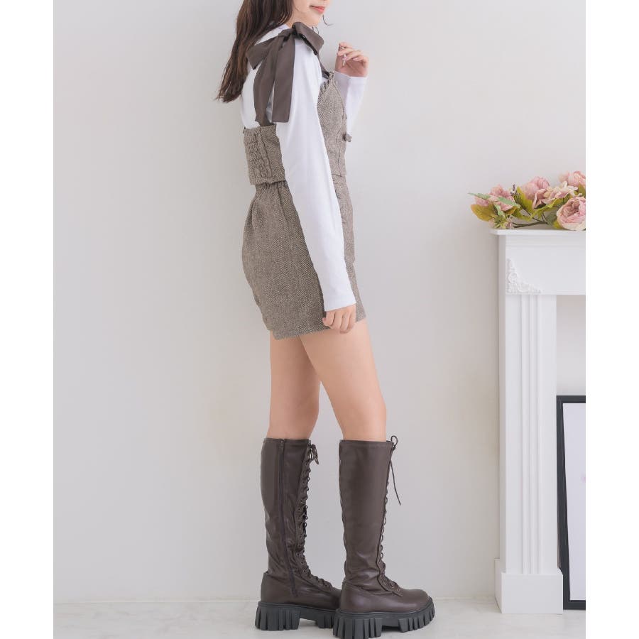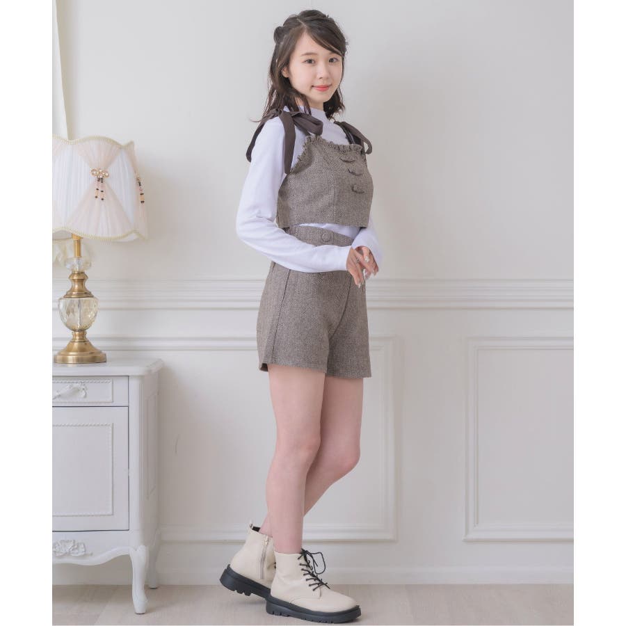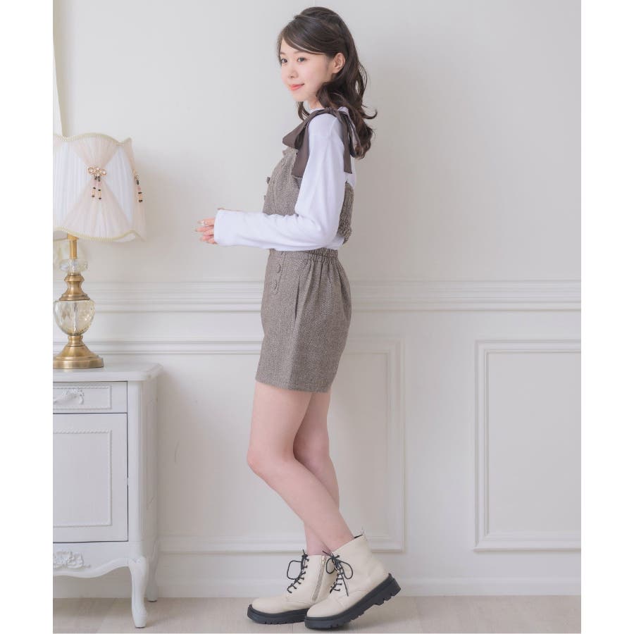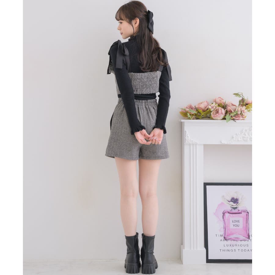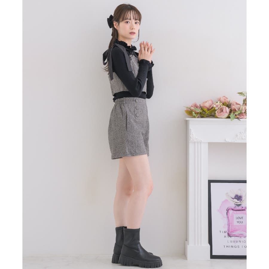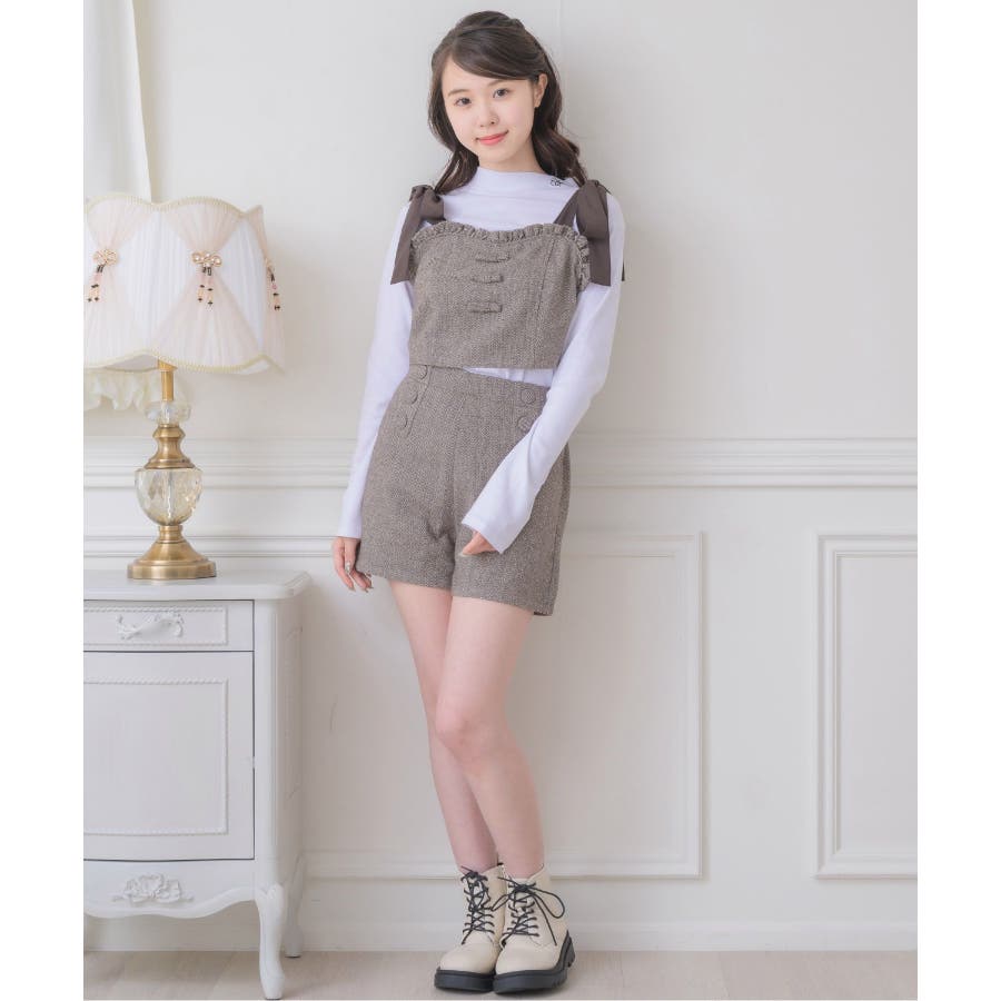 <トレンドの肩リボンデザインで秋を先取り!>▼デザイン今年大人気のビスチェアイテムの新作!肩リボンで着丈を調節することができるので、身長や体系に合ったスタイリングが叶います。胸周りは、フリルで縁取られているので、とってもガーリー!バックスタイルはゴムで、伸縮性もあります◎▼コーディネート高級感溢れるヘリンボーン素材で、秋カラーコーデを楽しめます。ボタン付ヘリンボーンSPTと合わせると、セットアップ見えコーデに♪------------------------------生地感:普通伸縮性:多少あり透け感:なし裏地:ある------------------------------▼ブランド紹介ems excite (エムズエキサイト)“more fun more cute”今をもっと楽しくもっと可愛くいたい女の子に向けたgirly cuteなブランド#ビスチェアイテム #ビスチェ #肩リボン #肩リボンビスチェ #セットアップ可能▼注意事項※撮影環境やモニター環境によって実際の商品とお色味が多少異なってみえる場合がございます。品番:EF337523T007 / 品名:ヘリンボーンリボンビスチェ
