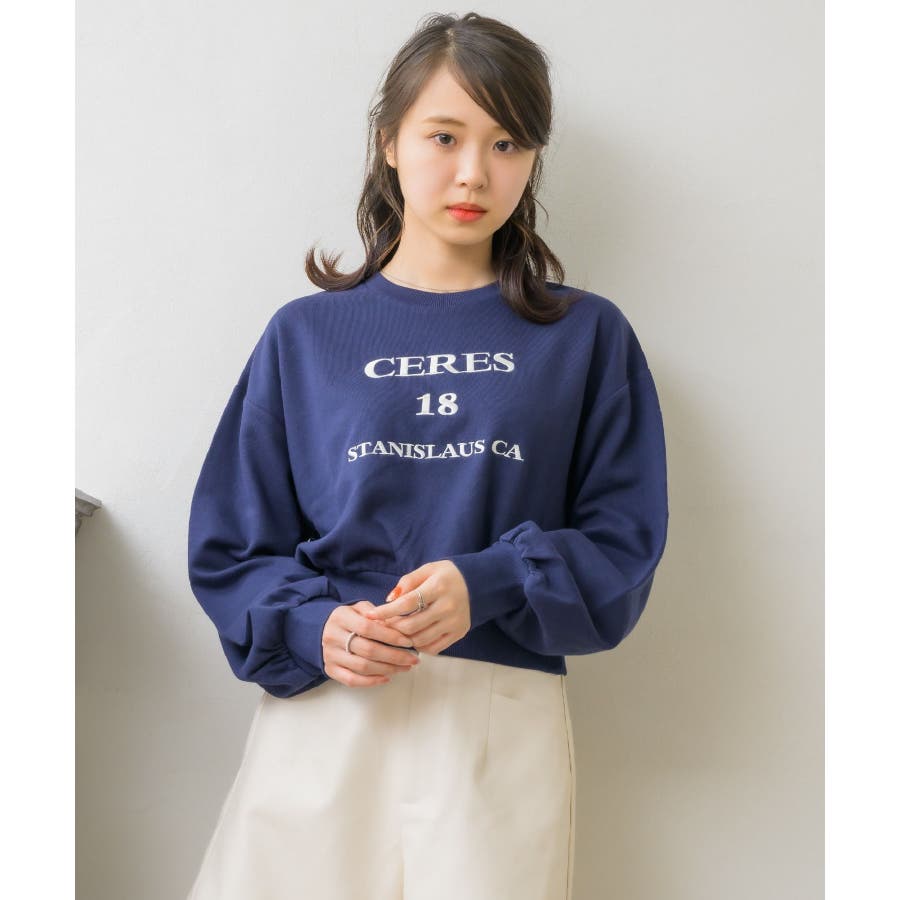 ショート刺繍トレーナー 【Emsexcite】トレーナー スウェット