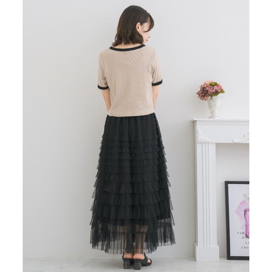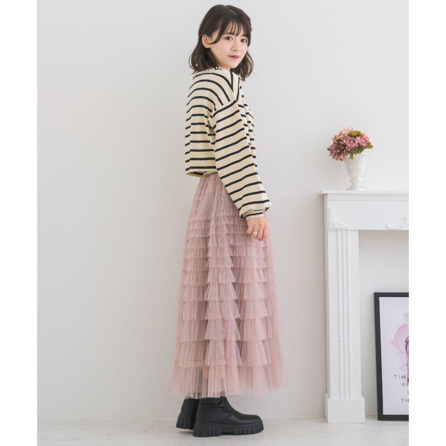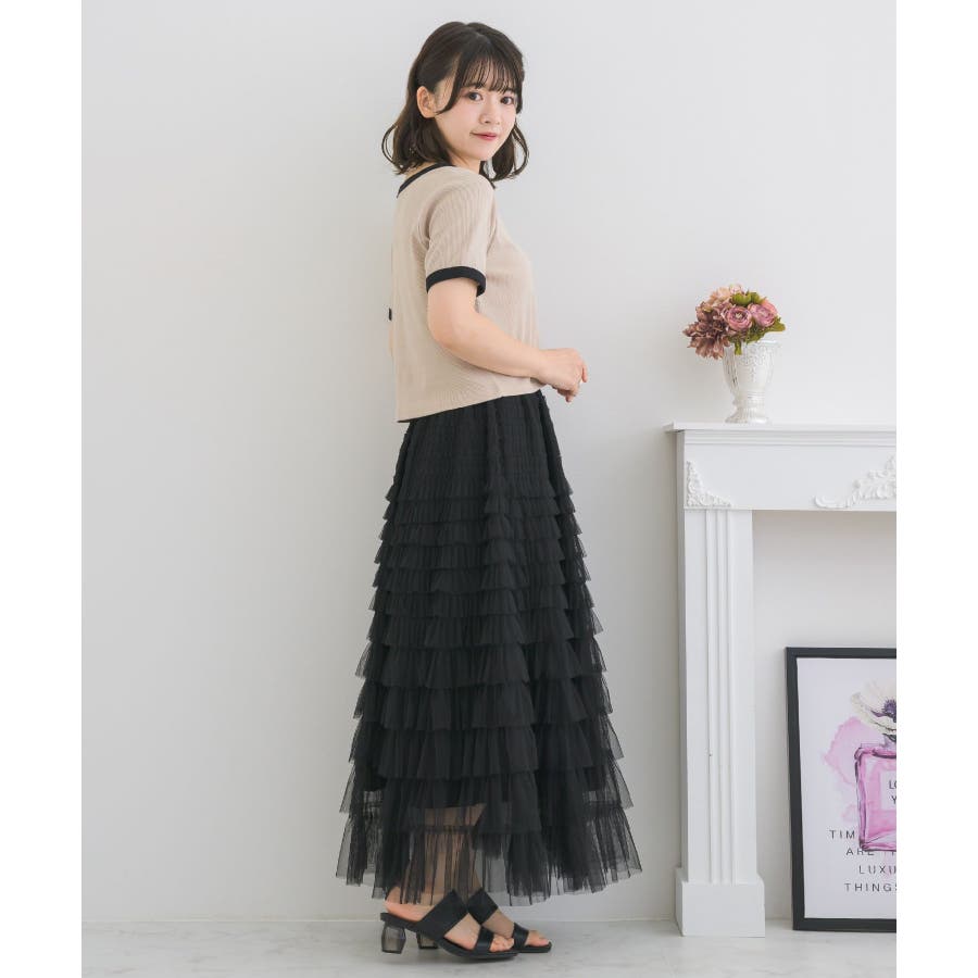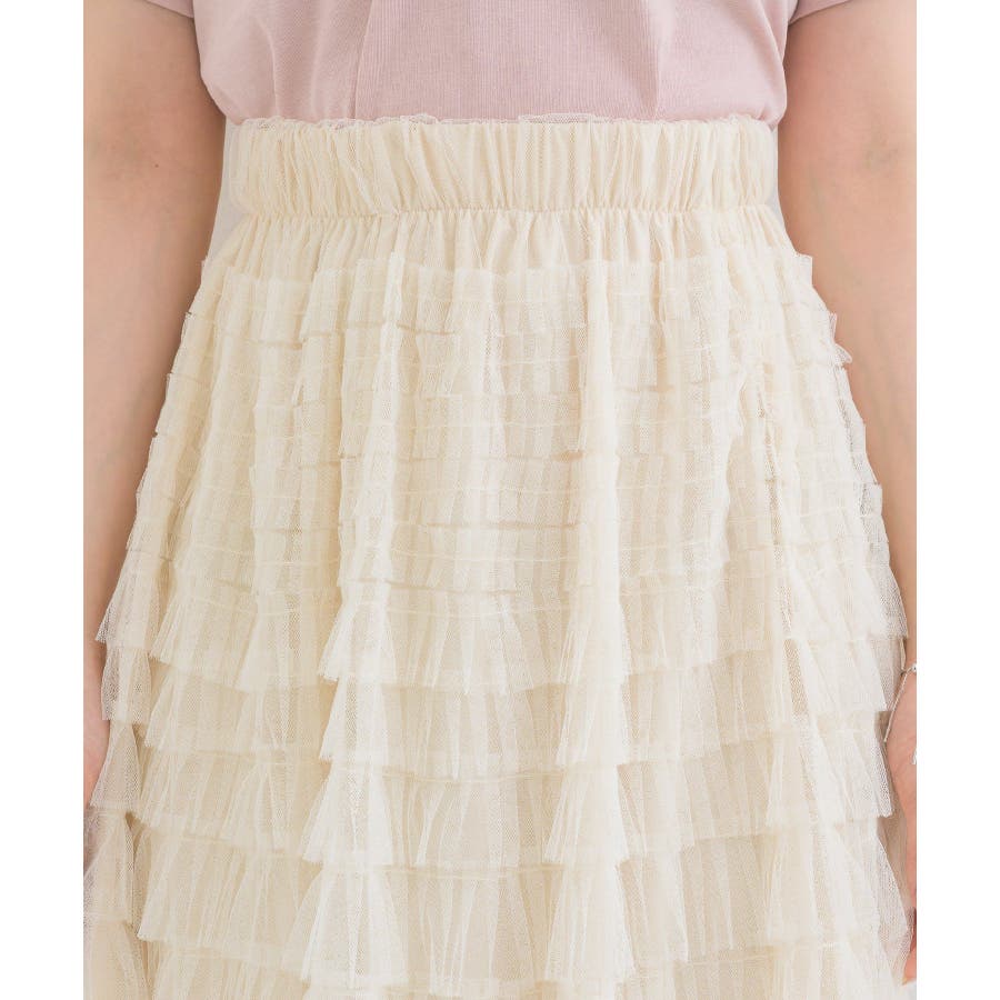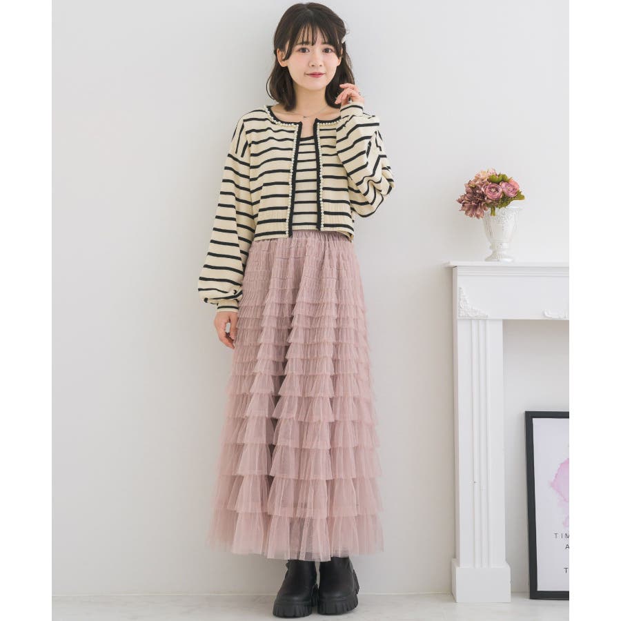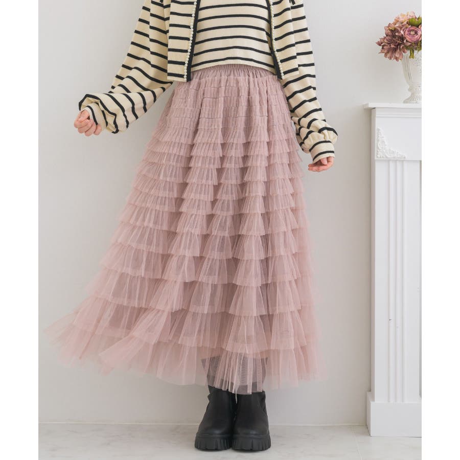 <大人気アイテム!ボリューム感のあるチュールスカートでプリンセスコーデに>▼デザイン前回大人気を頂いたチュールスカートの新作。今回はかなり細かい重ねチュールが高見えするデザインとなっております!裾にむかってチュールの幅が広くなっていくシルエットが女の子らしいです。ウエストは360°ゴムで、ゆったり着て頂けます。サラサラした光沢感のある素材の裏地がついているので、透ける心配もございません。▼コーディネートガーリーなブラウス合わせや、ロゴT合わせも◎ボトムにボリューム感があるので、シンプルなスタリングでも華やかな印象になります♪------------------------------生地感:薄手伸縮性:ある透け感:ある(チュール部分)裏地:ある------------------------------▼ブランド紹介ems excite (エムズエキサイト)“more fun more cute”今をもっと楽しくもっと可愛くいたい女の子に向けたgirly cuteなブランド#チュール #チュールスカート #マキシスカート #ガーリーアイテム▼注意事項※撮影環境やモニター環境によって実際の商品とお色味が多少異なってみえる場合がございます。品番:EF357031T002 / 品名:チュールティアードSK