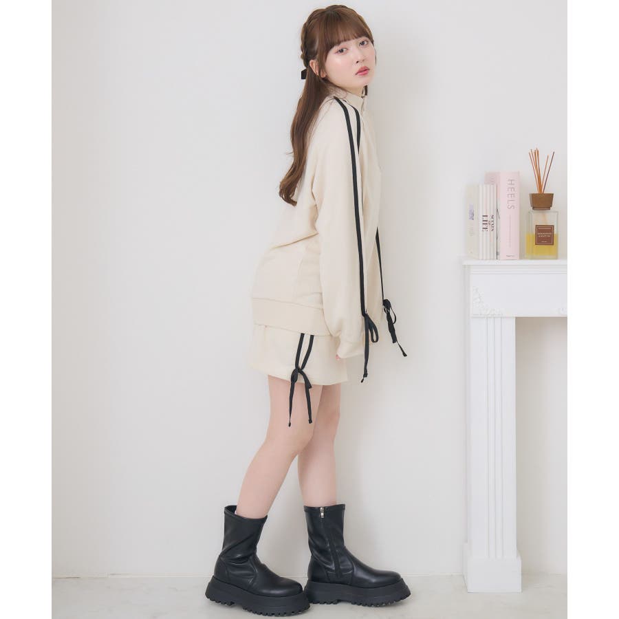 〈履き心地抜群なスウェット素材のミニスカート〉▼デザイン履き心地抜群なスウェット素材のミニスカートが登場!サイドラインがカジュアルさを感じるデザインでありながら裾にはリボンデザインが施されていて、emsらしいガーリーなワンポイントに♪ウエストはゴムで伸縮性も履き心地も抜群な1枚です。▼コーディネートラインリボンZIPトレーナーと合わせればセットアップで着用可能なアイテム!Tシャツからニットまでトップスを選ばないので、気温に合わせてトップスを変化させていけば、どの季節もコーデに取り入れられるのが嬉しい♪------------------------------生地感:普通伸縮性:ある透け感:なし裏地:ある------------------------------▼ブランド紹介ems excite (エムズエキサイト)“more fun more cute”今をもっと楽しくもっと可愛くいたい女の子に向けたgirly cuteなブランド#ラインアイテム #セットアップ #韓国コーデ #タイトスカート #カジュアルコーデ▼注意事項※撮影環境やモニター環境によって実際の商品とお色味が 多少異なってみえる場合がございます。品番:EF441531G001 / 品名:裏毛ミニSK