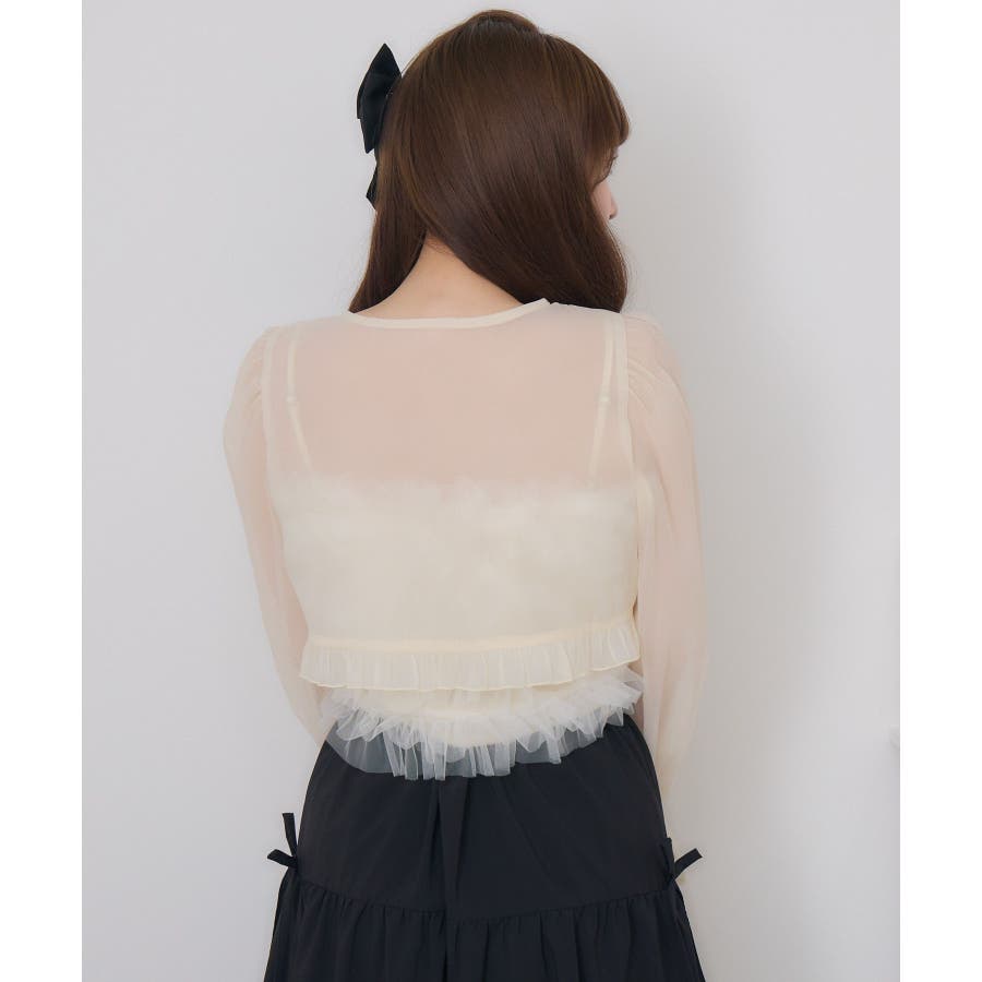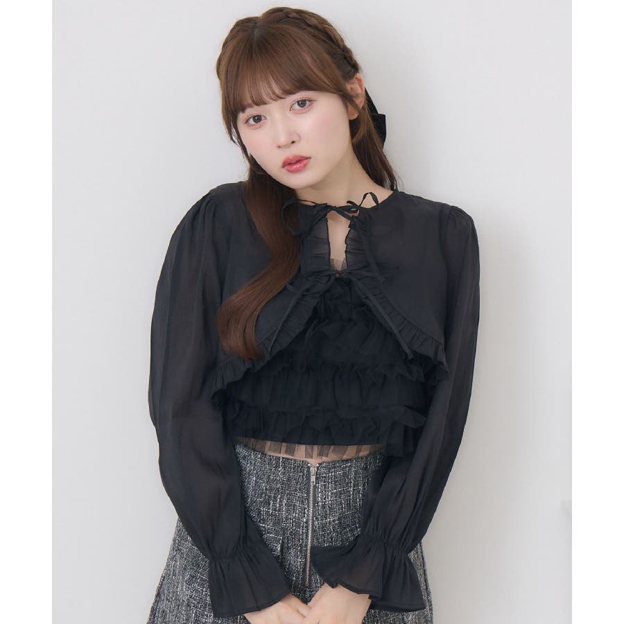 <チュールキャミが甘めな大人気のキャミセットアイテム!>▼デザインems exciteで毎回大人気を頂くセットアイテム。フリルたっぷりでボリューム感のあるキャミソールとフロントリボンが可愛いボレロのセットアイテムです。袖はキャンディースリーブになっているのも、emsらしいポイントです!▼コーディネートセットアイテムですがもちろん別々にも着られます!ボレロは透け感のある素材で、夏の羽織にも着やすい素材になっています。、▼セット内容・ボレロ・キャミソール------------------------------生地感:ボレロ:薄手/インナー:普通伸縮性:ボレロ:なし/インナー:ある透け感:ボレロ:ある インナー:なし裏地:なし------------------------------▼ブランド紹介ems excite (エムズエキサイト)“more fun more cute”今をもっと楽しくもっと可愛くいたい女の#リボン #チュール#フリル#ボレロ#シアー#ボレロセット#ボレロコーデ#ガーリーコーデ▼注意事項※撮影環境やモニター環境によって実際の商品とお色味が多少異なってみえる場合がございます。品番:EF480023B001 / 品名:フリルチュールキャミSET