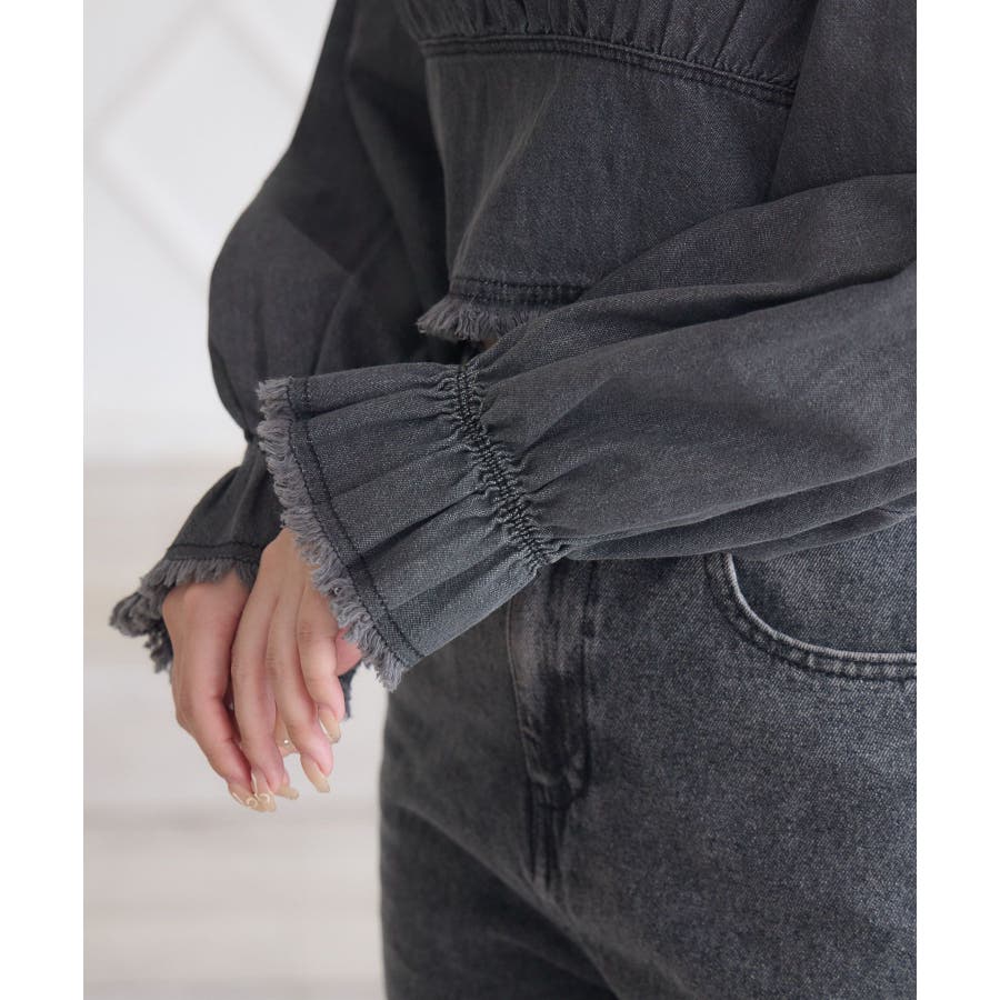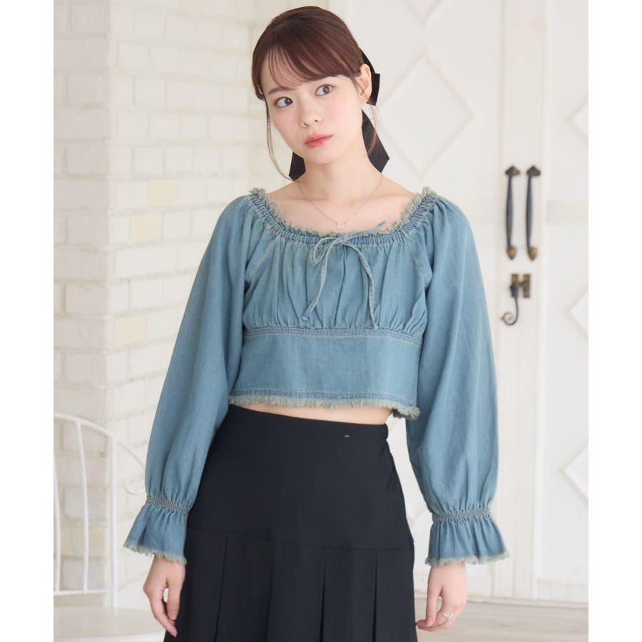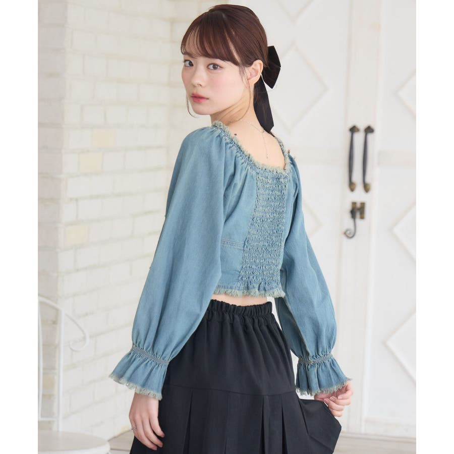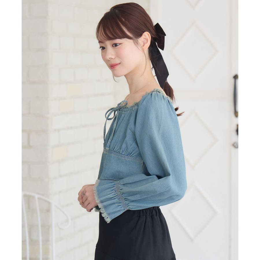 <トレンド感のあるフリンジデザインが新しいデニムブラウス>▼デザインデニム素材のカジュアルなブラウスアイテム。胸元にリボンデザインが施されているのがemsらしいガーリーなポイント。ウエスト部分は切り替えが入っていて、細見え効果も期待できます、袖はキャンディースリーブで華やかに♪▼コーディネートコンパクトな着丈で、ボトムの邪魔をしないデザインです。プリーツスカートやフレアスカートと合わせて甘めにスタイリングするのも可愛いですがあえてデニム合わせでセットアップ風コーデも可愛いです。------------------------------生地感:普通伸縮性:なし透け感:なし裏地:なし------------------------------▼ブランド紹介ems excite (エムズエキサイト)“more fun more cute”今をもっと楽しくもっと可愛くいたい女の子に向けたgirly cuteなブランド#デニム #ブラウス #リボン #デニムブラウス #フリンジ ▼注意事項※撮影環境やモニター環境によって実際の商品とお色味が多少異なってみえる場合がございます。品番:EF480023C003 / 品名:フリンジデニムBL