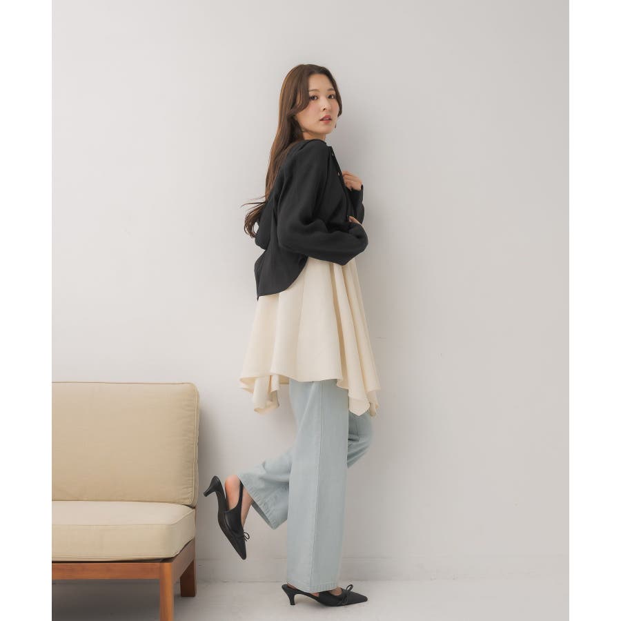 | 素材 | 【エクリュ・ブラック】表地:ポリエステル97% ポリウレタン3% 裏地:ポリエステル100% 【ブラウン】表地:ポリエステル78% レーヨン20% ポリウレタン2% 裏地;ポリエステル100% |