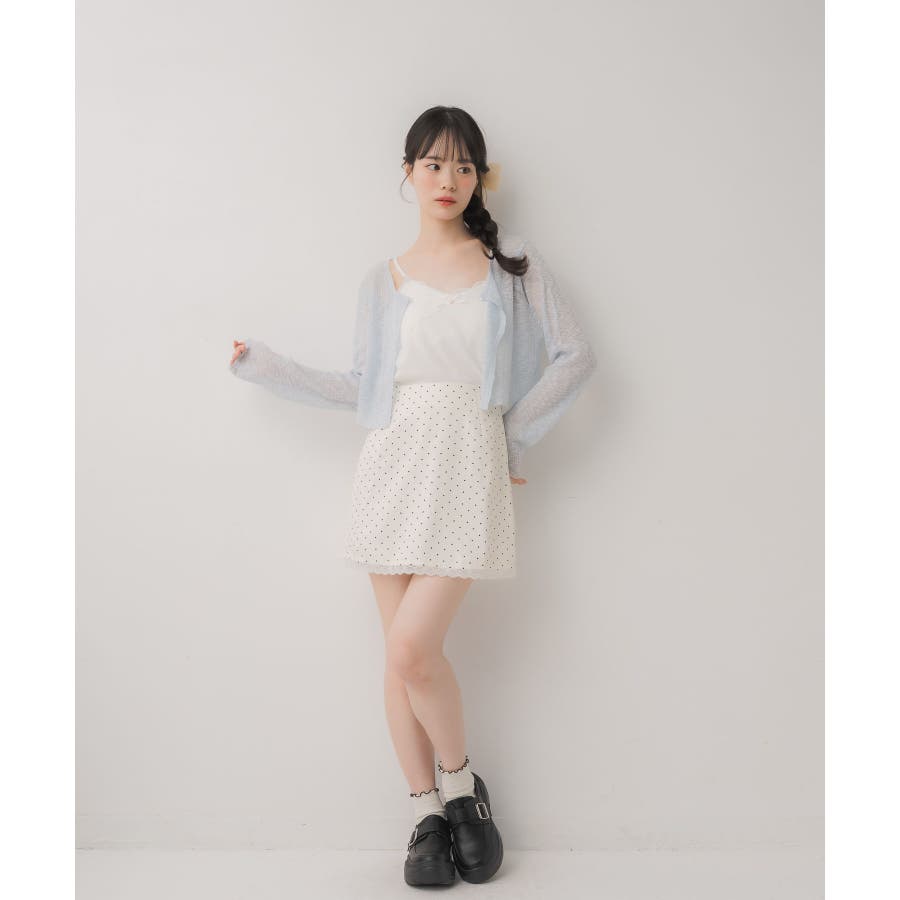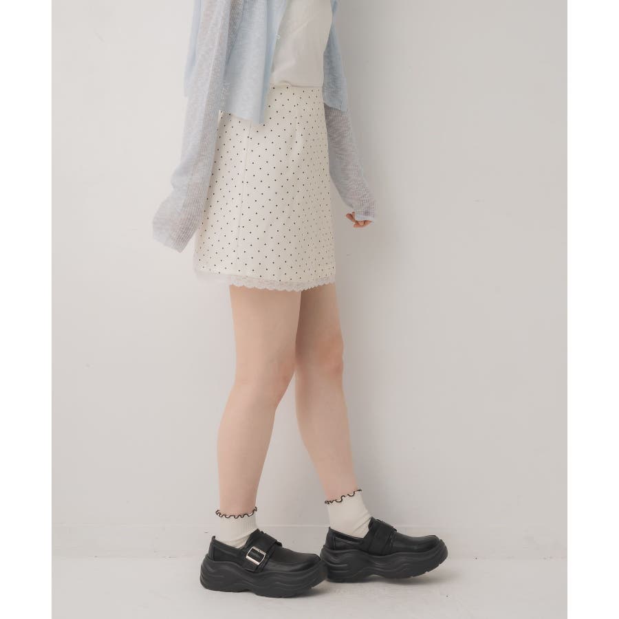 <小さなドット柄がガーリーなタイトなミニスカート>▼デザインドット柄のガーリーなスクエアミニスカート裾はレースがちらっと見えていてコーデに甘さをプラスしてくれます◎サイドのZIPで着脱可能なので、履き心地も抜群もちろん後ろはゴムになっていて伸縮性もあります♪▼コーディネートガーリーなスタイルに取り入れたいボトムス細かいドット柄で上品なモテコーデに♪------------------------------生地感:普通伸縮性:なし透け感:なし裏地:ある------------------------------▼ブランド紹介ems excite (エムズエキサイト)“more fun more cute”今をもっと楽しくもっと可愛くいたい女の子に向けたgirly cuteなブランド#ドットスカート #タイトスカート #タイトデニム #レース #レーススカート▼注意事項※撮影環境やモニター環境によって実際の商品とお色味が 多少異なってみえる場合がございます。品番:EF537531G002 / 品名:ドットミニSK