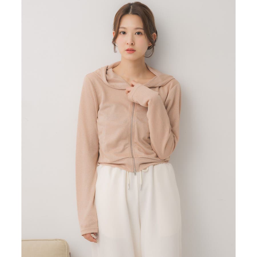 <ラメがミックスされた上品フーディー>▼デザイン夏から秋の気温にぴったりの羽織アイテム♪フーディーアイテムは今年のトレンド!ラメがMIXされた糸で作られているので、上品な印象に。WZIPで開け方もアレンジできるので、その日のコーデや気分に合わせてオシャレを楽しめる1枚です。▼コーディネートゆったり羽織るのに、ぴったりなアイテムワンピースの上に羽織ったり、Tシャツの上に羽織ったり、いろんな気回しを楽しんでください------------------------------生地感:やや薄手伸縮性:ある透け感:多少ある裏地:なし------------------------------▼ブランド紹介ems excite (エムズエキサイト)“more fun more cute”今をもっと楽しくもっと可愛くいたい女の子に向けたgirly cuteなブランド#フーディー #ラメ #シアー #シアーフーディー #羽織アイテム▼注意事項※撮影環境やモニター環境によって実際の商品とお色味が多少異なってみえる場合がございます。品番:EF541511B001 / 品名:ラメ混ZIPパーカー