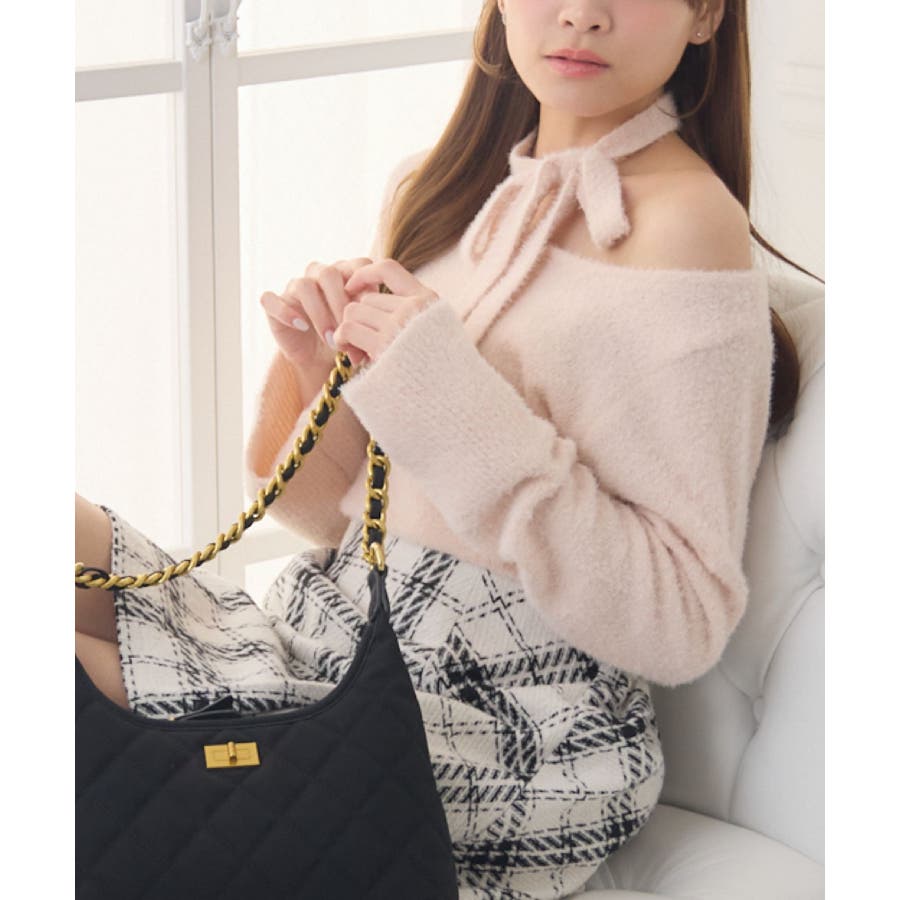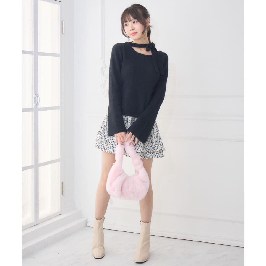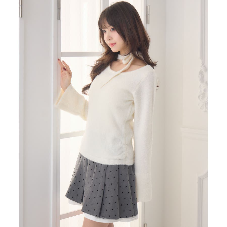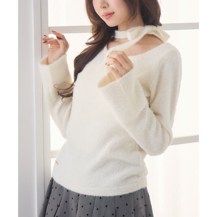 <モコモコ素材で暖かいチョーカーニット>▼デザイン今年も大人気のシャギーニット!首回りは大きく空いていて、デコルテ部分を綺麗に魅せてくれます。ニットと同素材のチョーカーがサイドについているのが新しいのトレンドデザイン♪袖口も広く、広がったシルエットがemsらしくて可愛い!▼コーディネートボトムはフレアスカートで合わせるのがオススメチェックやツイードなど柄を取り入れるのも冬っぽくて可愛いです。------------------------------生地感:普通伸縮性:ある透け感:なし裏地:なし------------------------------▼ブランド紹介ems excite (エムズエキサイト)“more fun more cute”今をもっと楽しくもっと可愛くいたい女の子に向けたgirly cuteなブランド#ニット #シャギーニット #モケモケアイテム #秋コーデ #タイ #チョーカーセット ▼注意事項※撮影環境やモニター環境によって実際の商品とお色味が多少異なってみえる場合がございます。品番:EF541512G010 / 品名:チョーカーシャギーNTPO