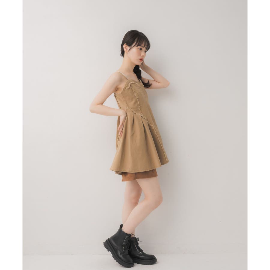 <ツイル素材がカジュアルなミリタリー風ワンピース>▼デザインems exciteでは毎回大人気を頂くミニ丈ワンピース!フリンジデザインと、ツイル素材がカジュアルな印象に。ミリタリー風で1枚でかっこよくコーデが決まるワンピース◎肩紐のアジャスターで着丈を調節して頂けます。▼コーディネートかなりミニ丈なので、ボトムにショートパンツを履くと安心◎季節に合わせて上から羽織りアイテムを取り入れてみて♪------------------------------生地感:普通伸縮性:なし透け感:なし裏地:なし------------------------------▼ブランド紹介ems excite (エムズエキサイト)“more fun more cute”今をもっと楽しくもっと可愛くいたい女の子に向けたgirly cuteなブランド#ツイル #ワンピース #ミニワンピース #チュニックワンピース #キャミワンピース #カジュアルワンピ #チュニックワンピ▼注意事項※撮影環境やモニター環境によって実際の商品とお色味が 多少異なってみえる場合がございます。品番:EF541522C002 / 品名:ツイルフリンジキャミOP