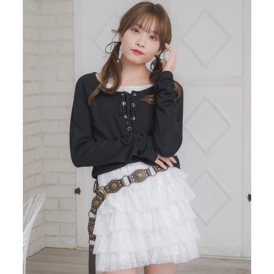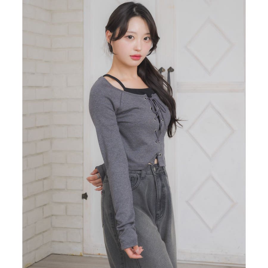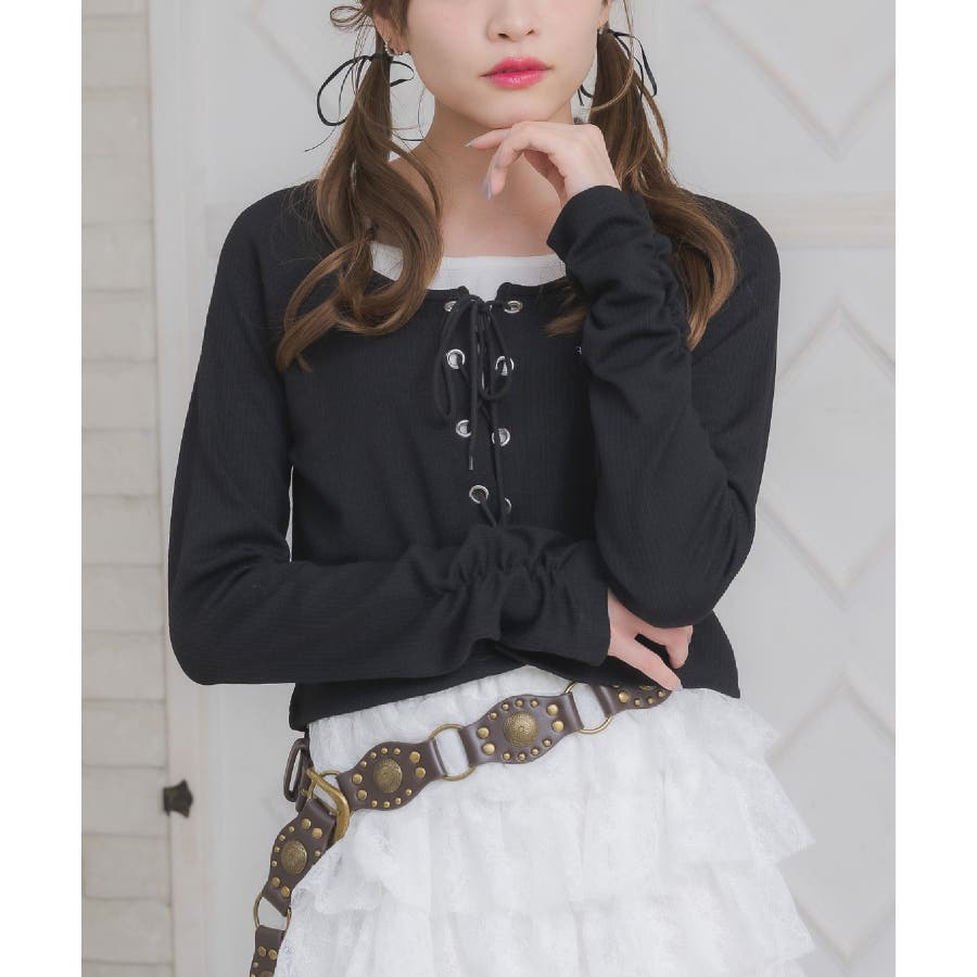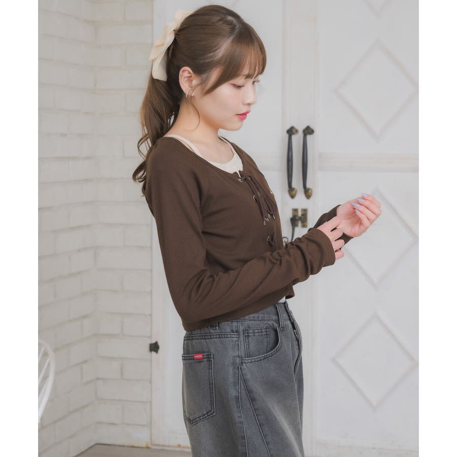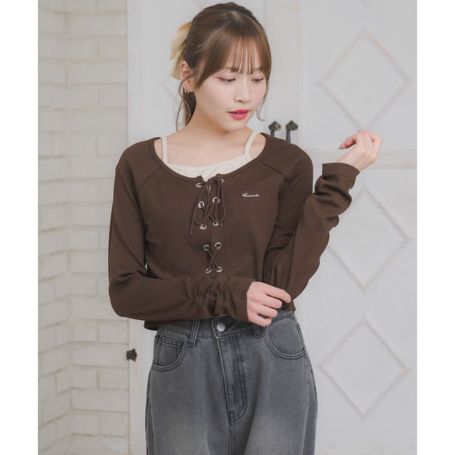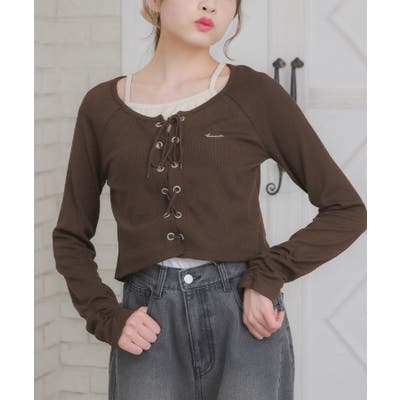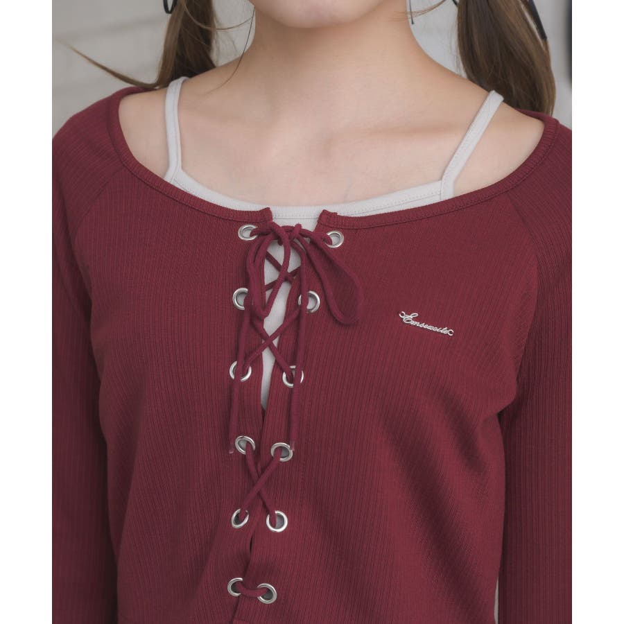 レースアップレイヤード風ロンTEE