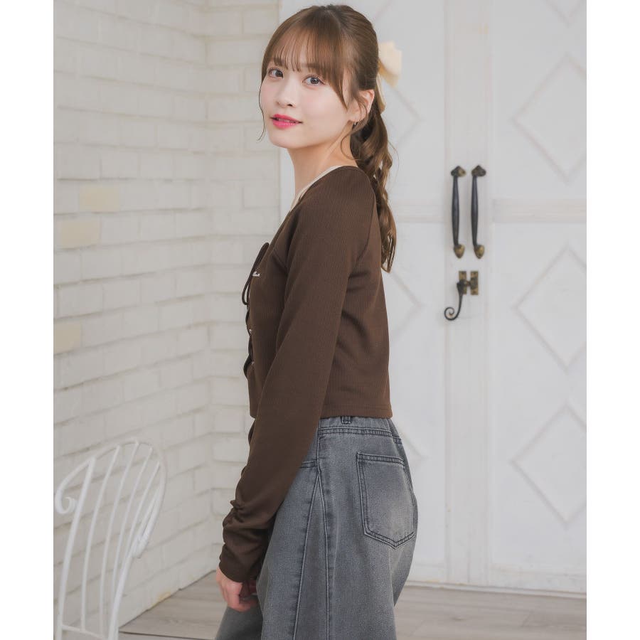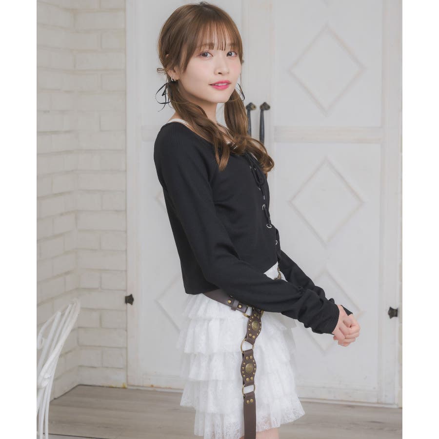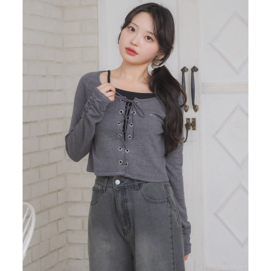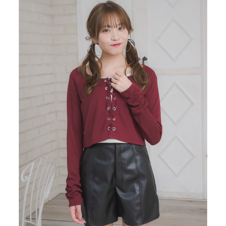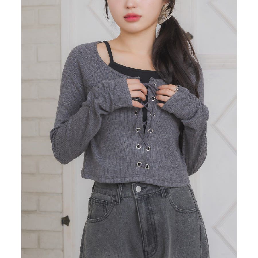 レースアップレイヤード風ロンTEE